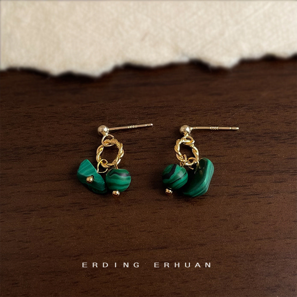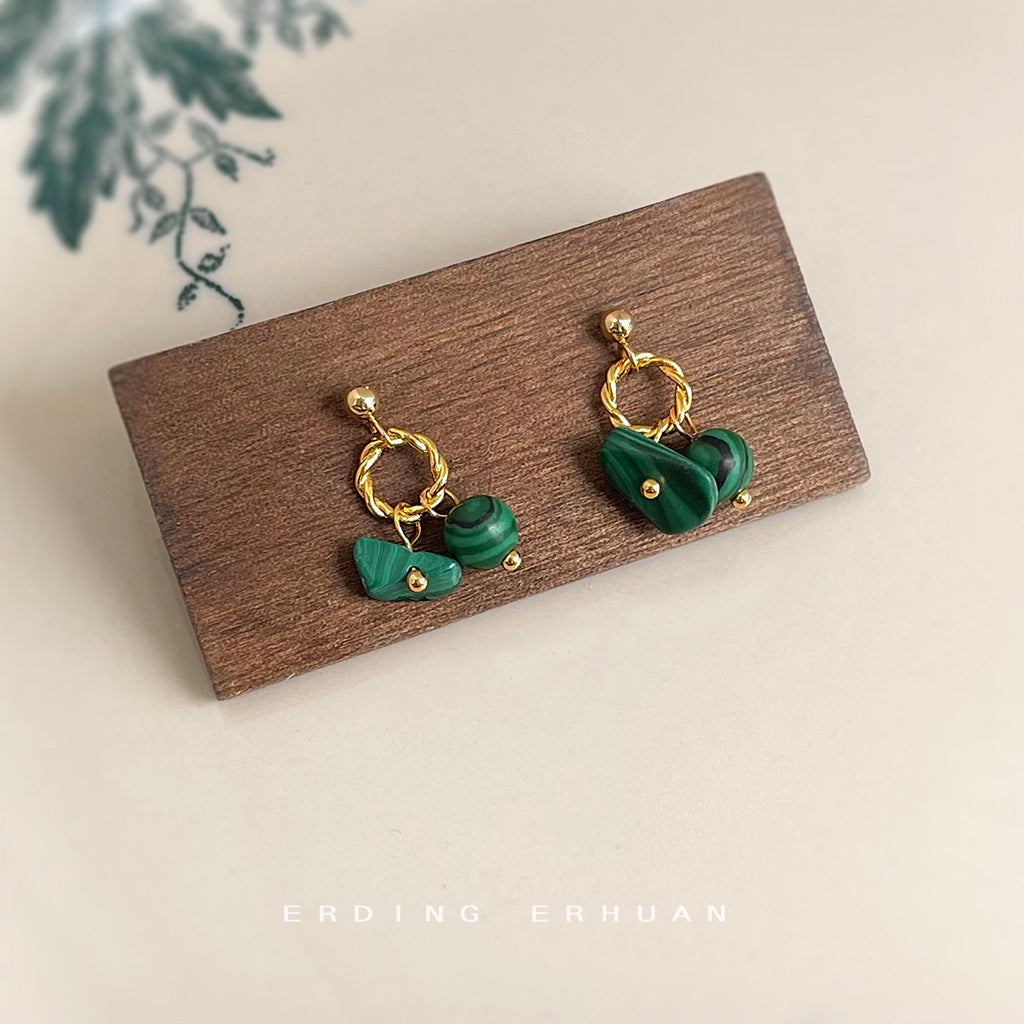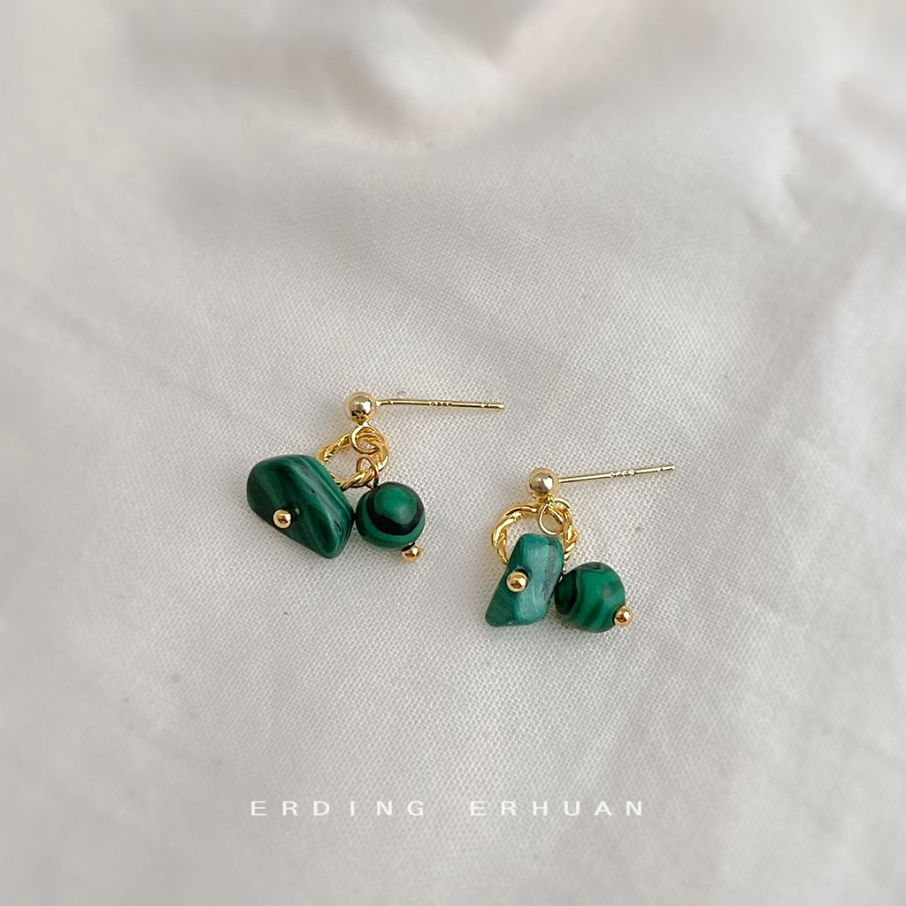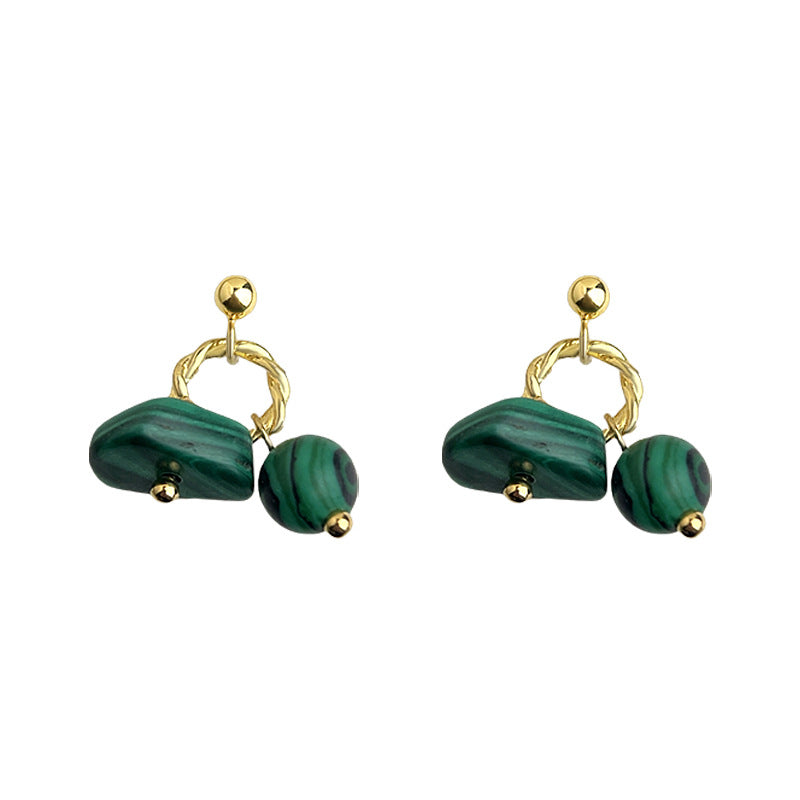 C廠【6440】文藝復古天然石簡約小巧手工合成孔雀石耳環女輕奢風新款耳環 25.07-3