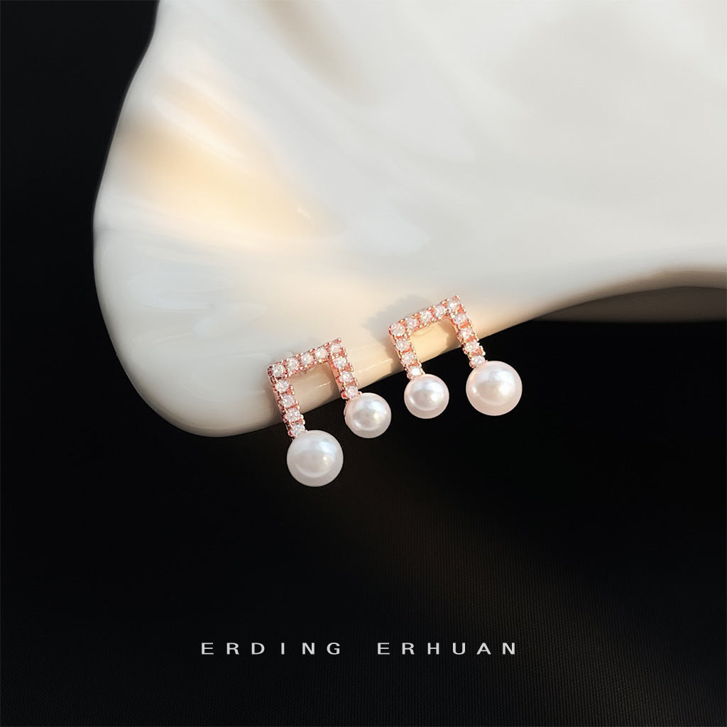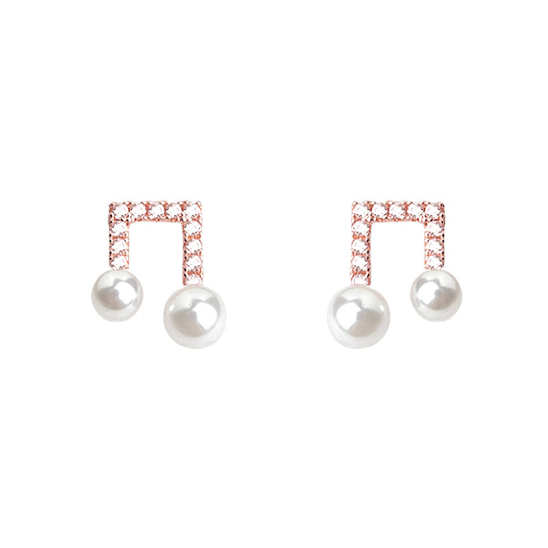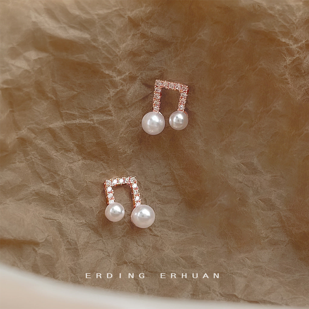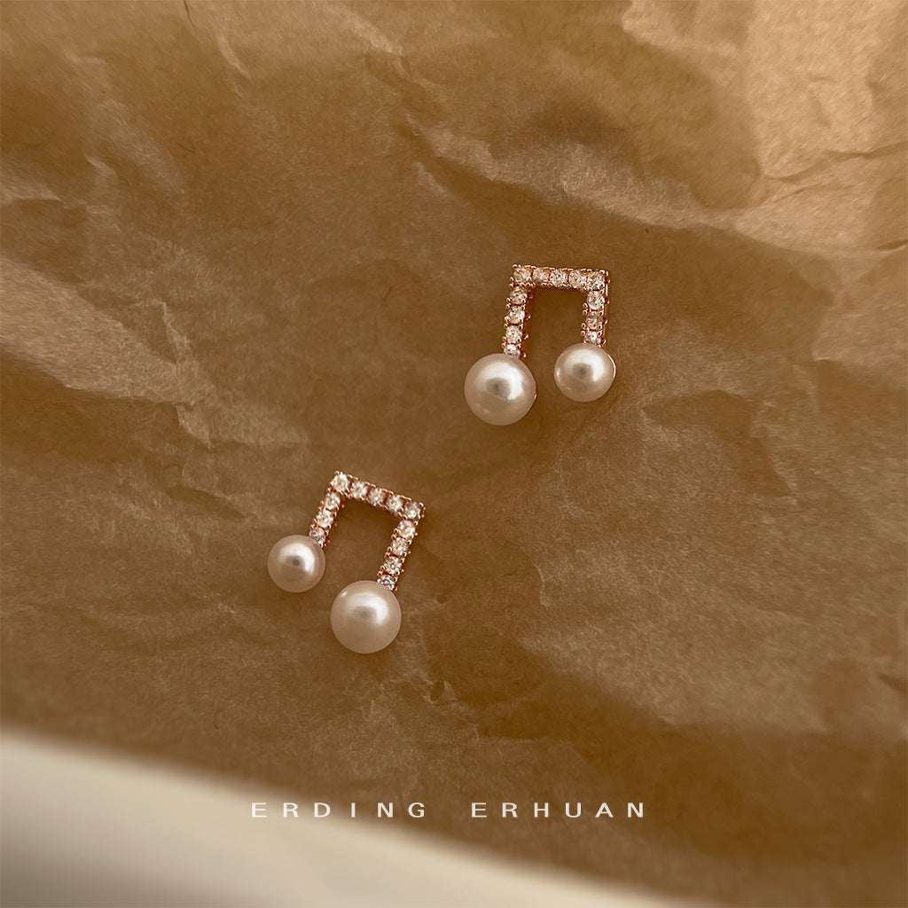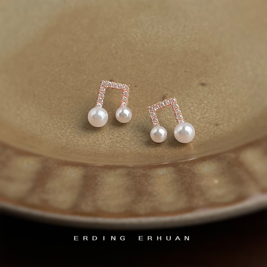 C廠【6442】個性小眾ins微鑲鋯石925銀針保色電鍍音符耳環新款耳飾 25.07-4