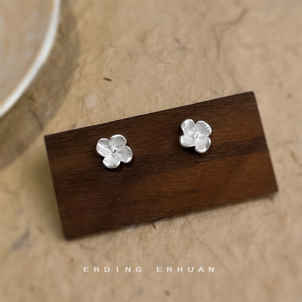 C廠【6451】甜美簡約高級感微鑲鋯石925銀針迷你小巧百搭花朵小耳環耳飾 25.07-3