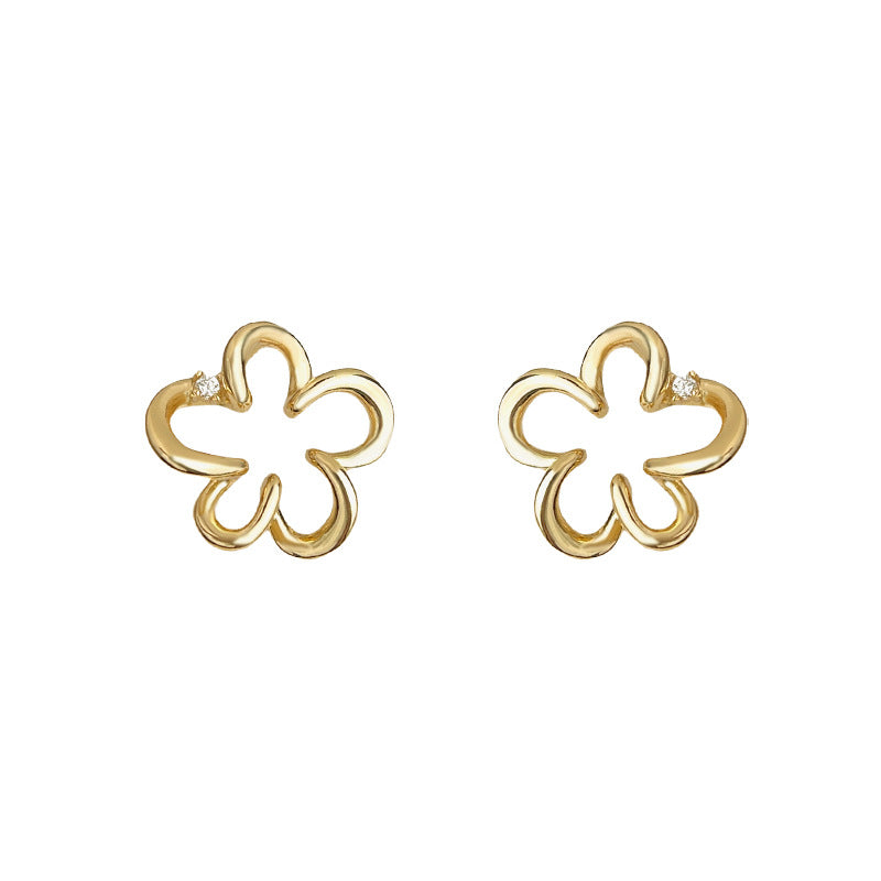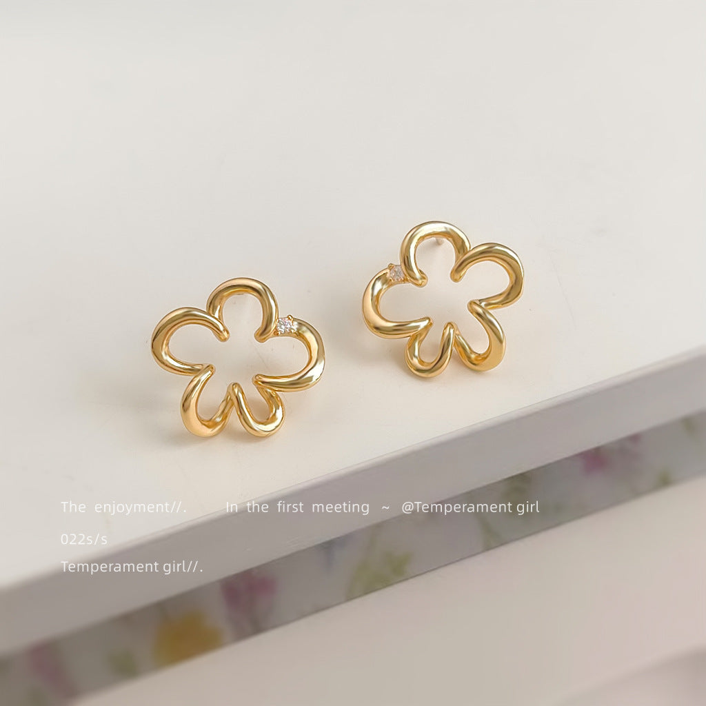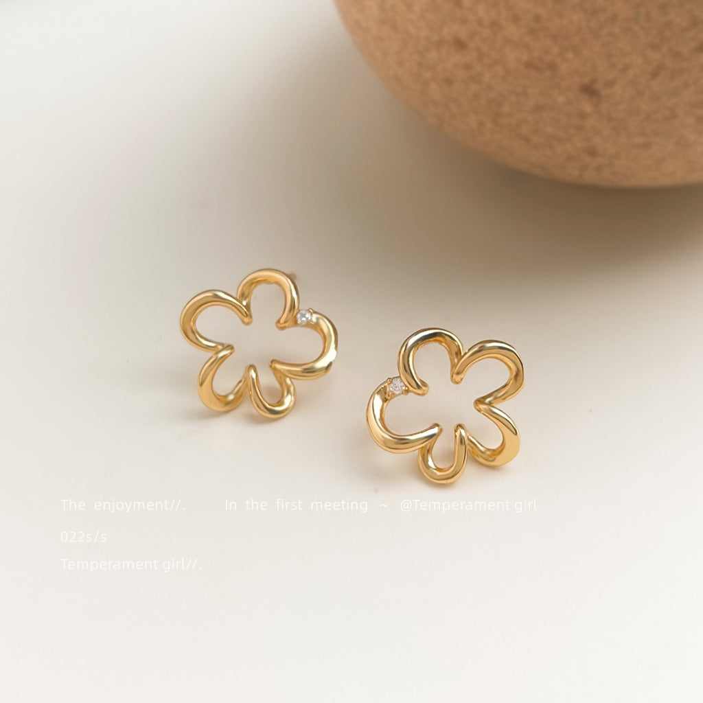 C廠【6452】時尚高級感鏤空幾何鋯石花朵925銀針鍍14K耳環女個性新耳飾 25.07-3
