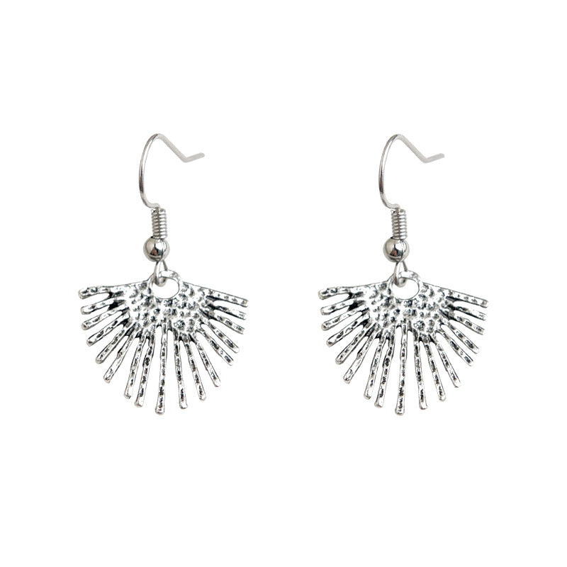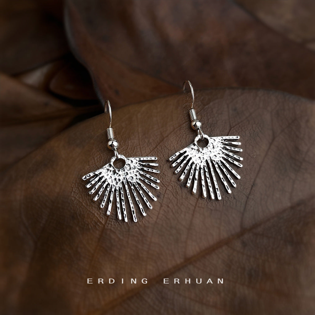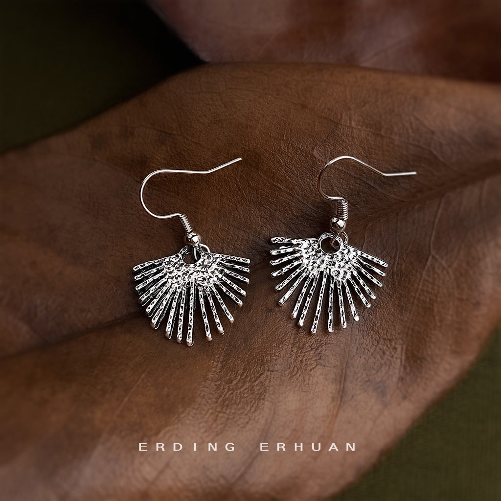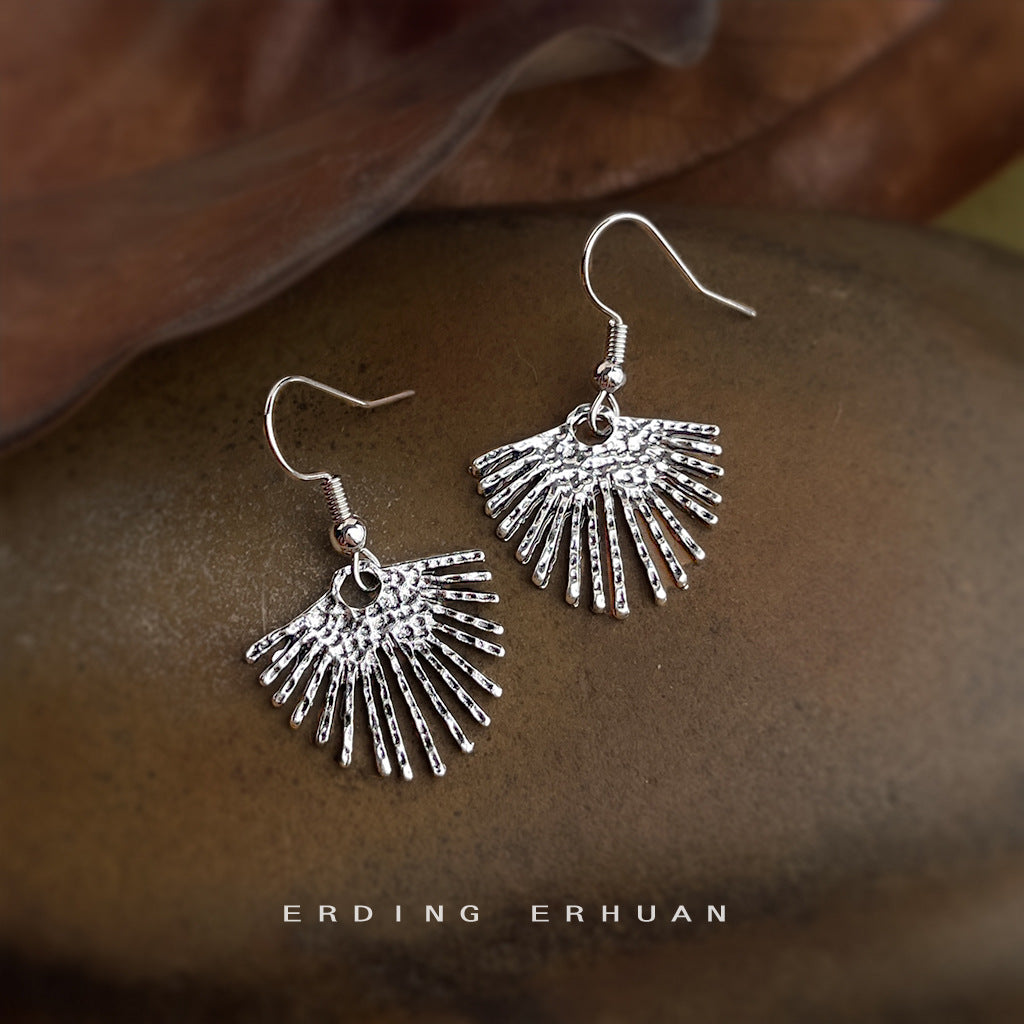 C廠【6459】文藝復古中古風古銀色抹黑做舊感新款葉子鏤空耳環耳環飾品女 25.07-3
