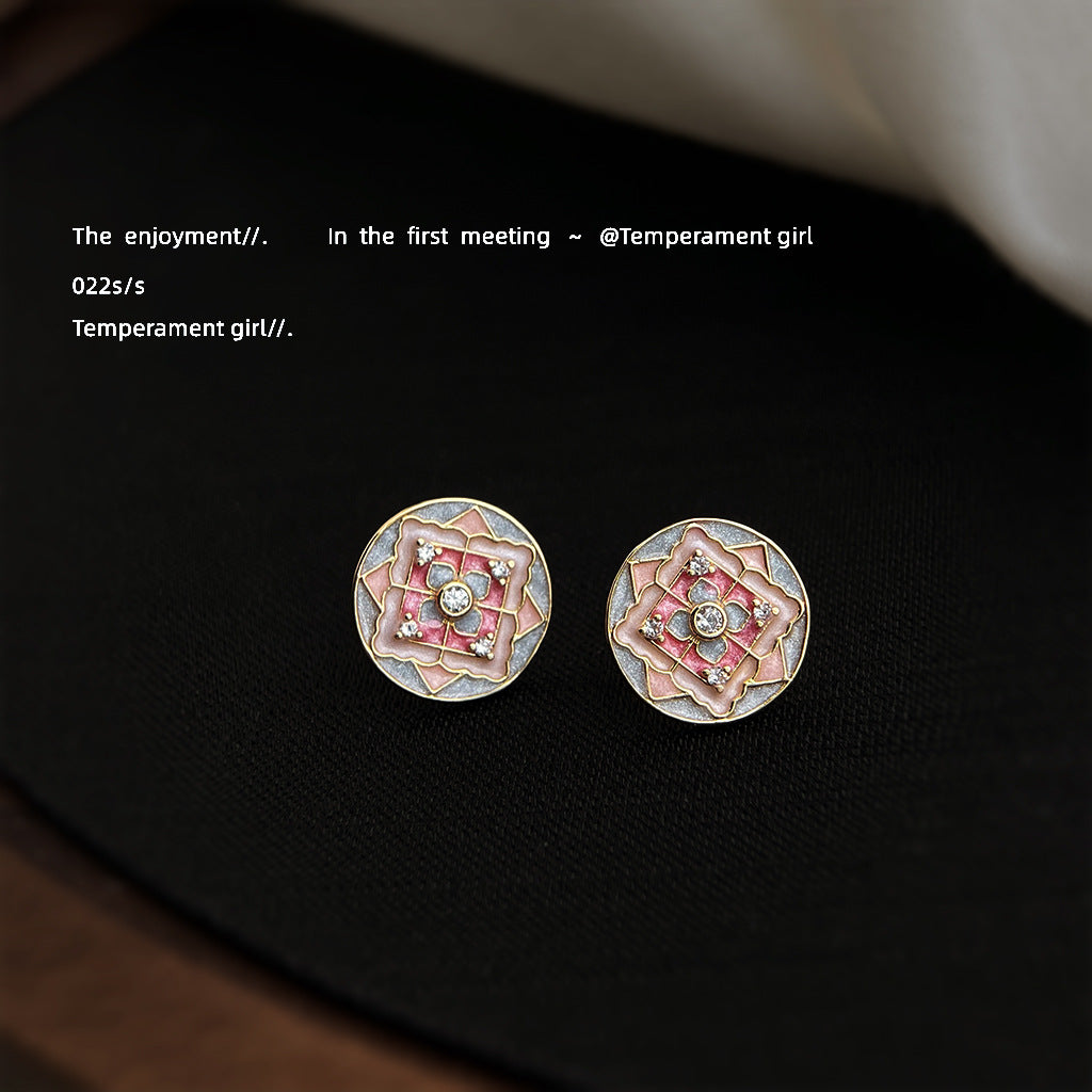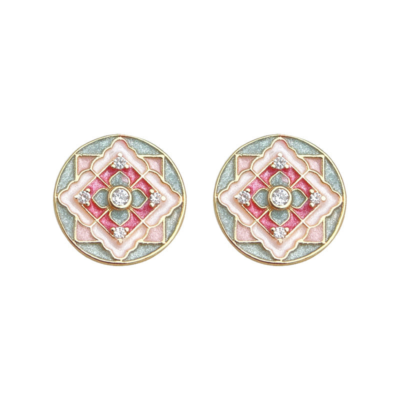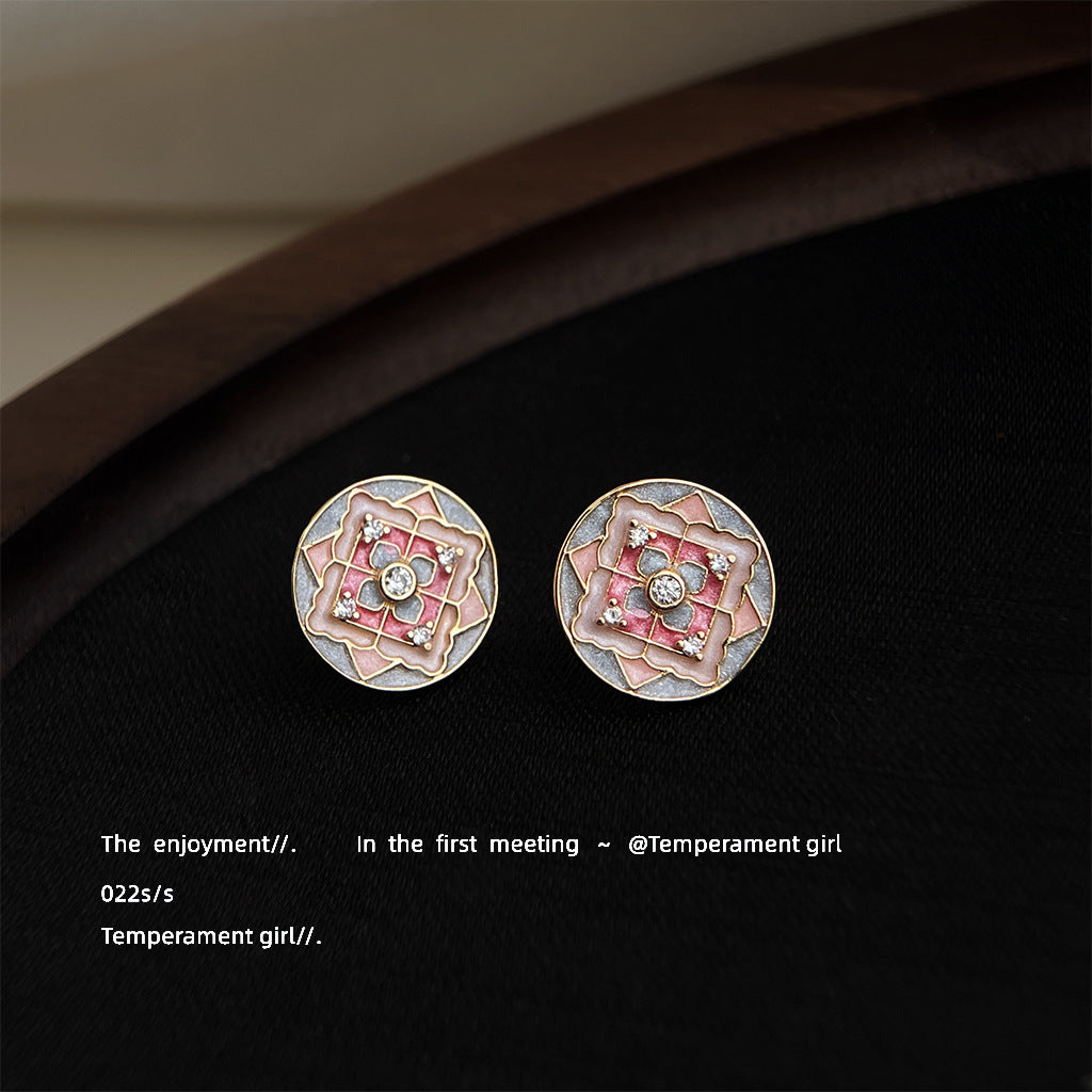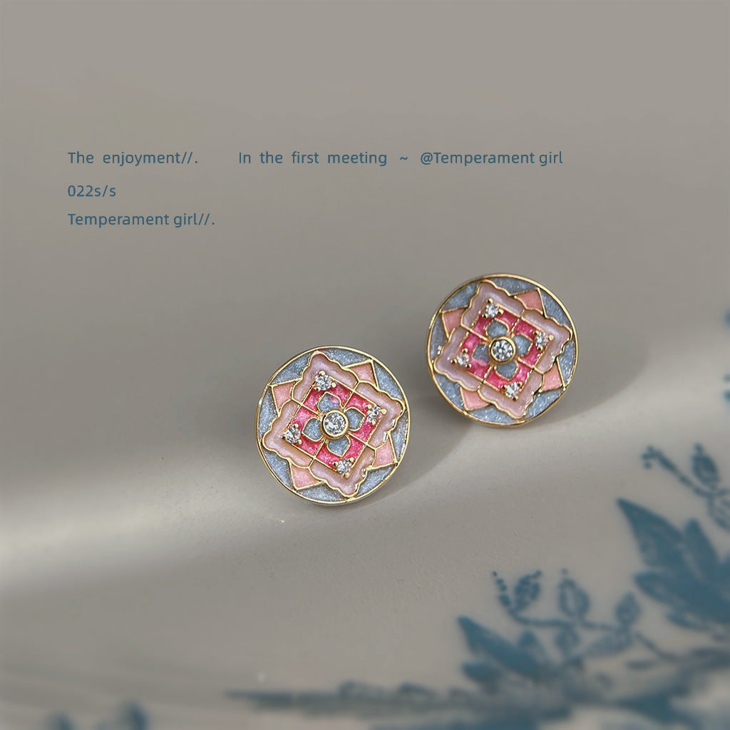 C廠【6472】原創文藝復古國潮紋樣彩繪琺瑯滴釉幾何氣質新款耳環耳環飾品 25.07-4