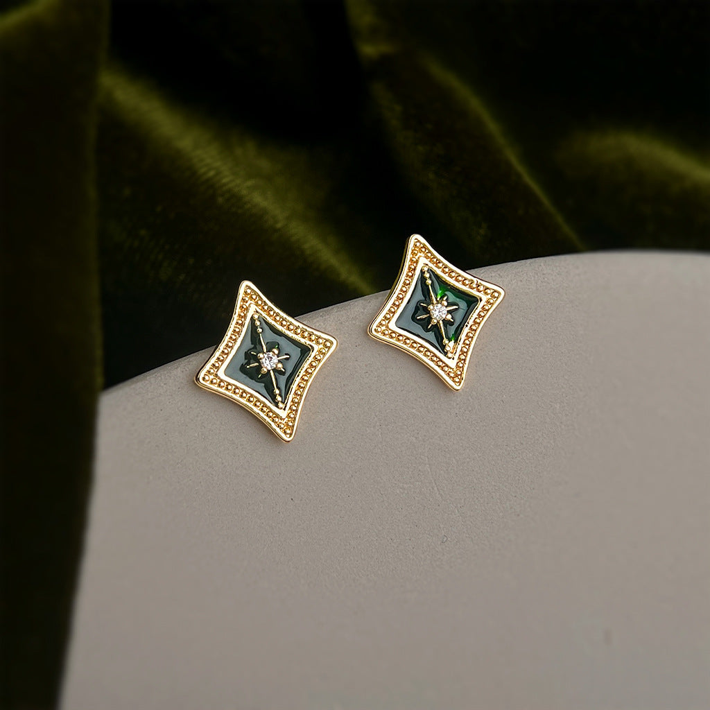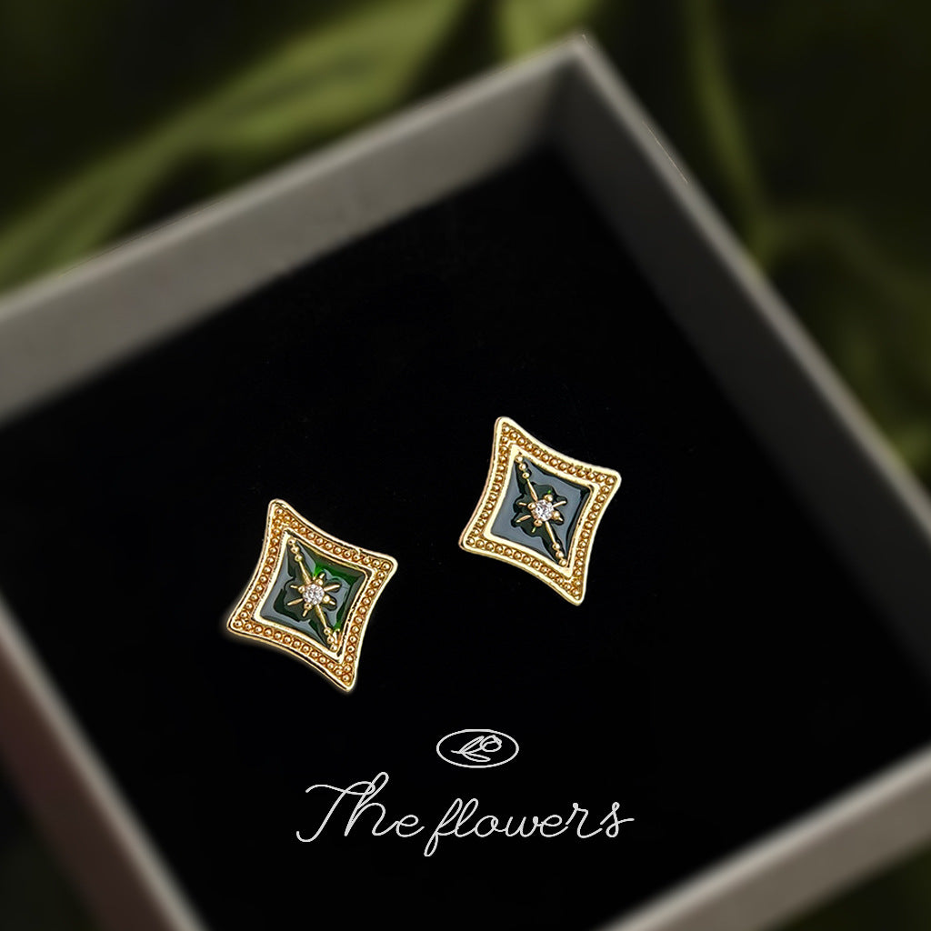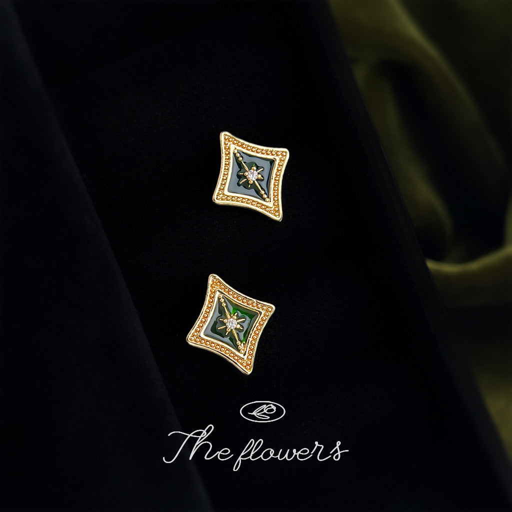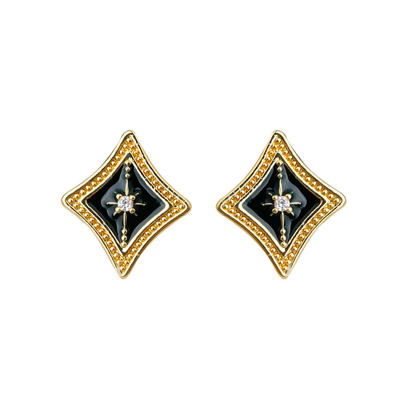 C廠【6473】老錢風時尚高級感原創小眾芒星幾何微鑲鋯石925銀針鍍14K耳飾耳環 25.07-4