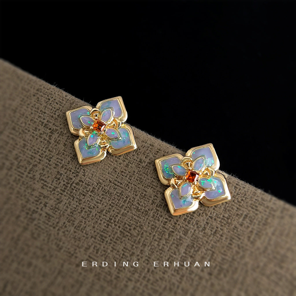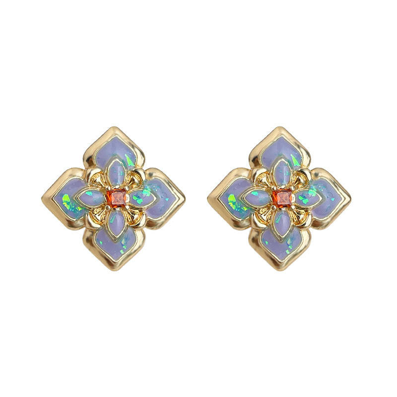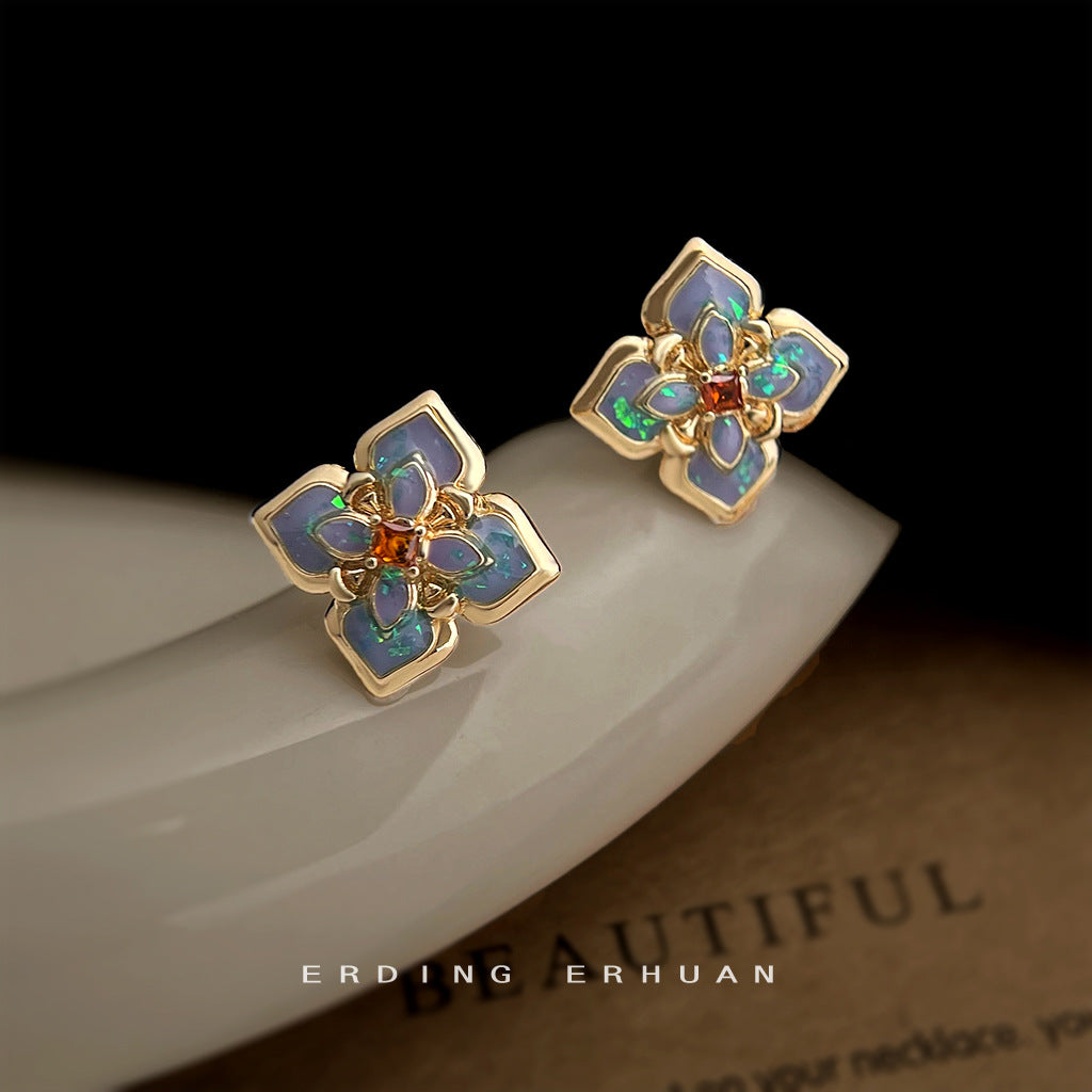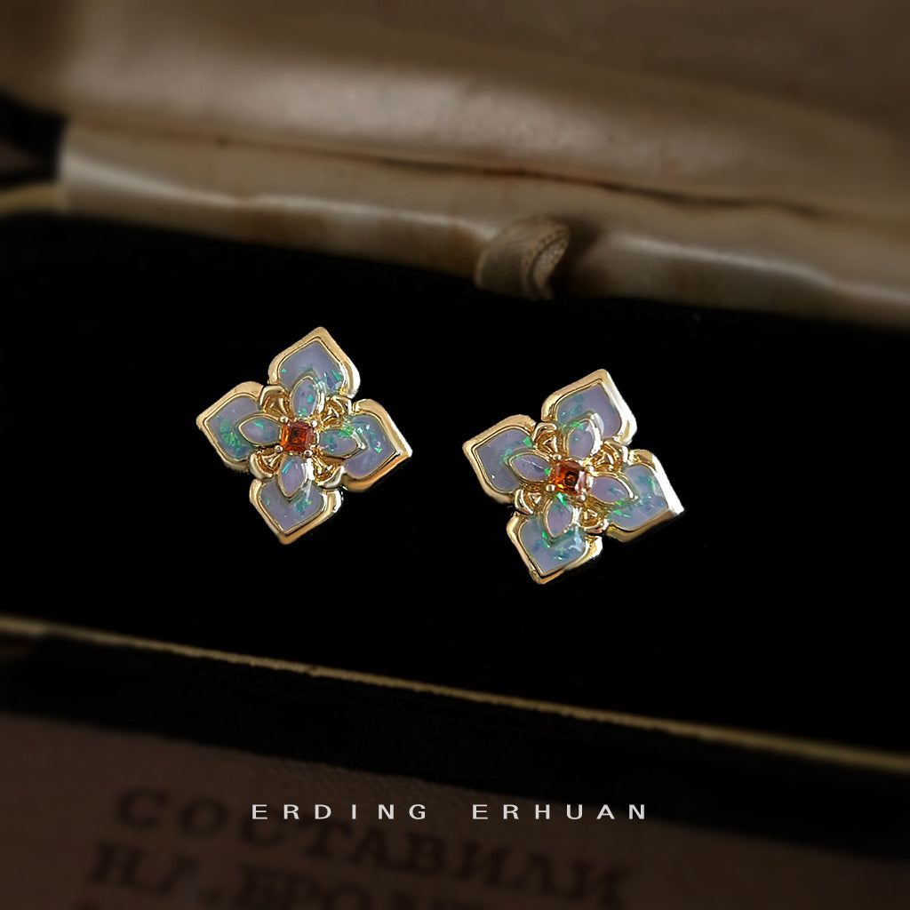 C廠【6478】原創時尚高級感琺瑯滴釉彩繪925銀針通勤耳飾 輕奢風耳環飾品 25.07-4