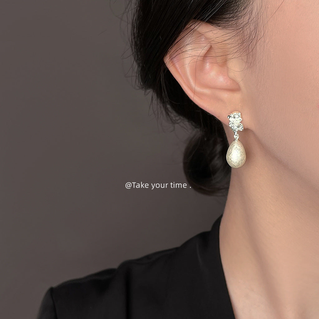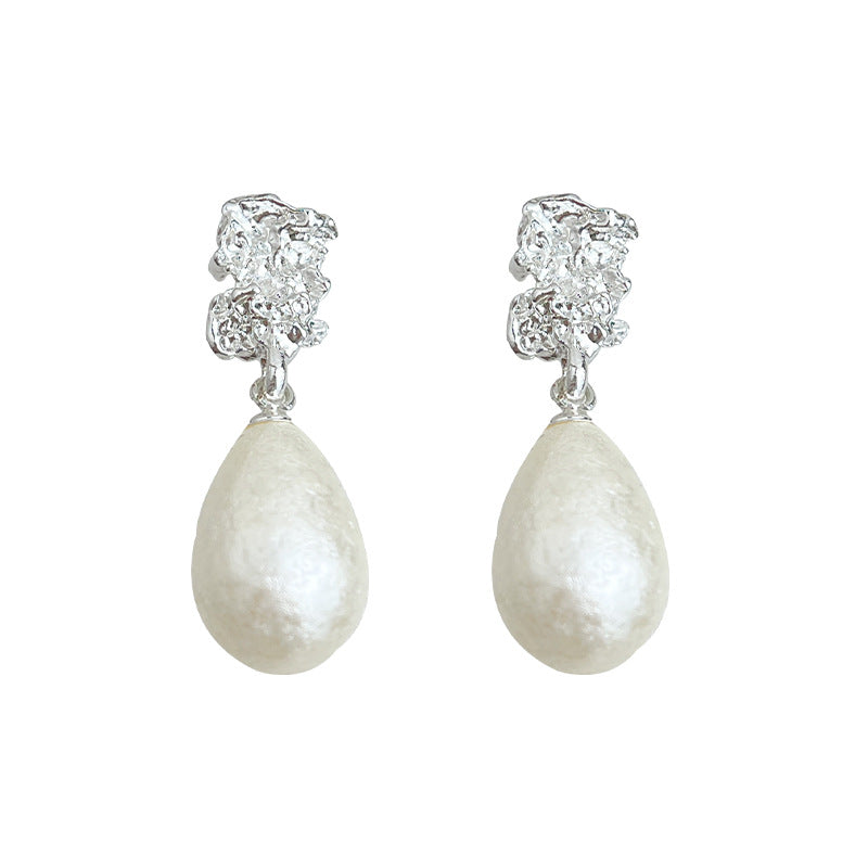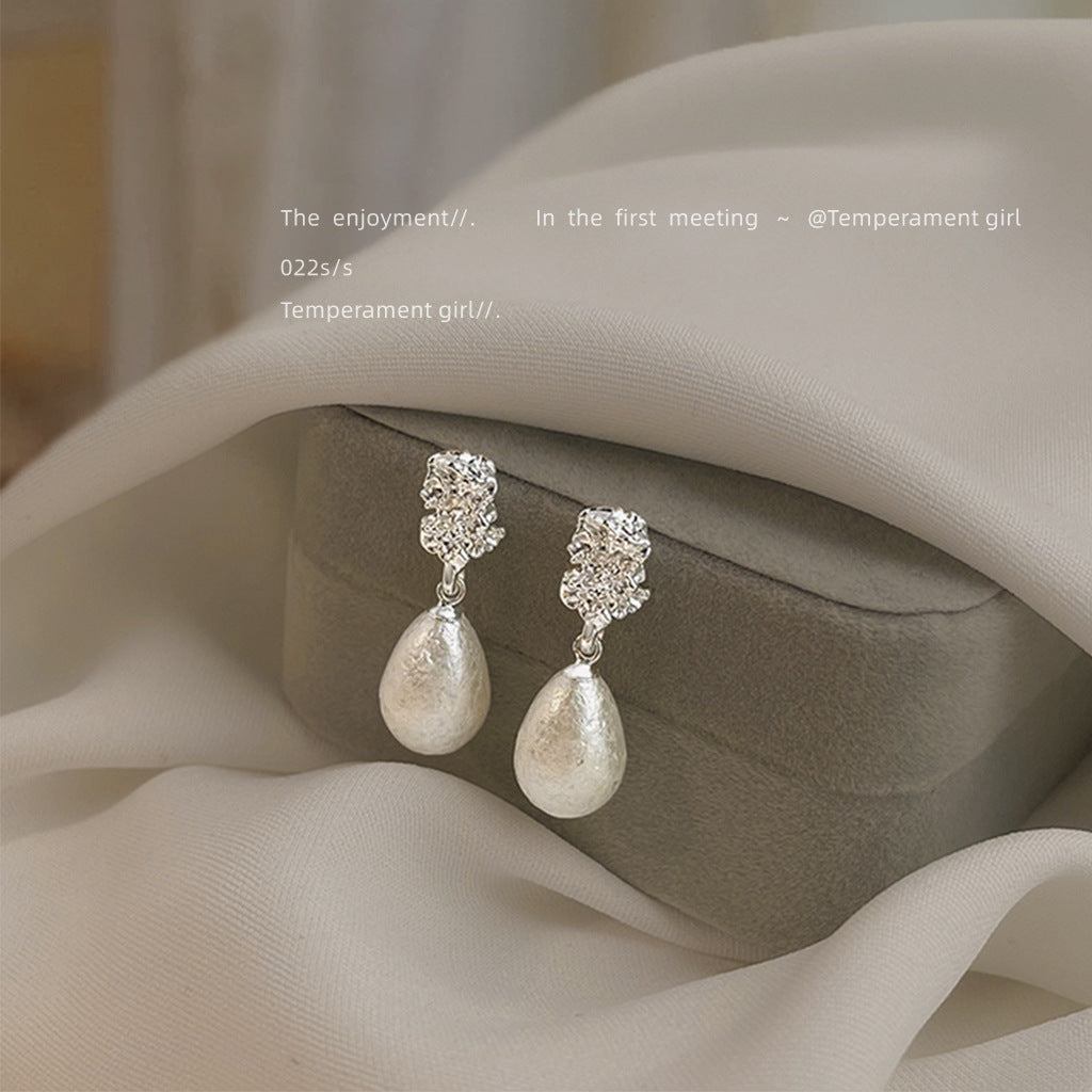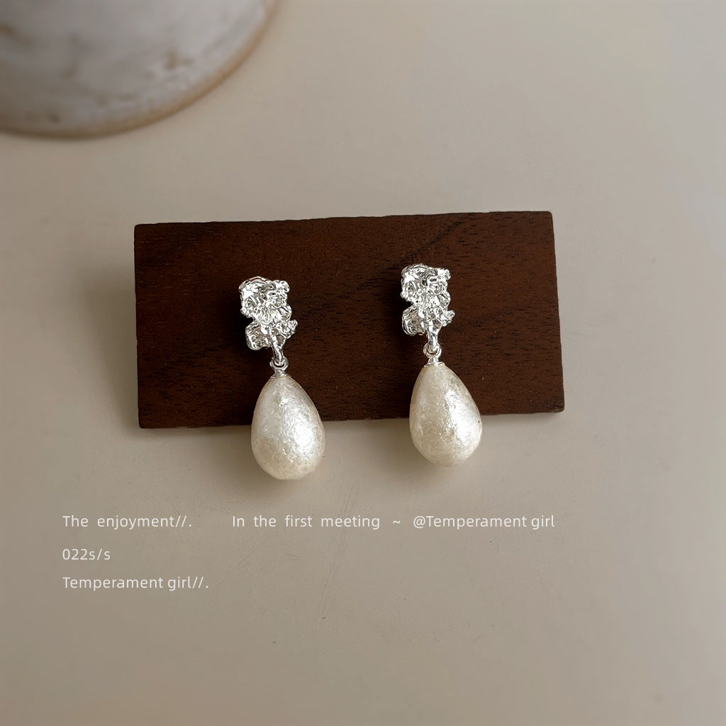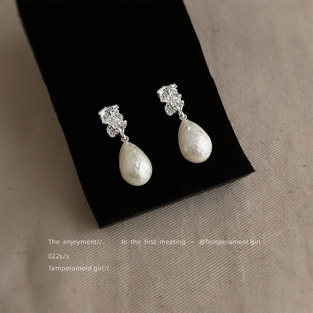 C廠【6484】法式肌理紋雪花珍珠水滴925銀針耳環氣質高級感輕奢風耳飾女 25.07-4