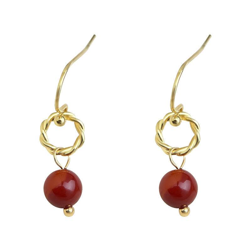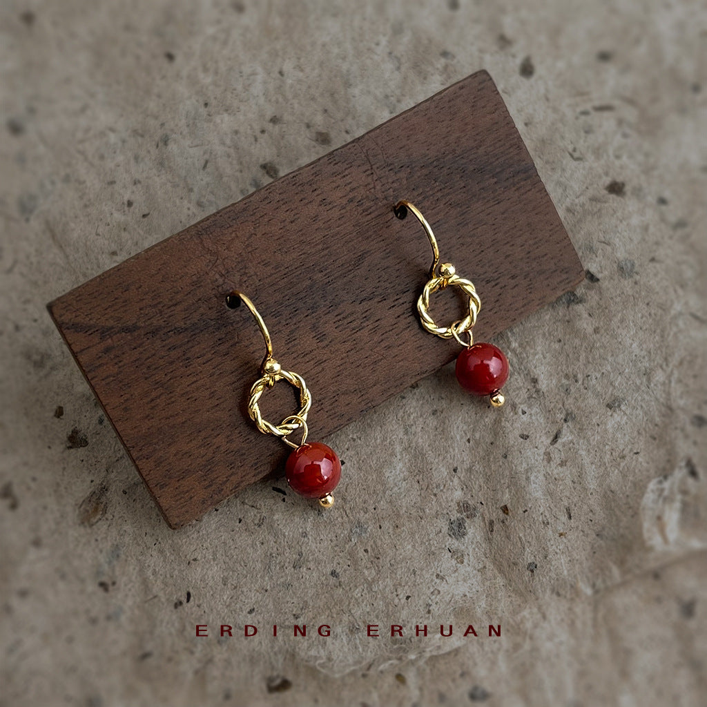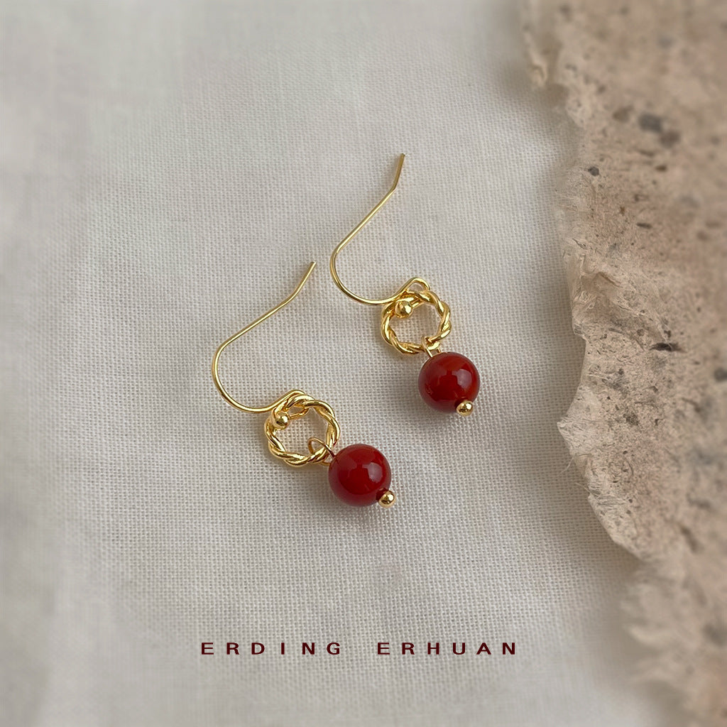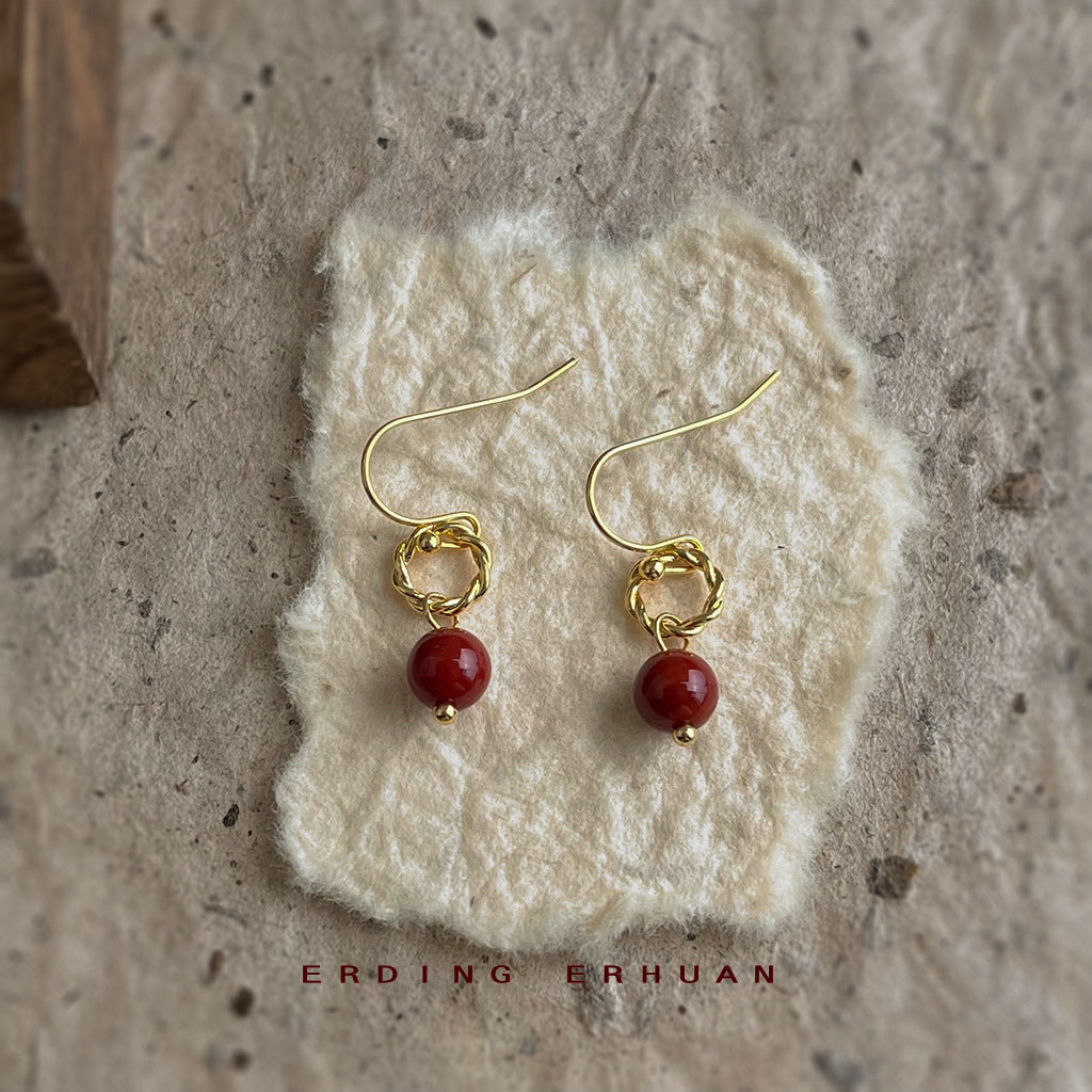 C廠【6489】文藝復古相思紅豆合成南紅瑪瑙小巧簡約時尚通勤手工耳環 25.08-1