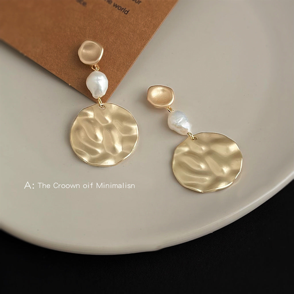 C廠【6497】文藝範兒中古風淡水珍珠巴洛克異形不規則幾何霧面質感耳環耳環女 25.08-1