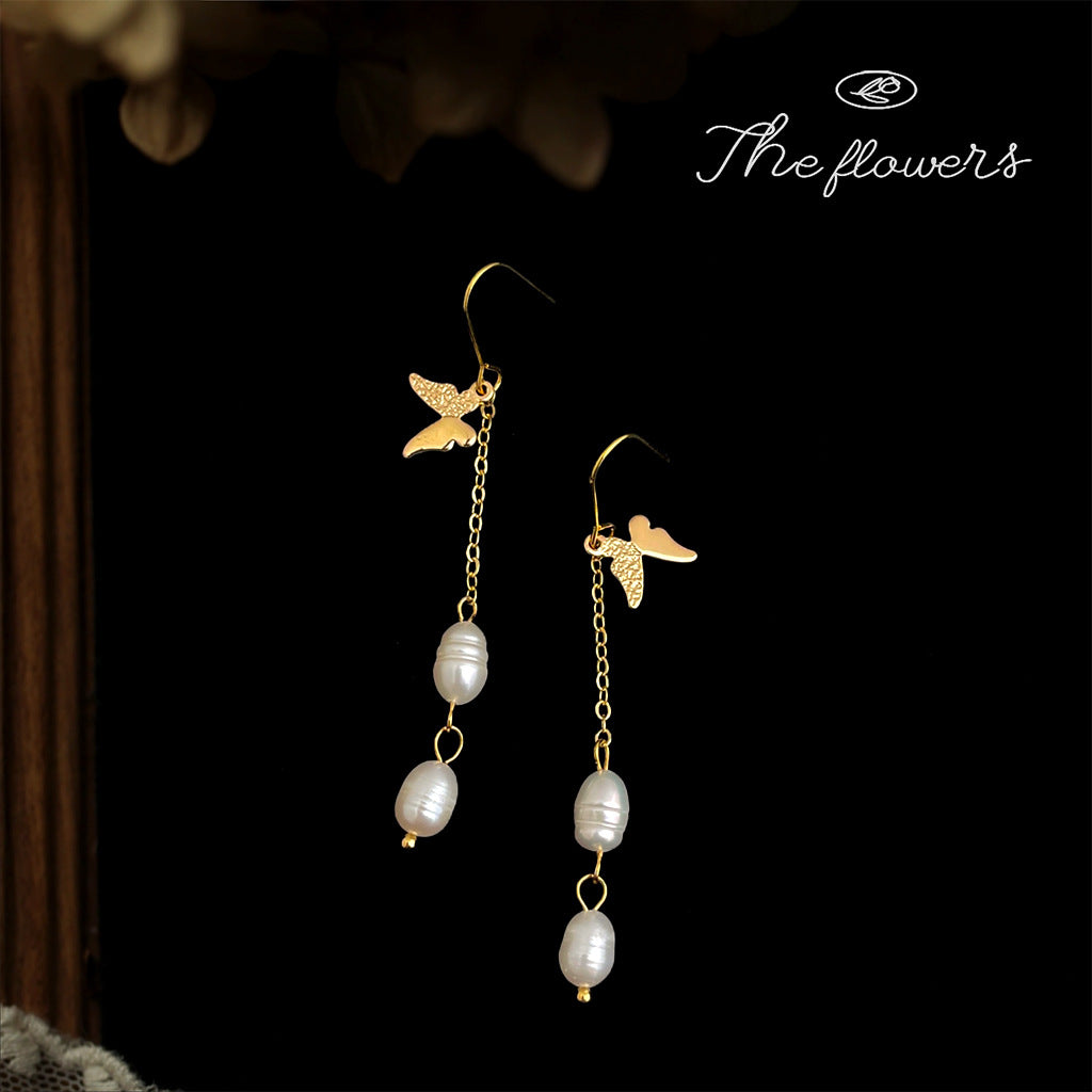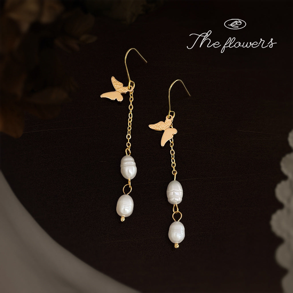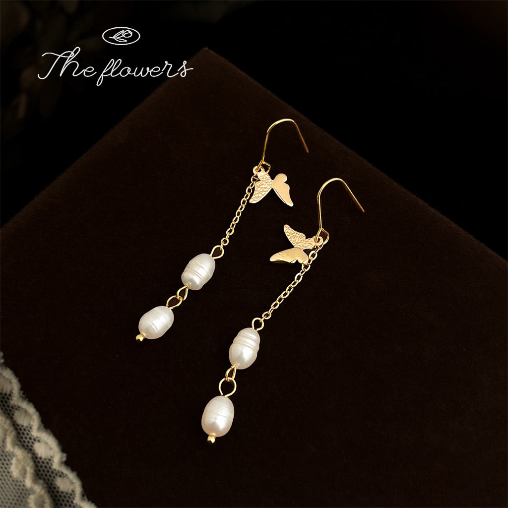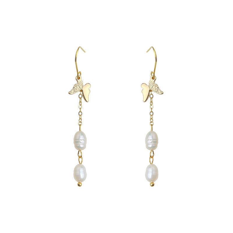 C廠【6501】天然淡水珍珠長蝴蝶流蘇耳環時尚輕奢風手工設計師耳飾飾品 25.11-1