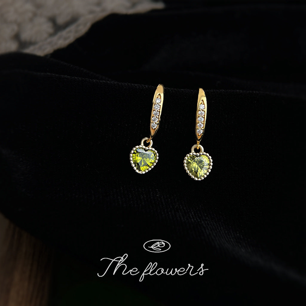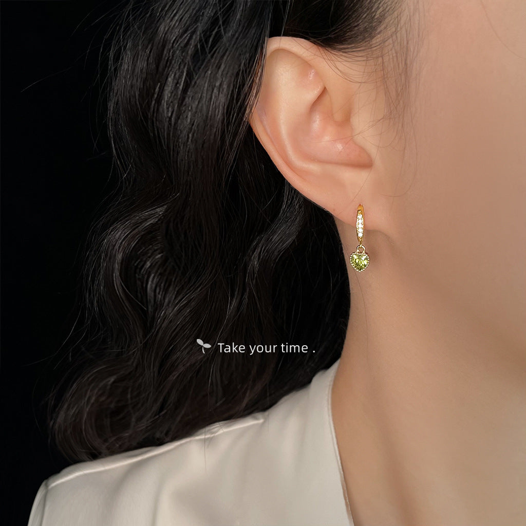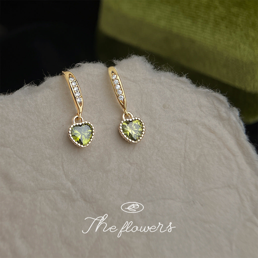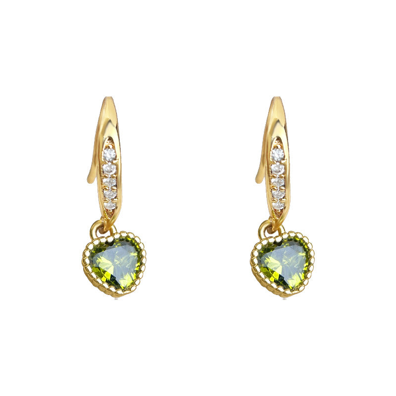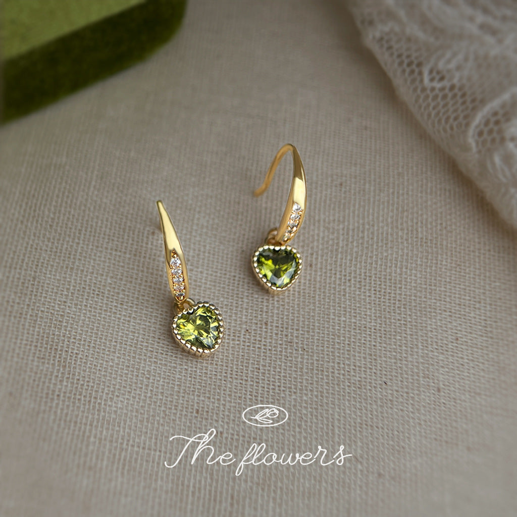 C廠【6503】橄欖綠鋯石時尚輕奢風高級感簡約小巧耳飾 鍍14K真金保色耳環 25.08-1