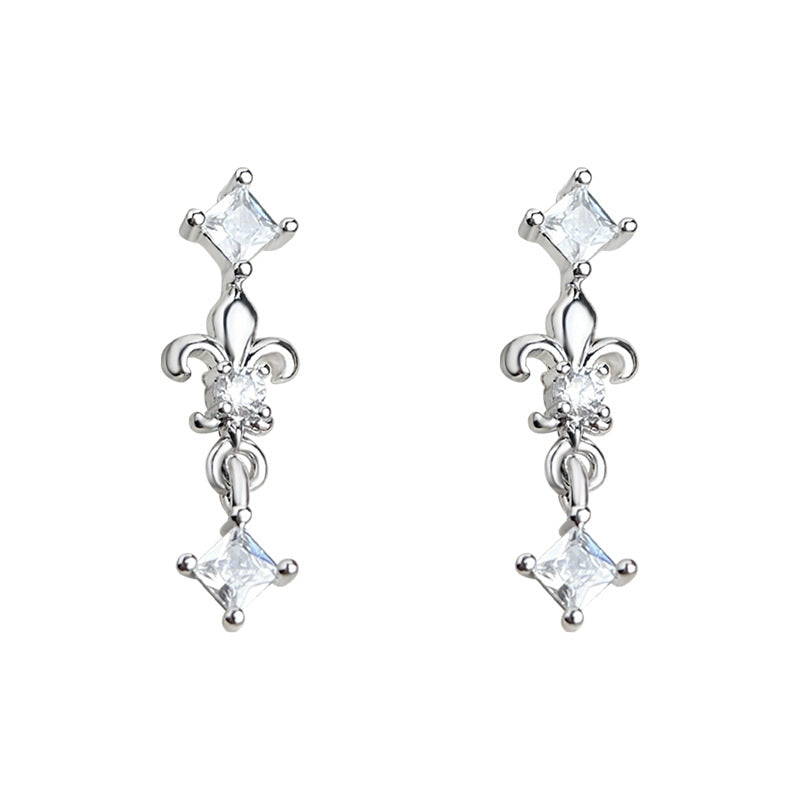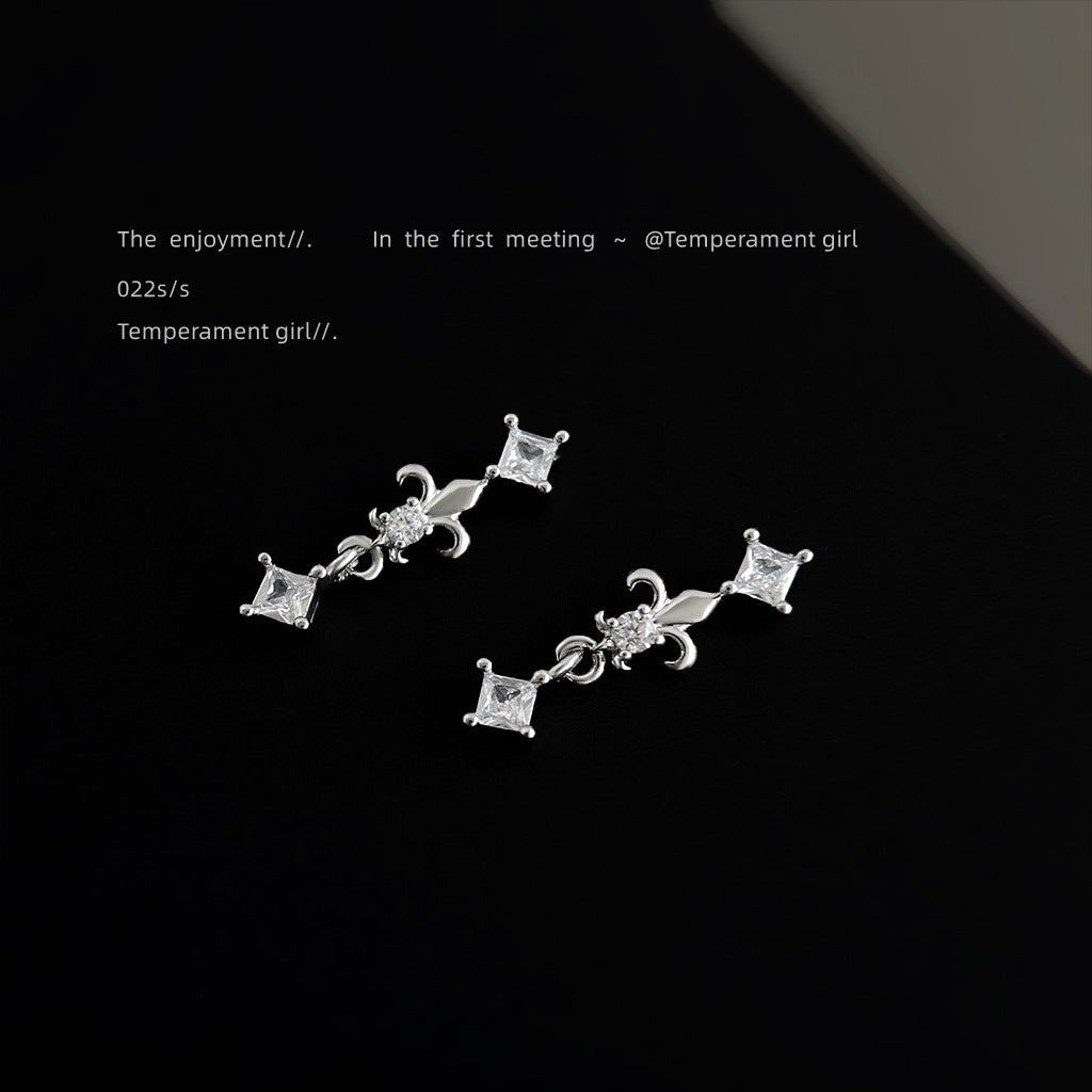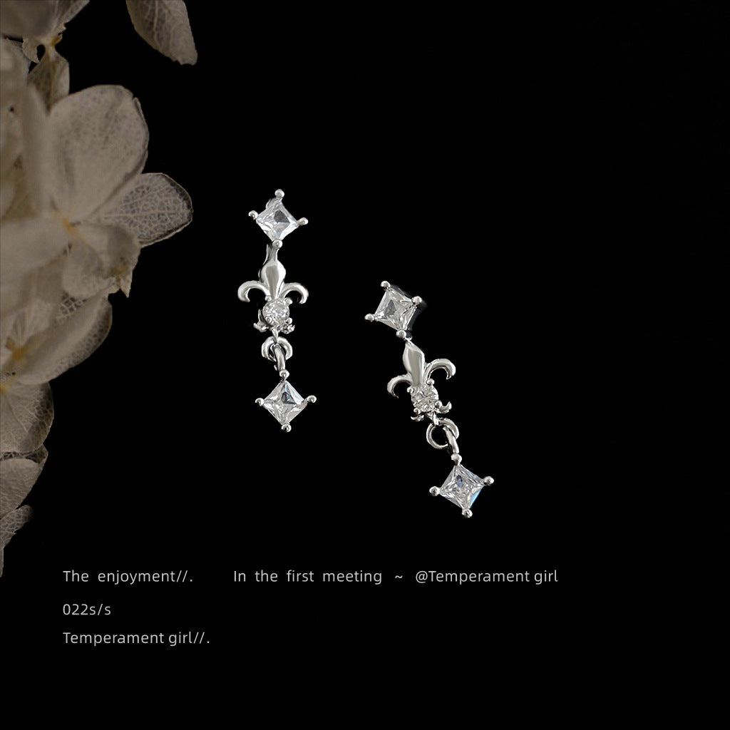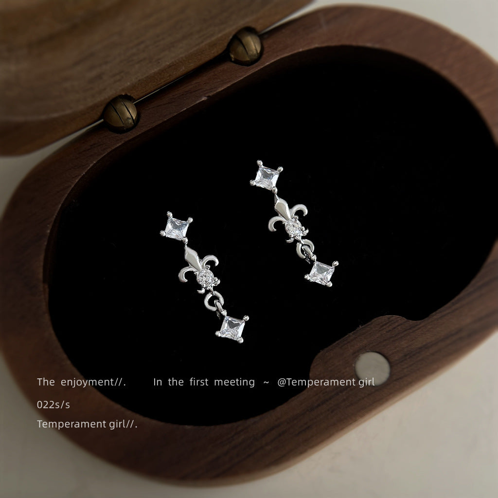 C廠【6506】鳶尾花微鑲鋯石時尚高級感輕奢風925銀針耳飾耳環 飾品 25.08-1