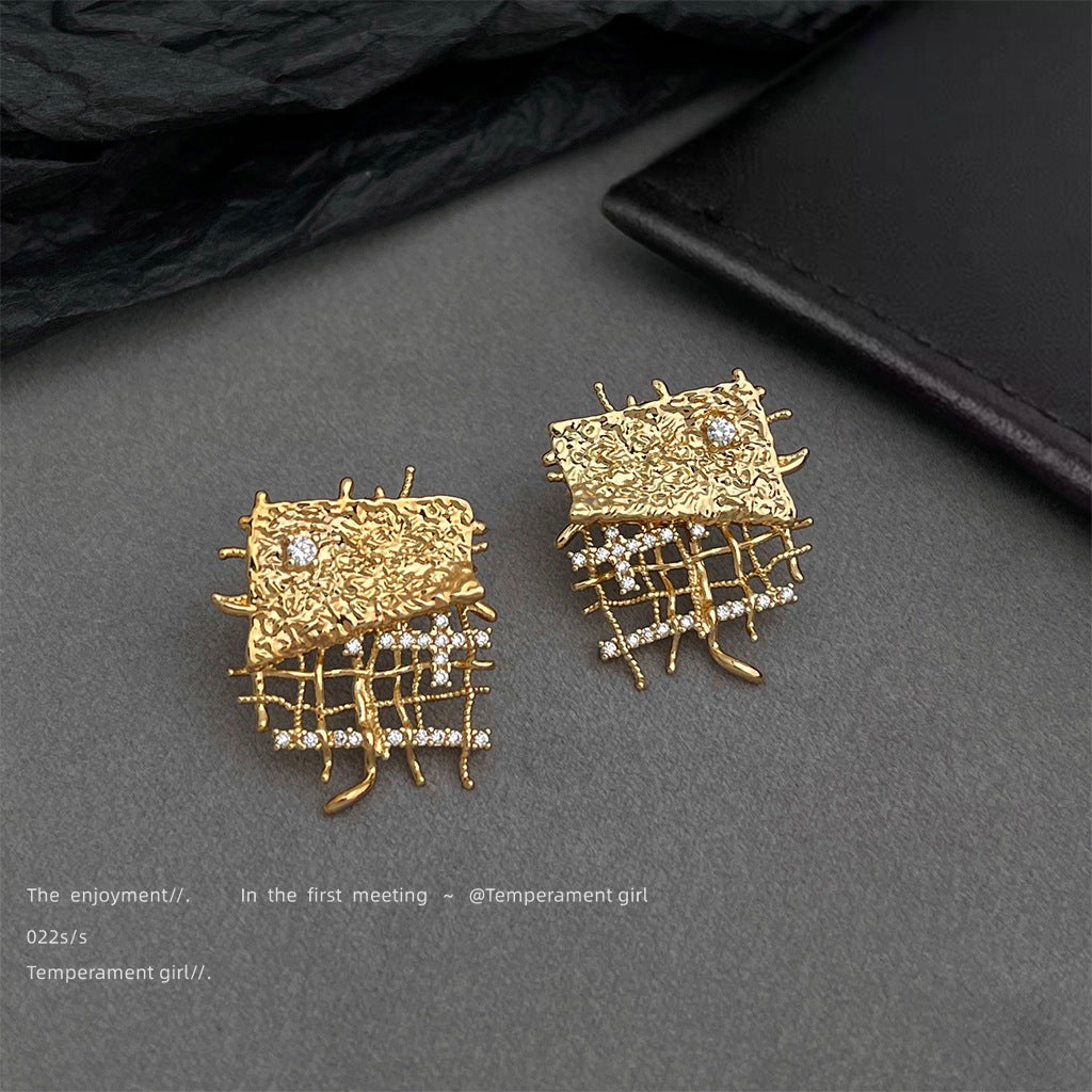 C廠【6512】個性ins小眾設計微鑲鋯石保色電鍍925銀針新款創意耳環耳環女 25.08-2