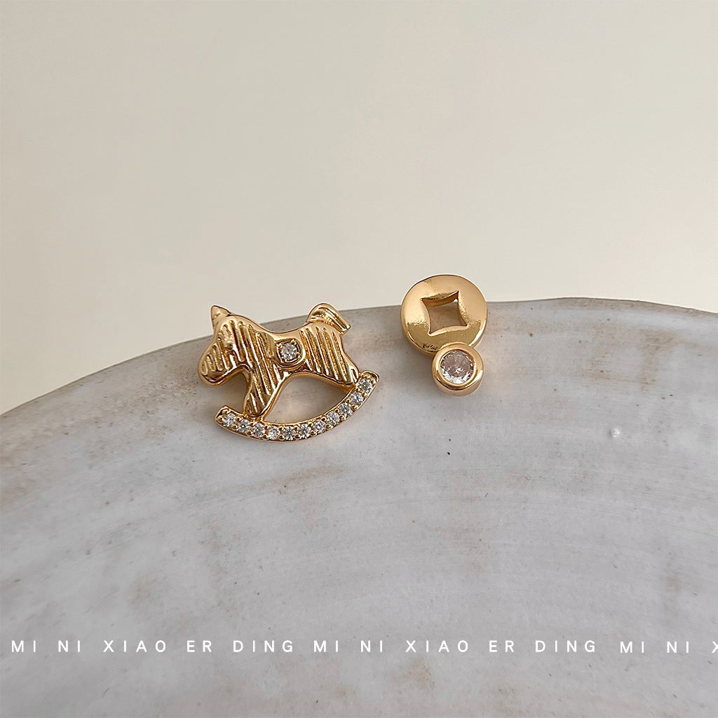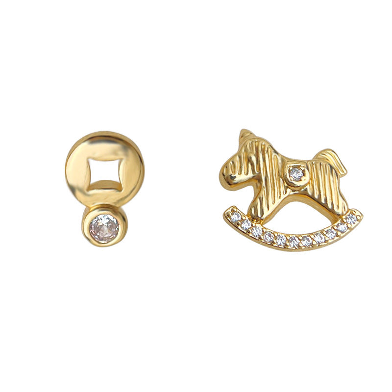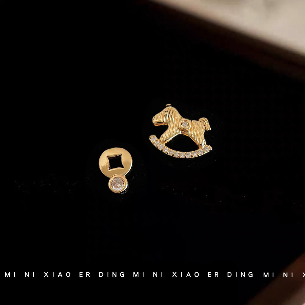 C廠【6513】馬上有錢!微鑲鋯石不對稱AB款925銀針鍍14K輕奢風耳飾耳環女 25.08-2
