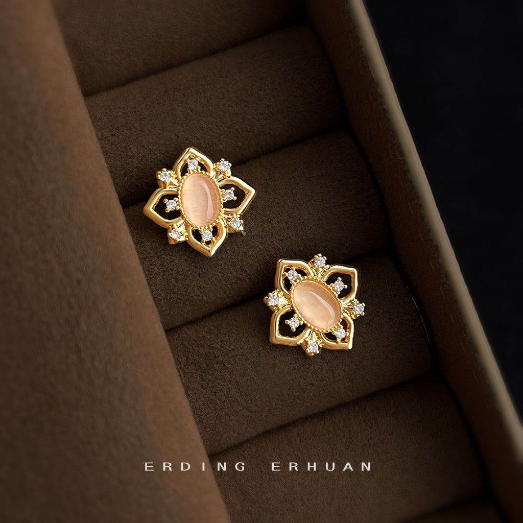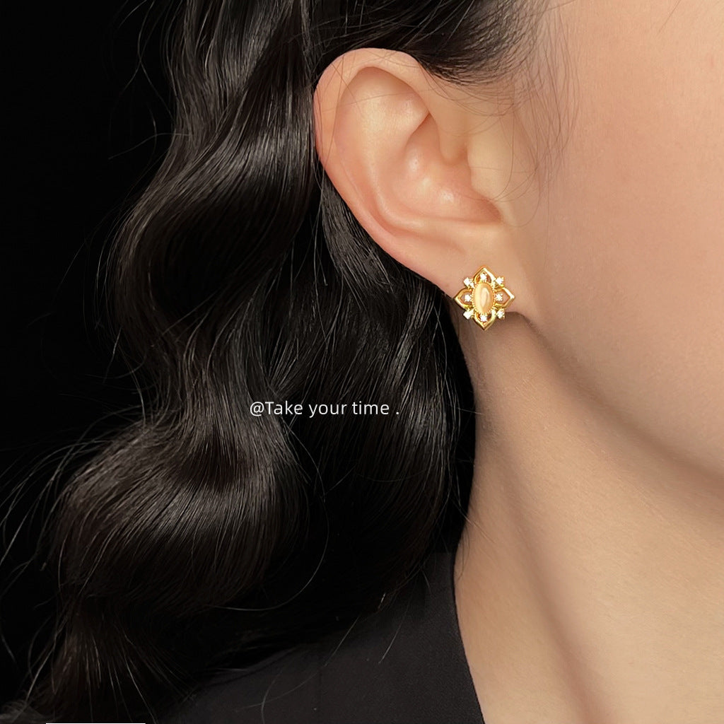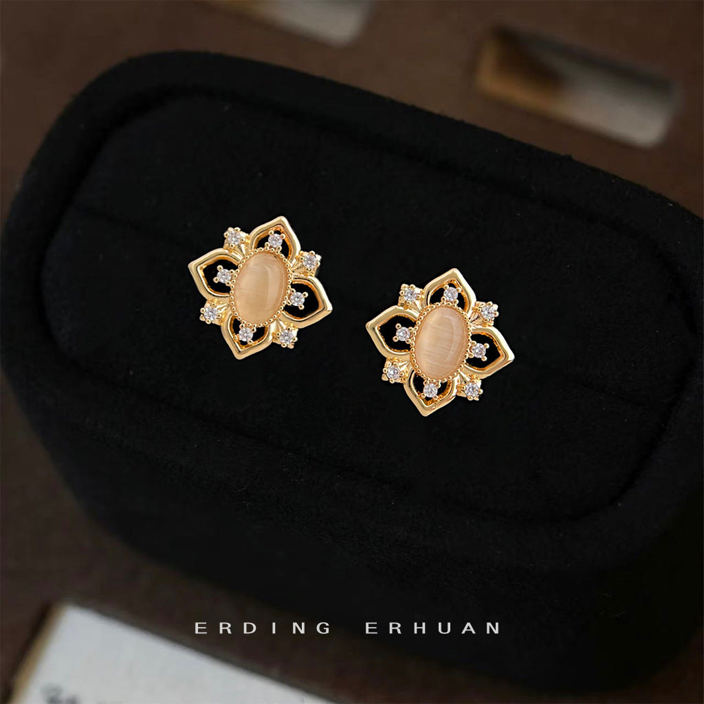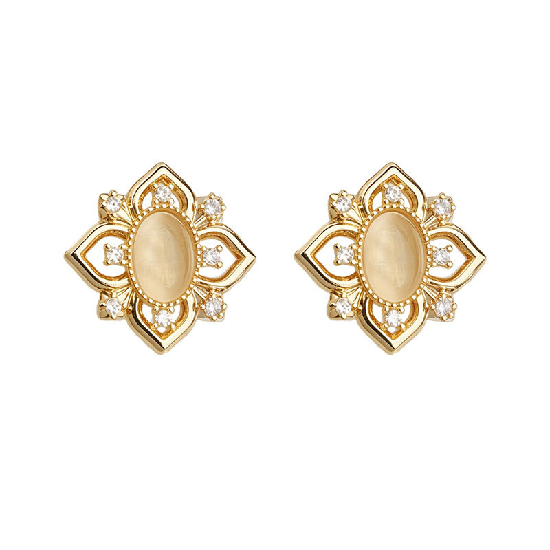 C廠【6515】設計師款!微鑲鋯石玻璃貓眼石925銀針鍍14K保色幾何鏤空耳飾耳環 25.08-2