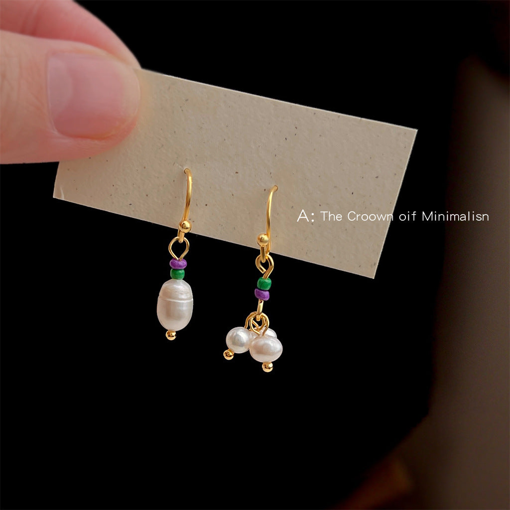 C廠【6521】天然淡水珍珠不對稱設計AB款小巧簡約通勤輕奢風耳環 個性ins耳飾 25.08-2