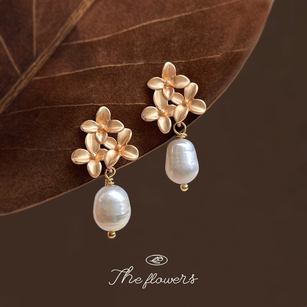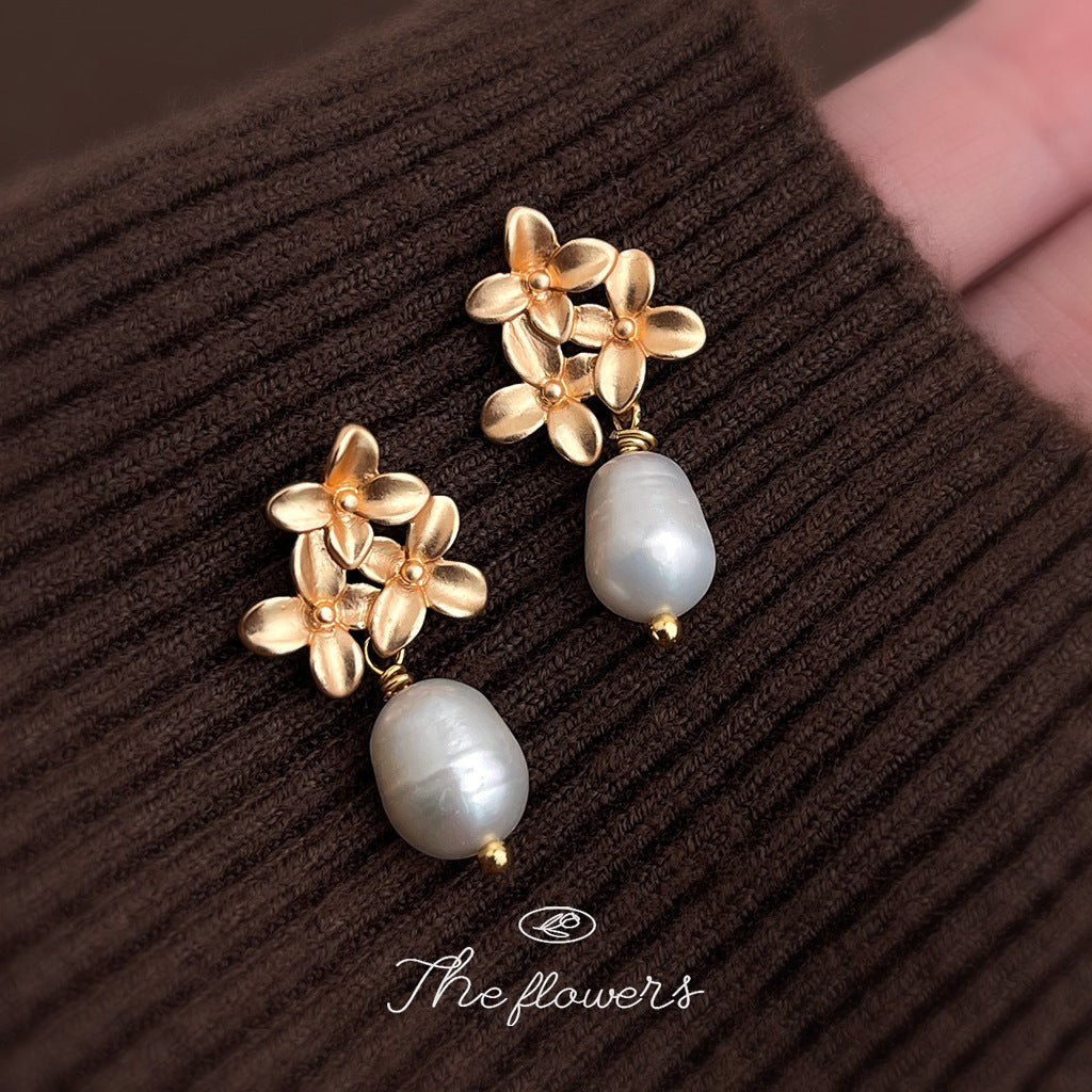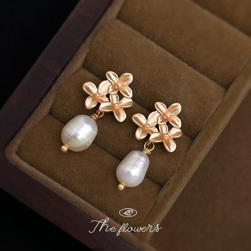C廠【6524】時尚高級感桂花香淡水珍珠925銀針手工耳環 輕奢風通勤耳環女 25.08-2