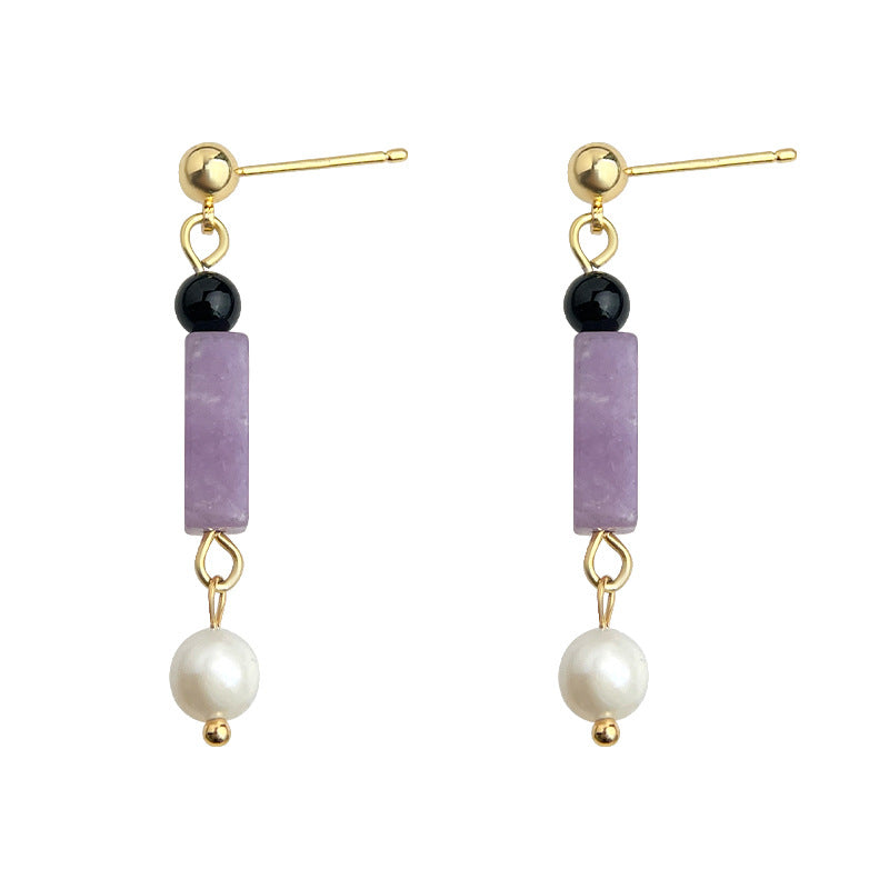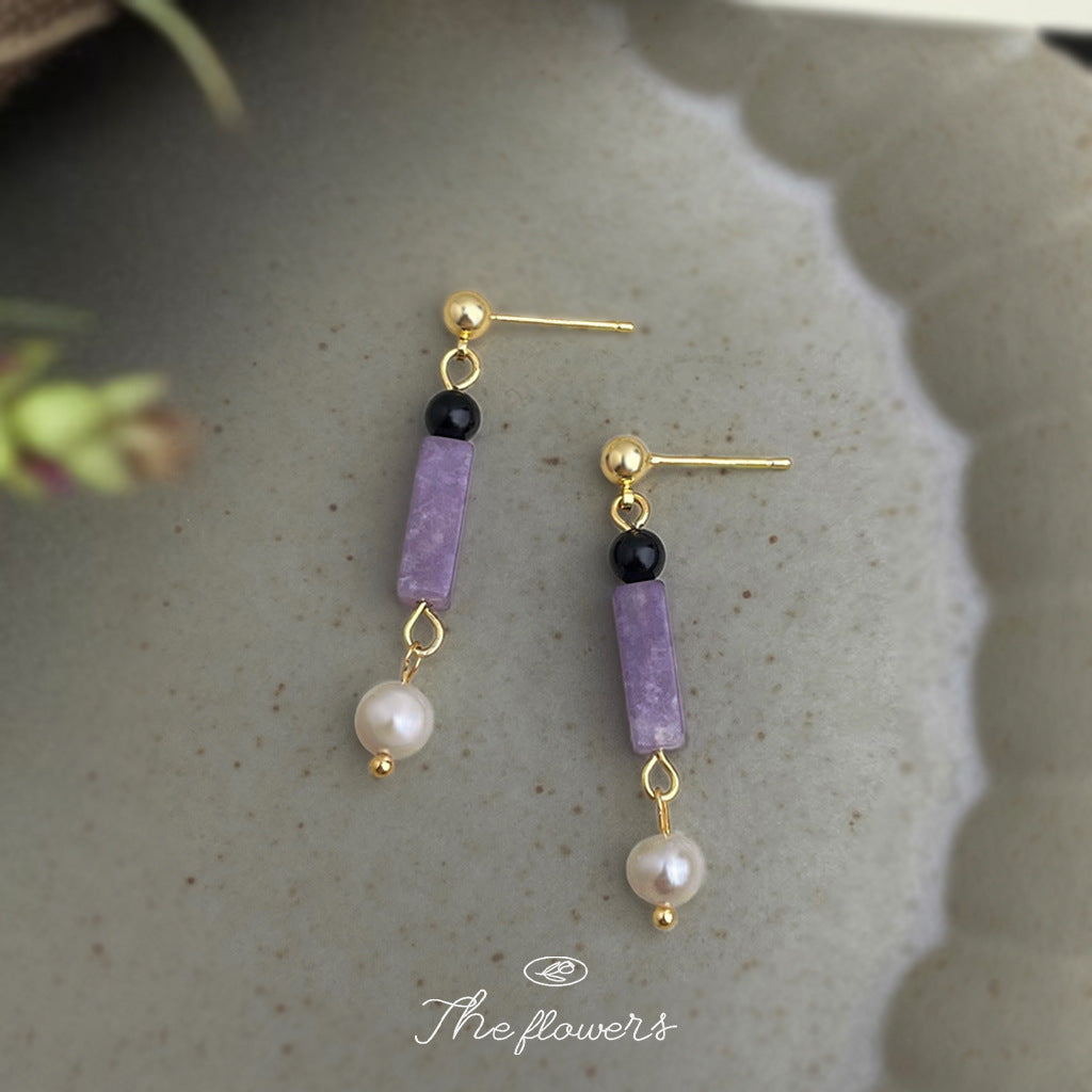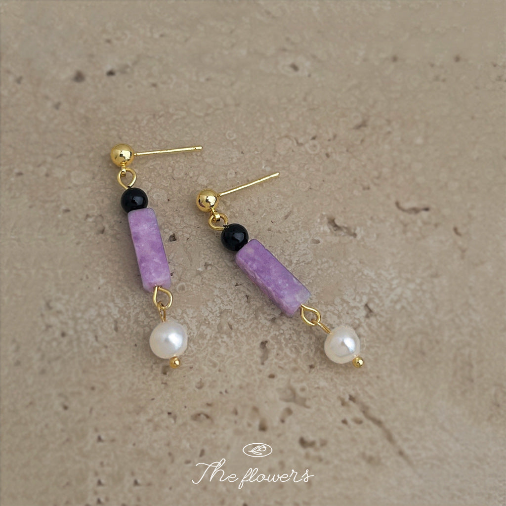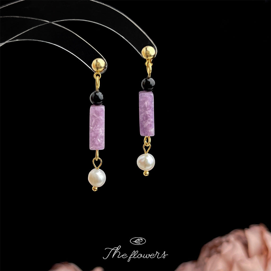 C廠【6526】天然石淡水珍珠紫水晶手工藝設計ins小眾原創景觀耳環耳環耳飾 25.08-2