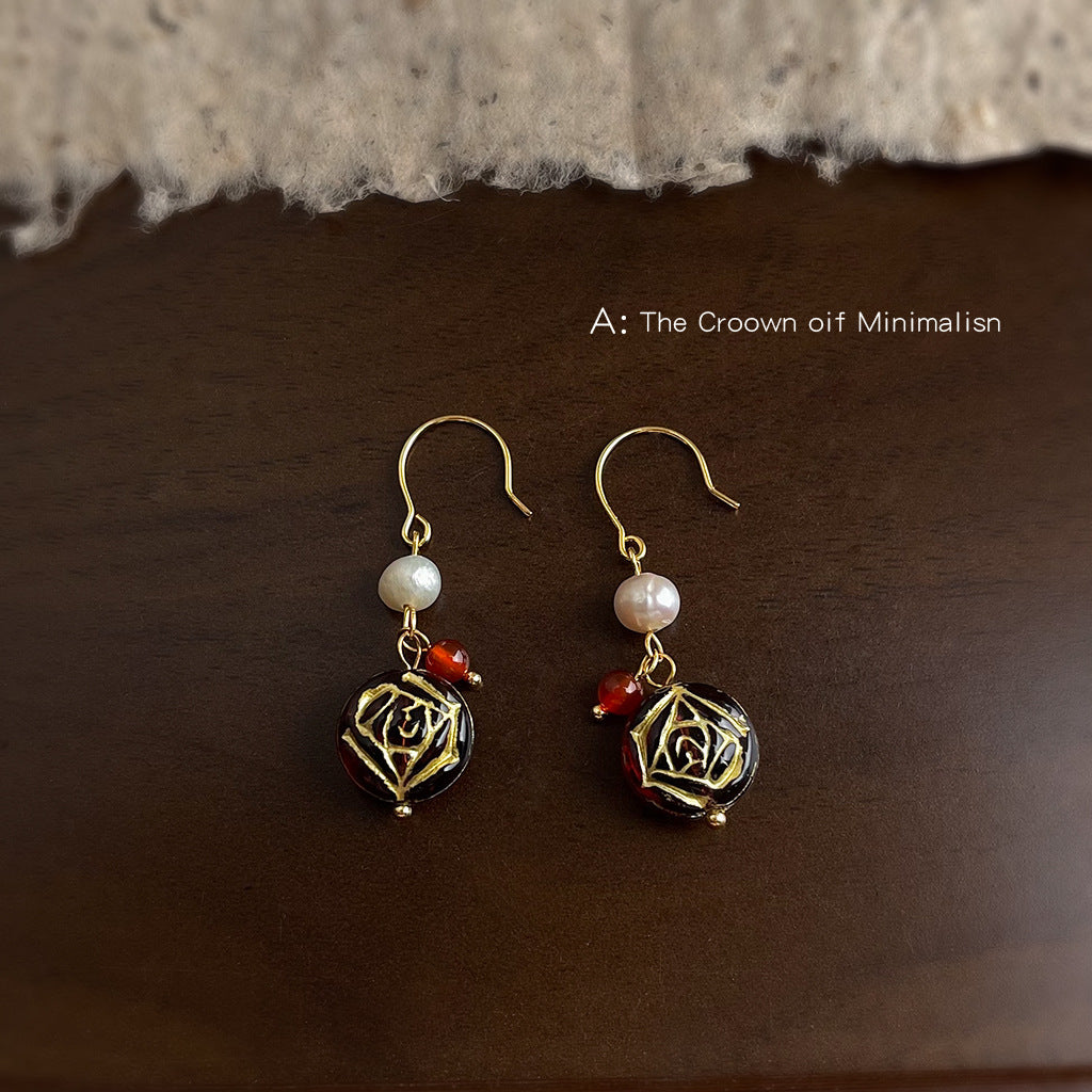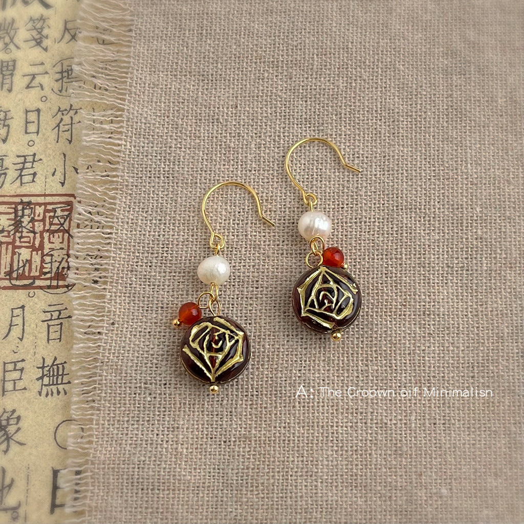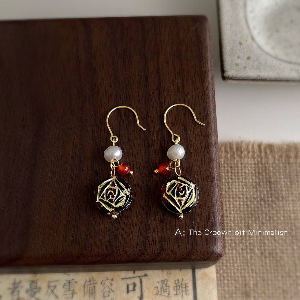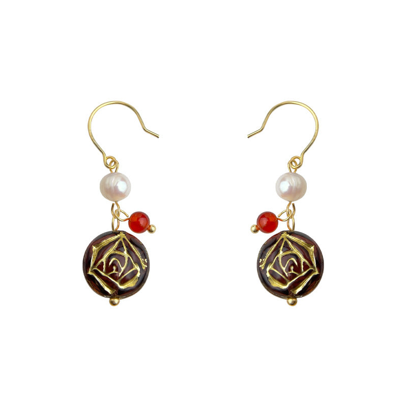 C廠【6532】淡水珍珠捷克琉璃文藝復古風手工宮廷耳飾中古風新款原創耳環 25.08-2