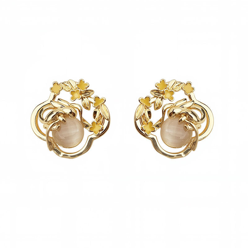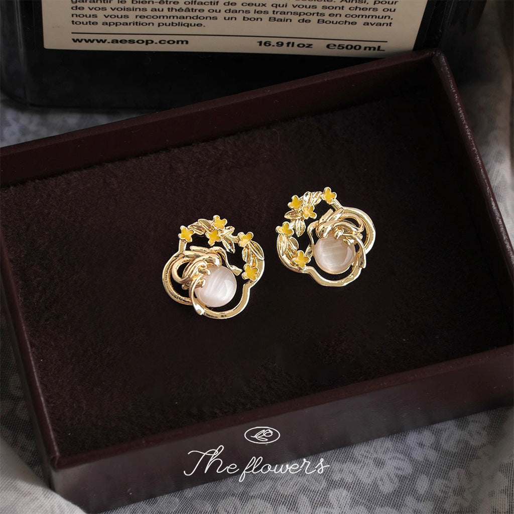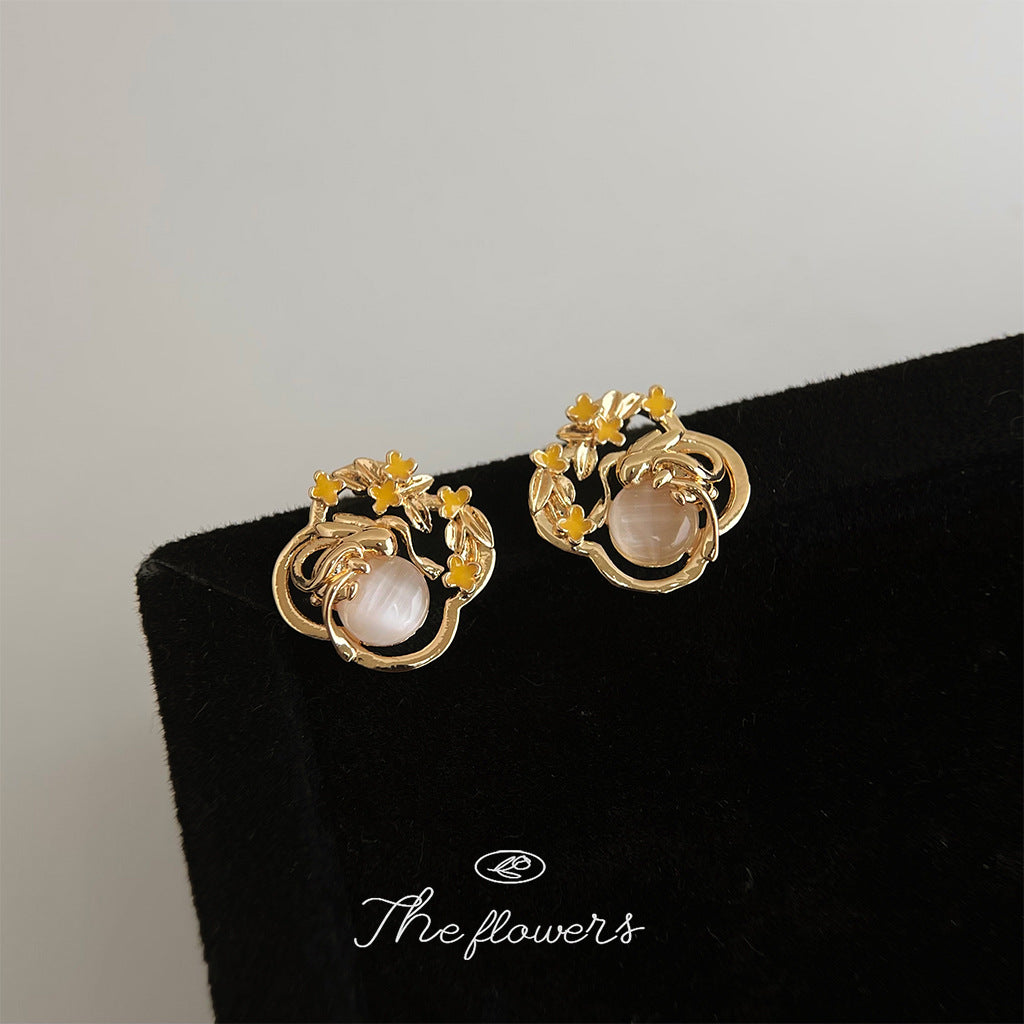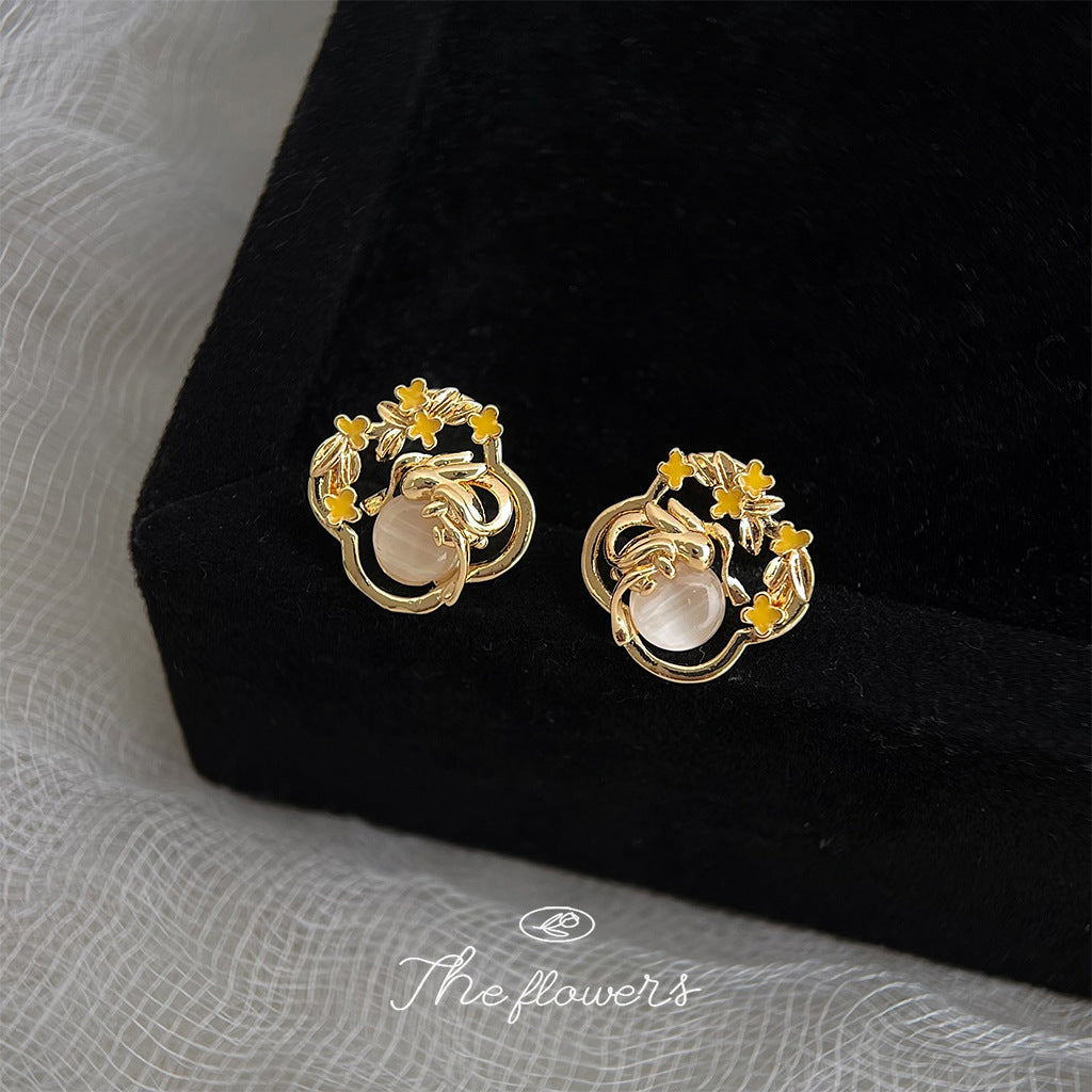 C廠【6533】玉兔桂花香!設計師款925銀針保色電鍍玻璃貓眼石輕奢風耳飾 耳環 25.08-2