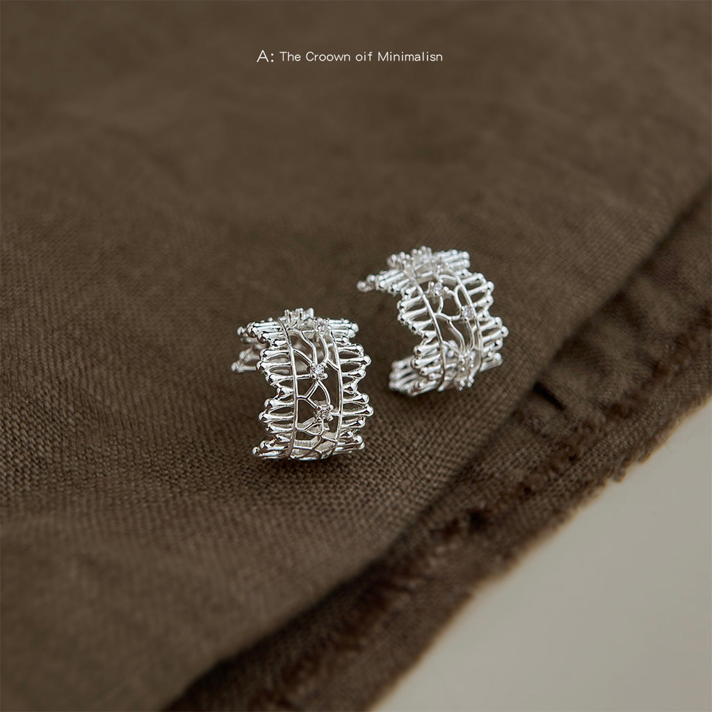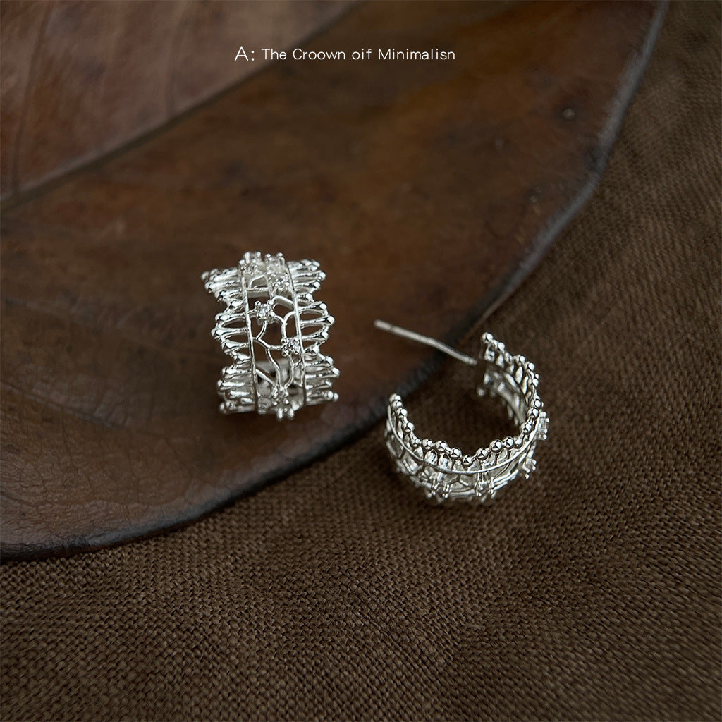 C廠【6541】蕾絲邊鏤空輕奢風925銀針蕾絲耳飾清新甜美氣質新款耳環飾品 25.08-3