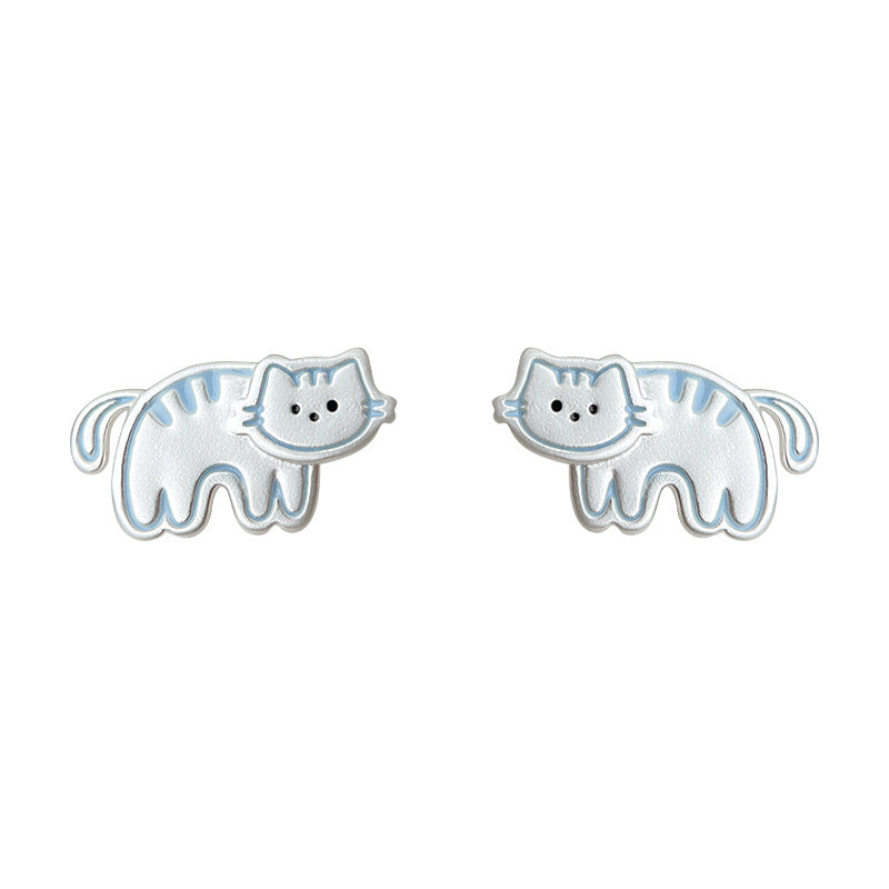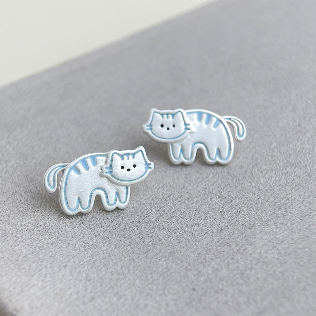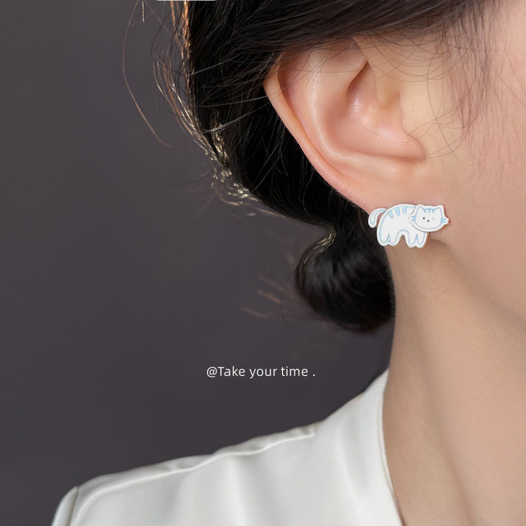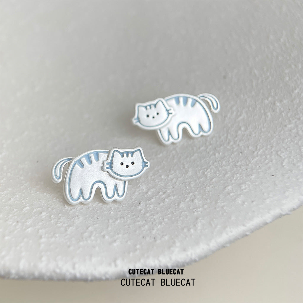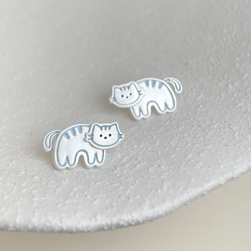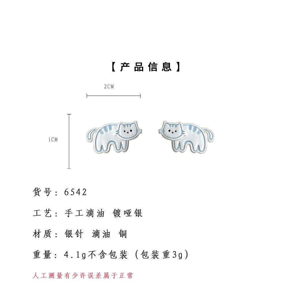C廠【6542】清新甜美S925銀針手工彩繪貓咪耳飾可愛甜妹風新款耳環飾品女 25.08-5
