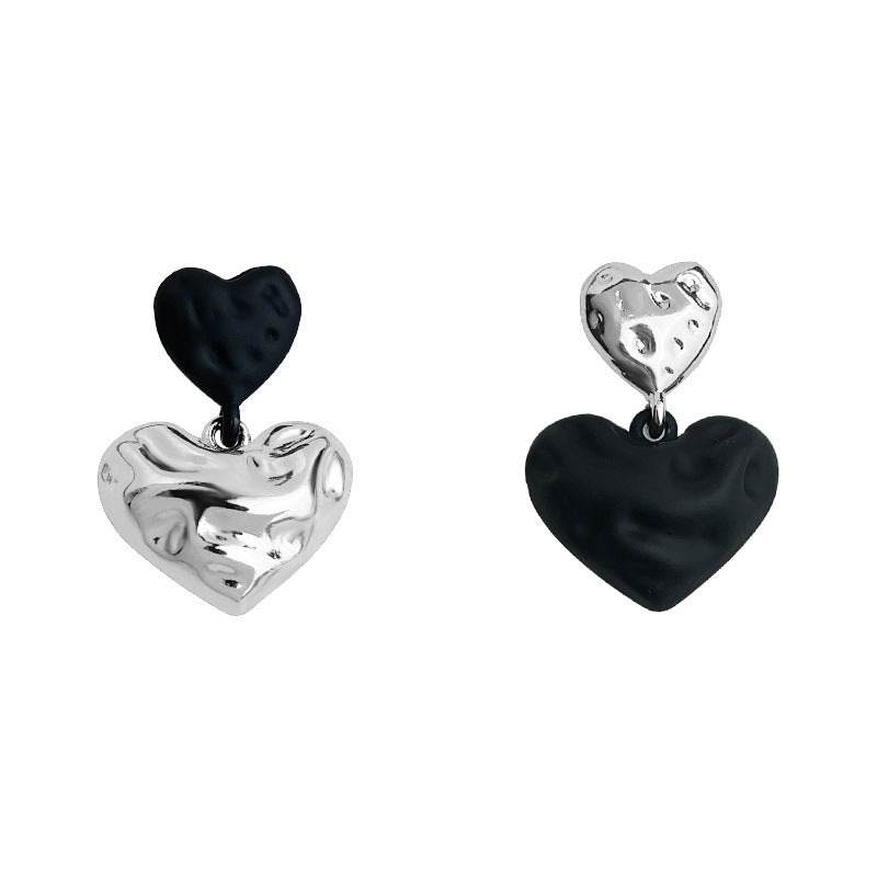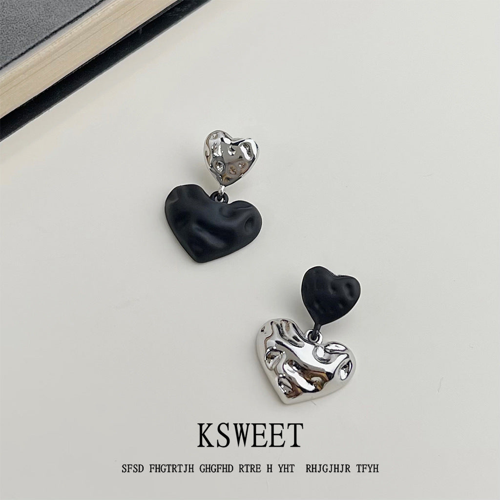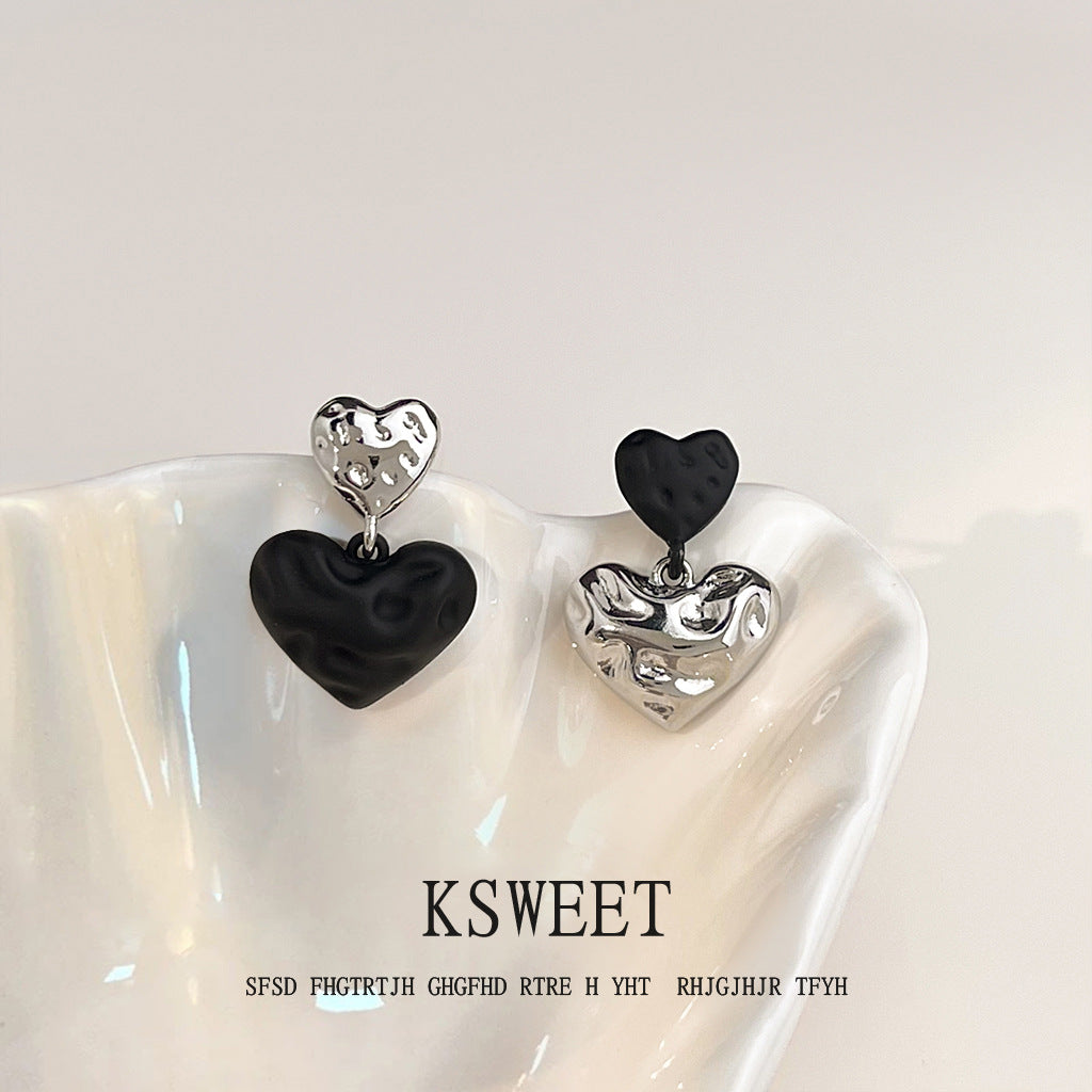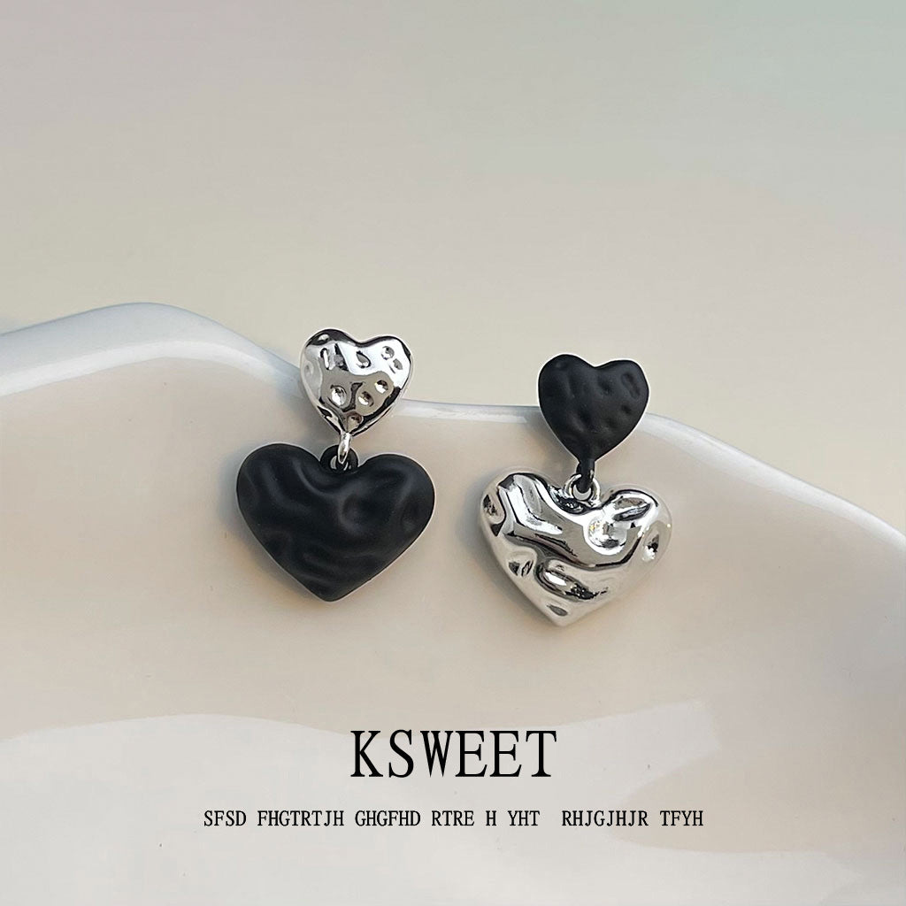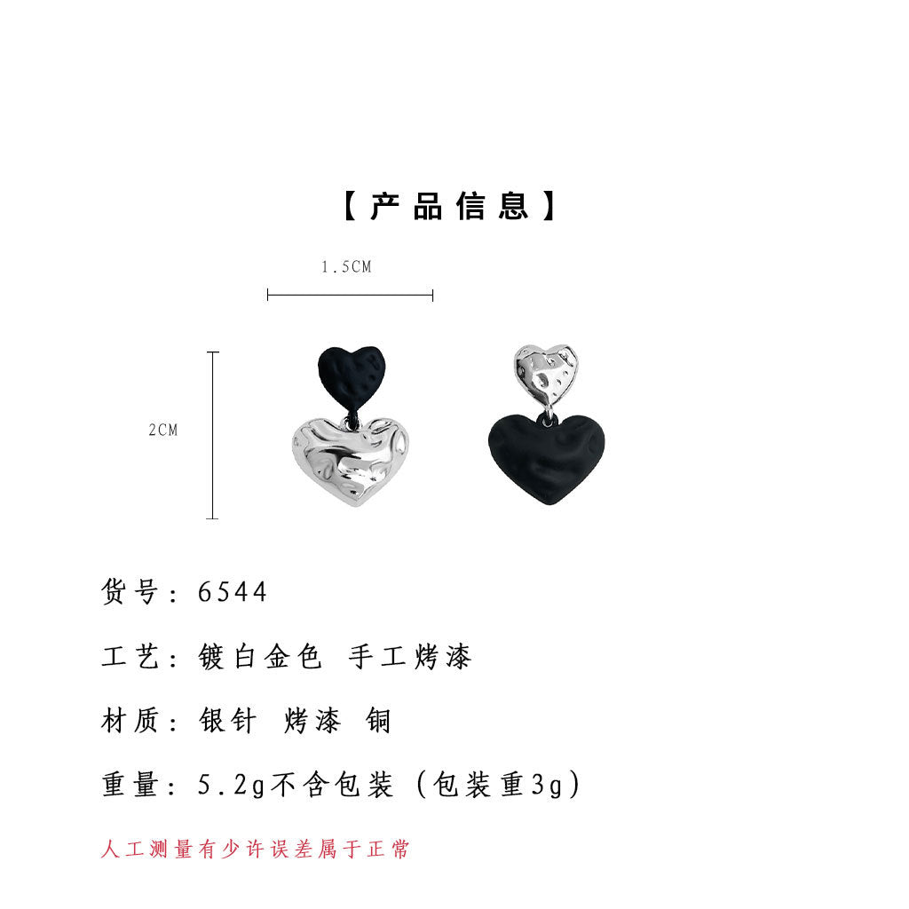 C廠【6544】輕奢風高級感925銀針黑色愛心耳環 不對稱設計感新爆款耳環女 25.08-3