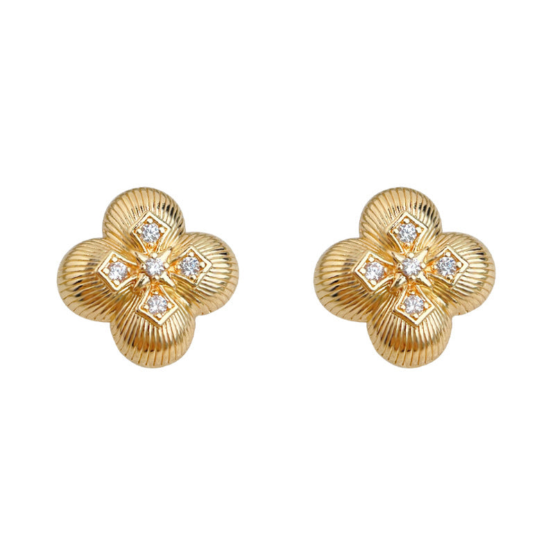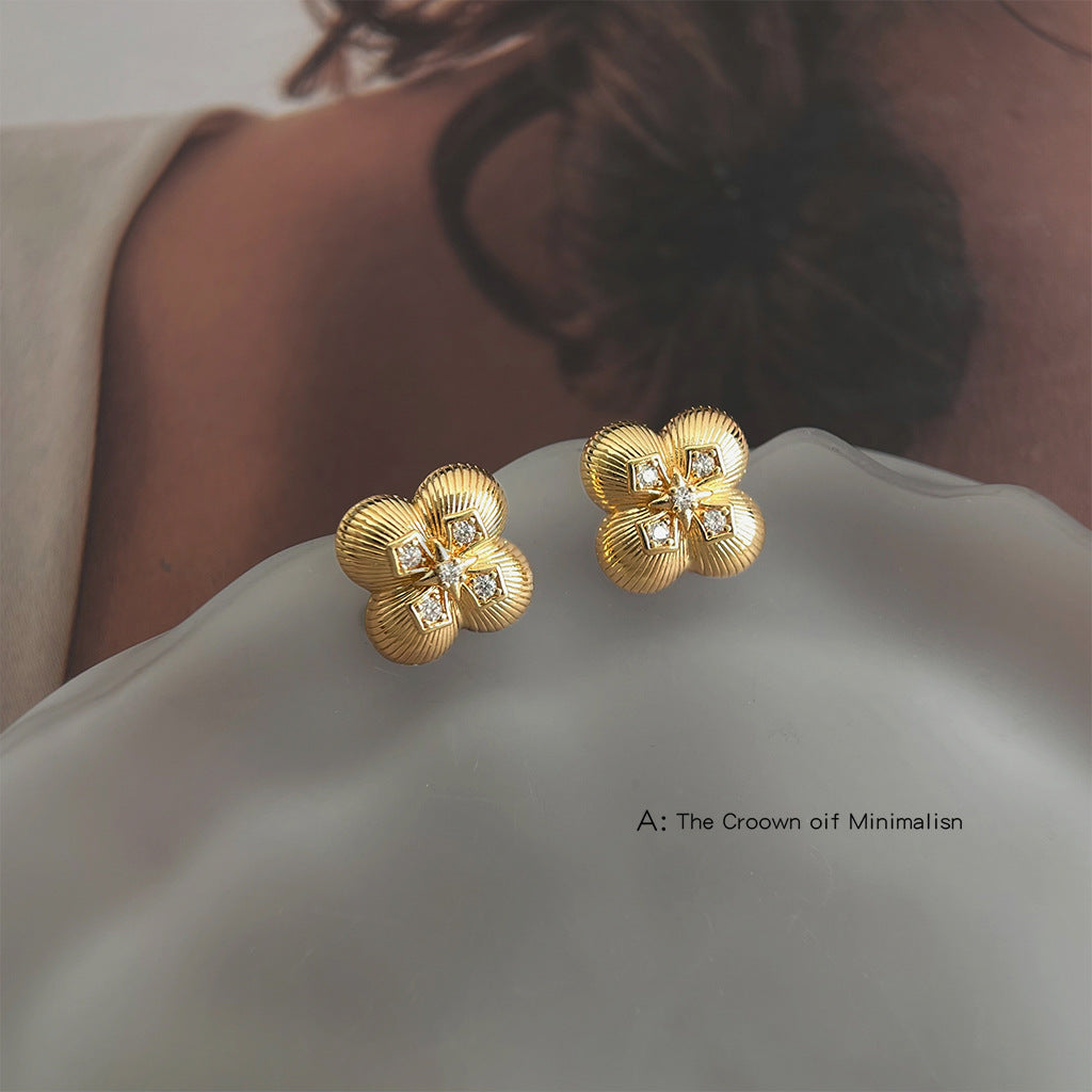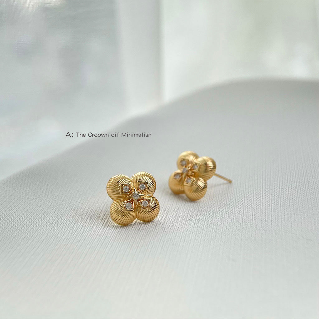 A廠【6545】時尚高級感微鑲鋯石925銀針電鍍14K四葉花新款耳環女飾品 25.11-3
