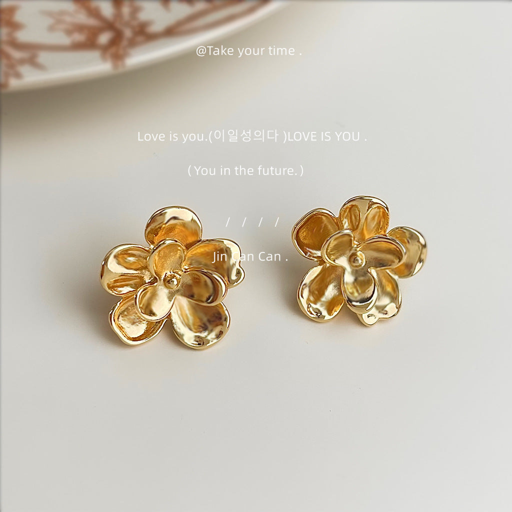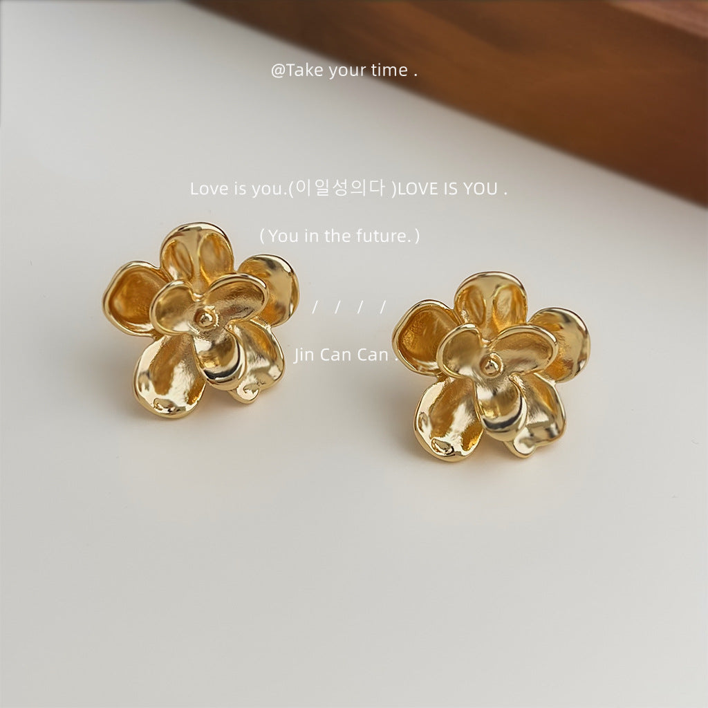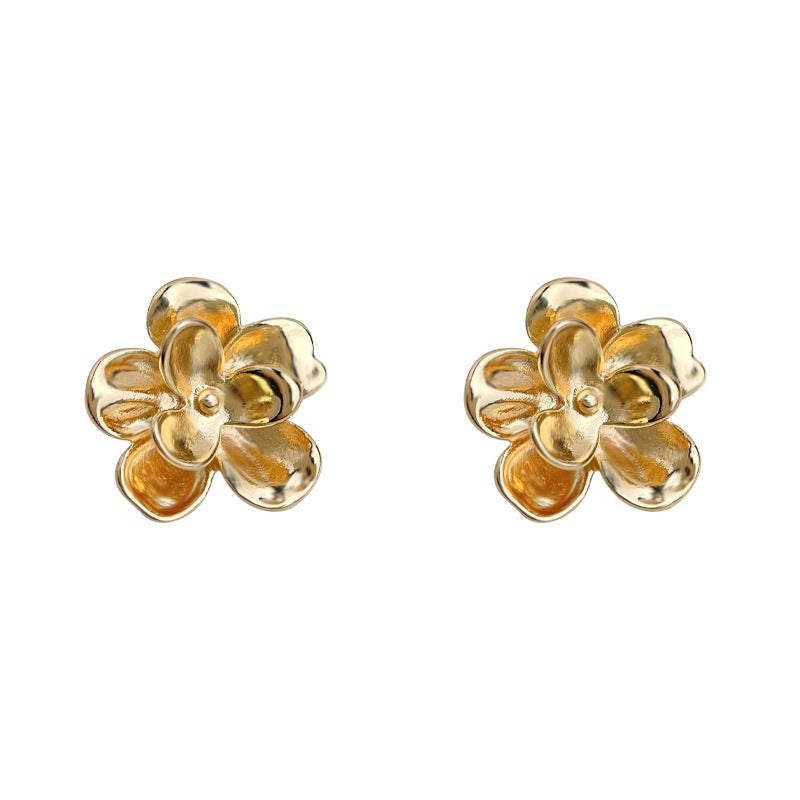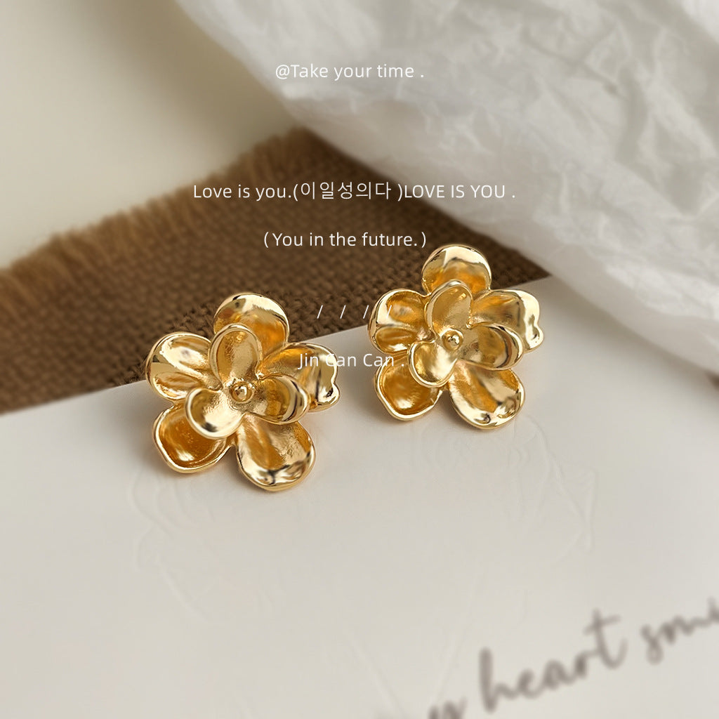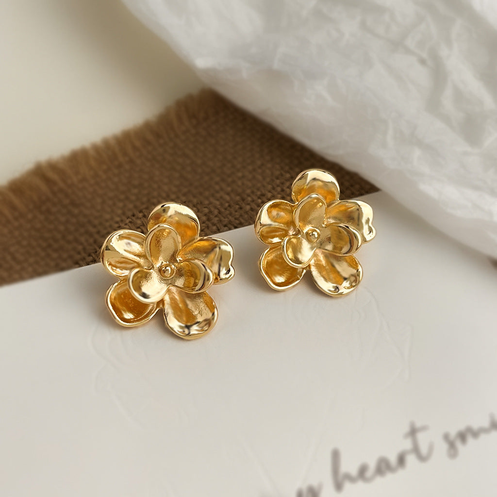 C廠【6547】時尚高級感輕奢風925銀針電鍍14K金色立體花朵耳環飾品耳環女 25.08-3