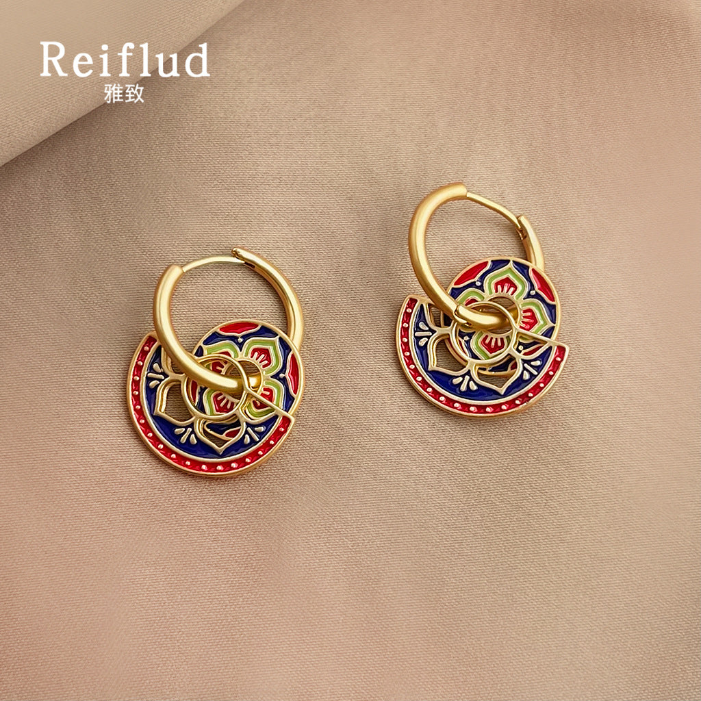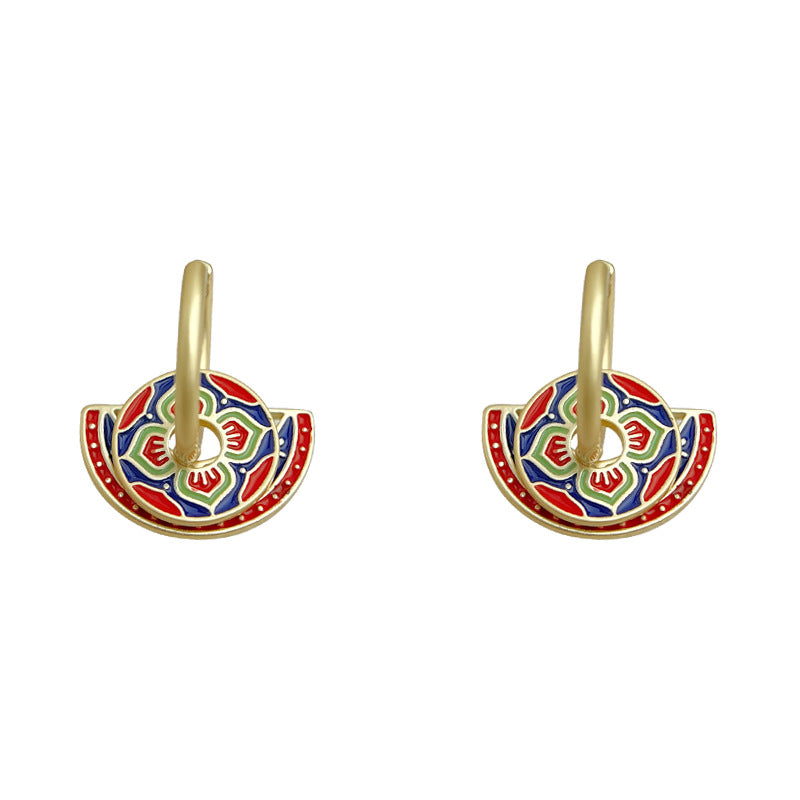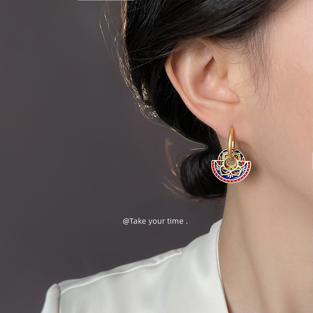 C廠【6549】文藝復古國潮民族風手工彩繪琺瑯滴釉紋樣新款耳飾耳環女飾品 25.08-3