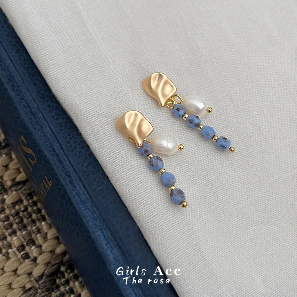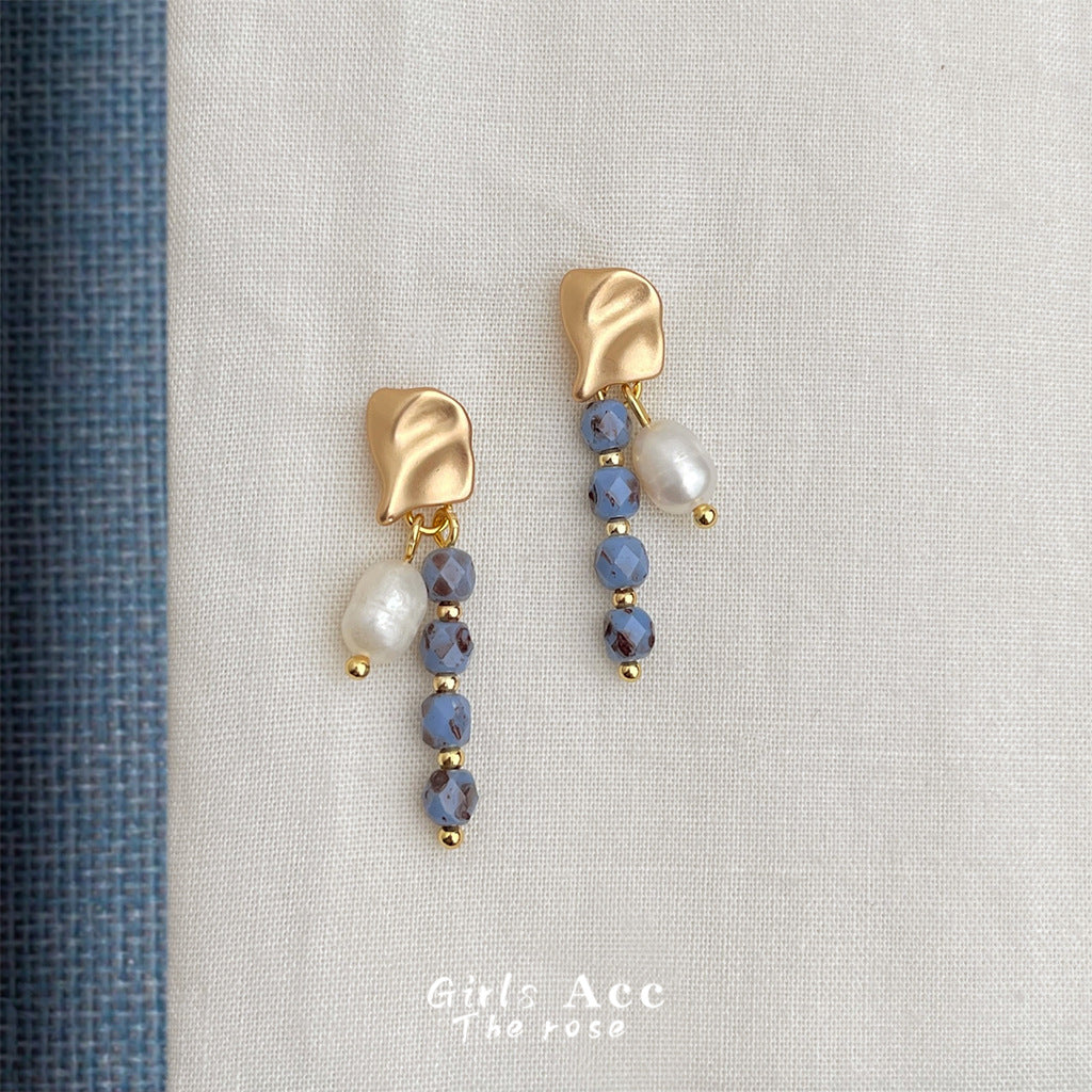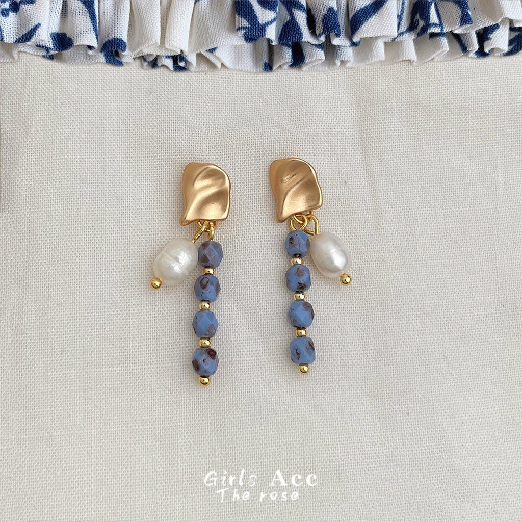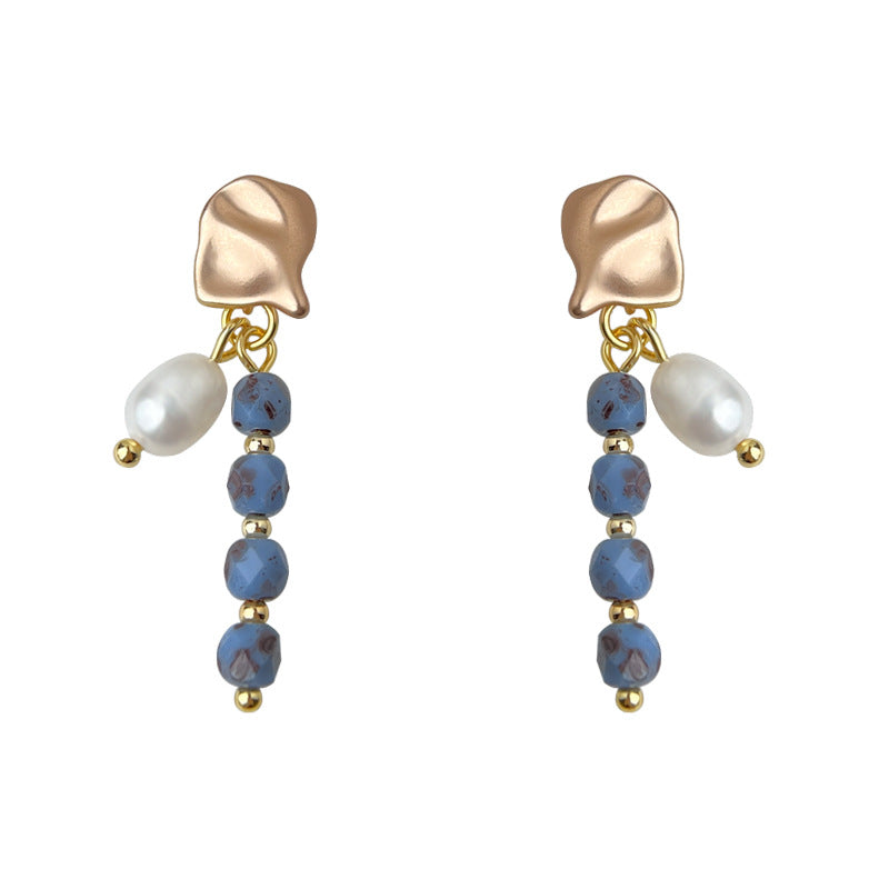 C廠【6558】天然淡水珍珠民族風長款捷克琉璃手工耳環爆款新款耳飾飾品 25.08-3