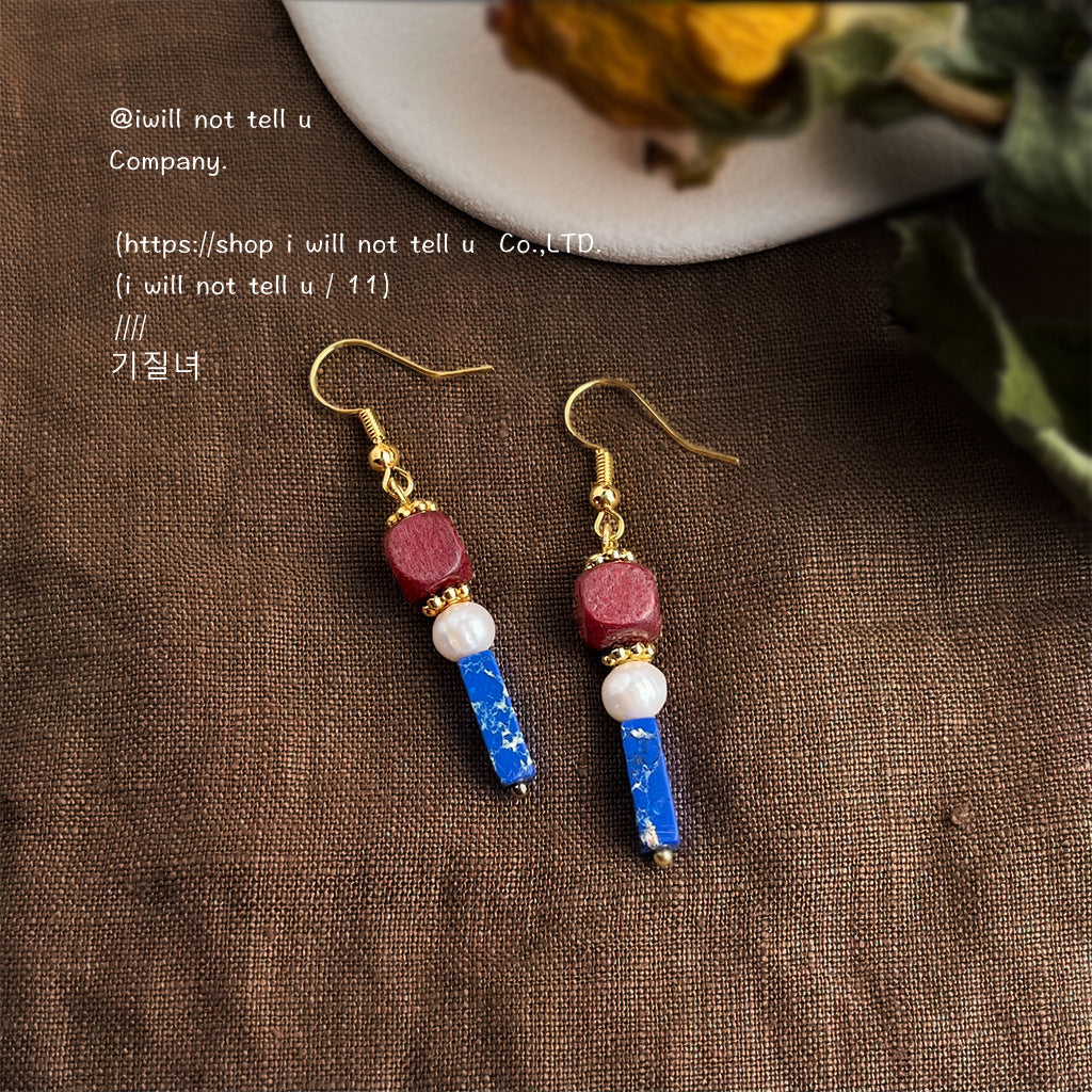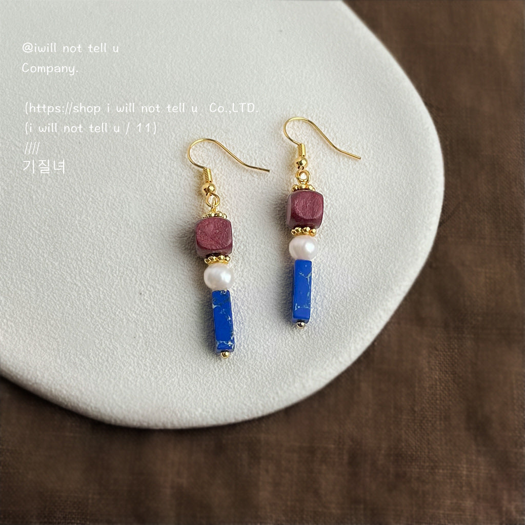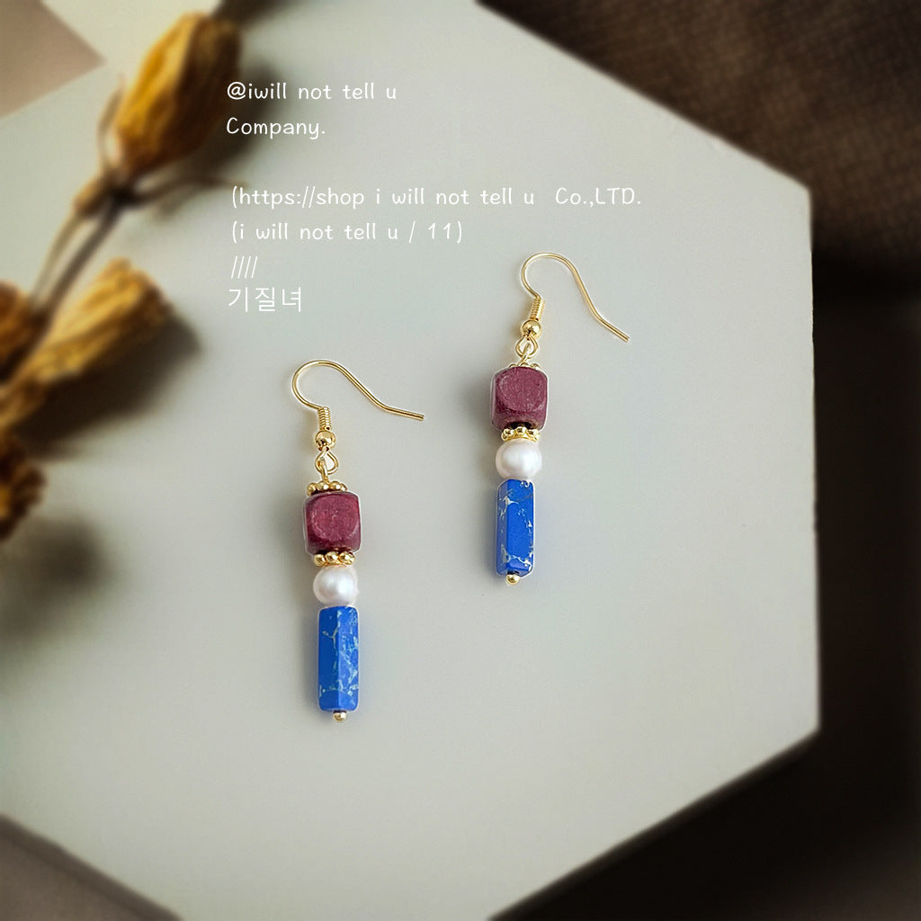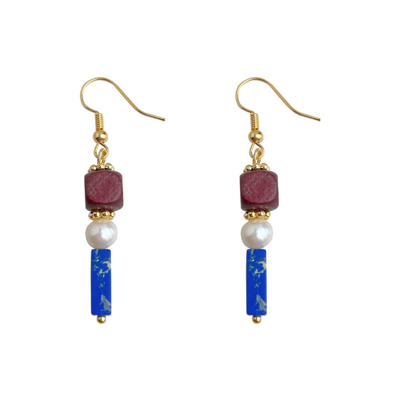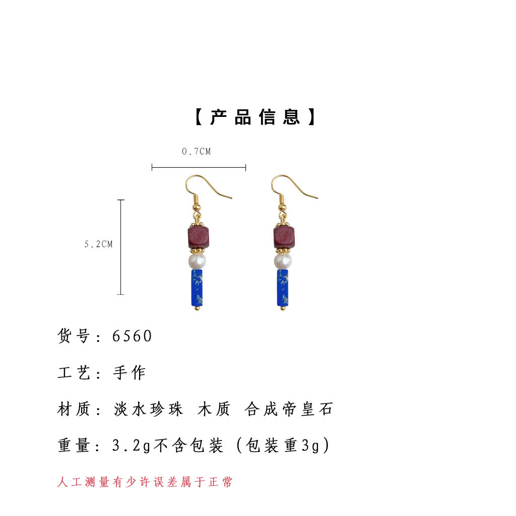 C廠【6560】原創文藝復古撞色系民族風手工耳環天然淡水珍珠耳飾飾品 25.08-3