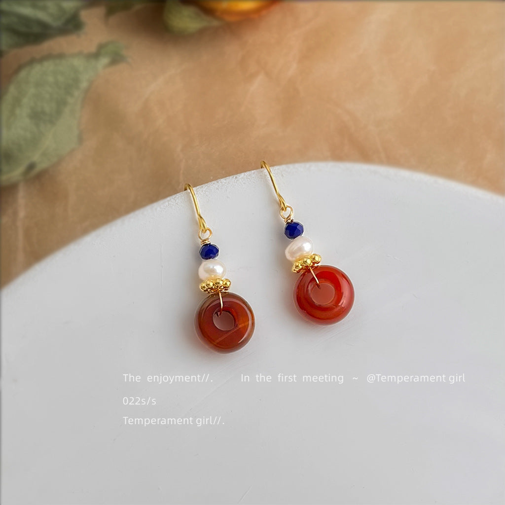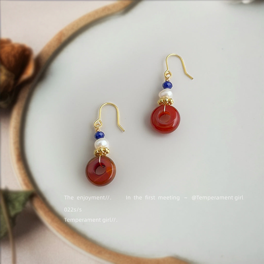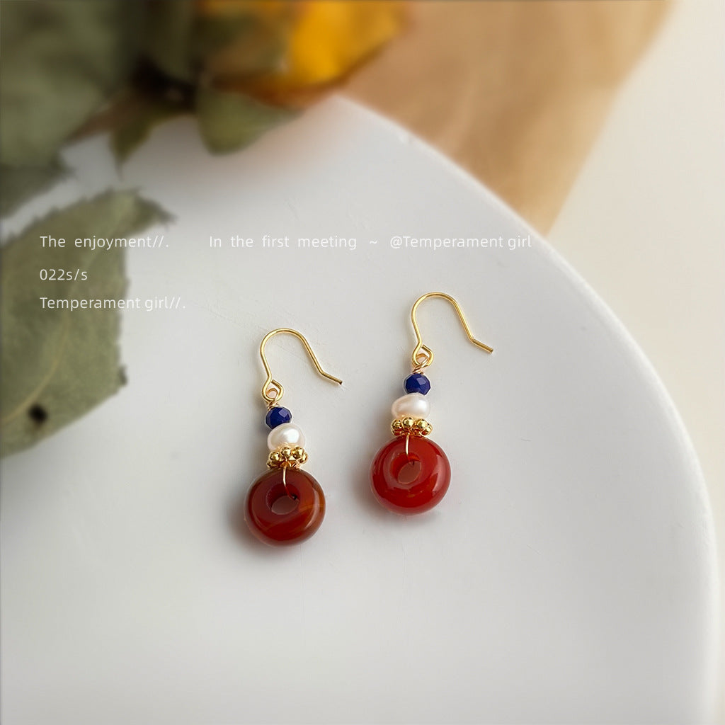 C廠【6562】淡水珍珠紅瑪瑙原創手工耳環文藝復古宮廷風新款耳環飾品 25.08-3