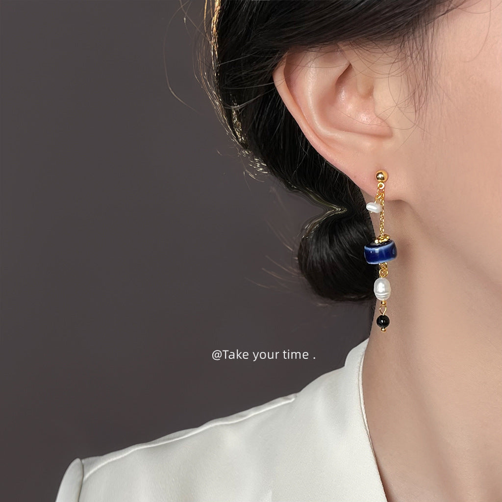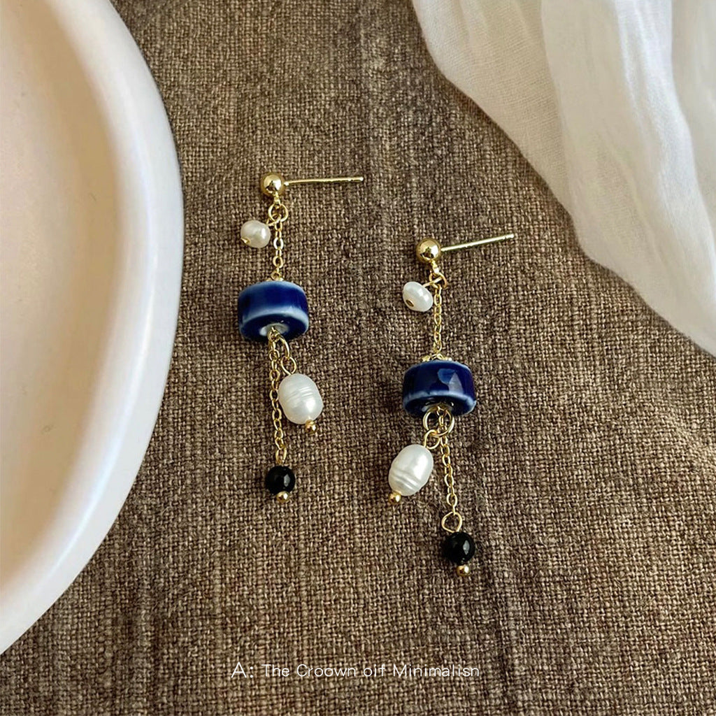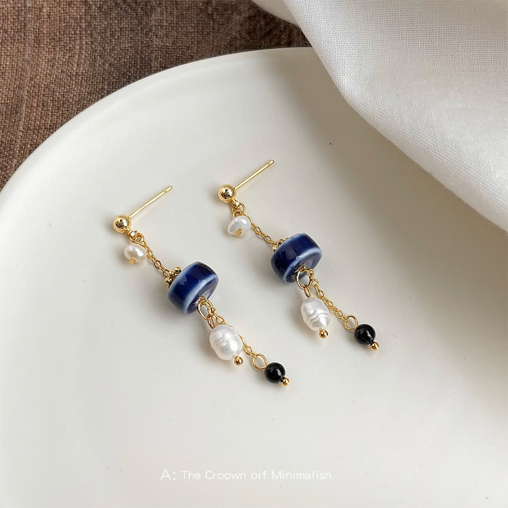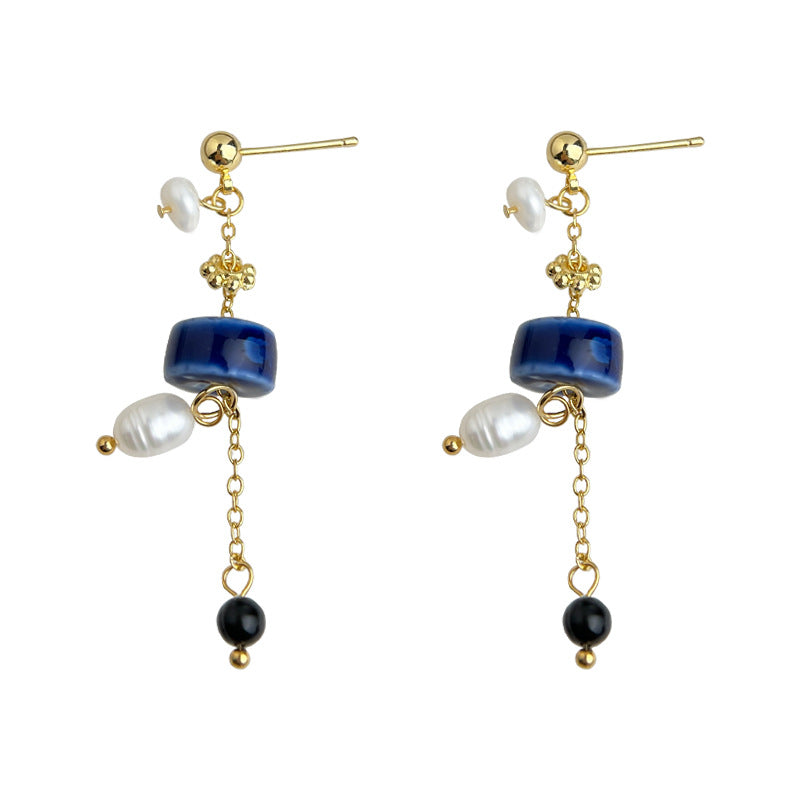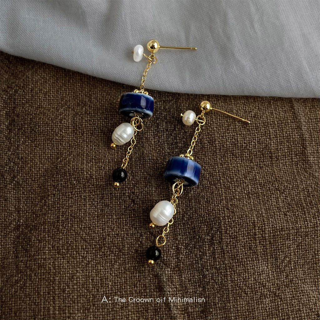 C廠【6568】天然淡水珍珠陶瓷手工耳環原創設計文藝復古民族風國潮耳飾女 25.08-3