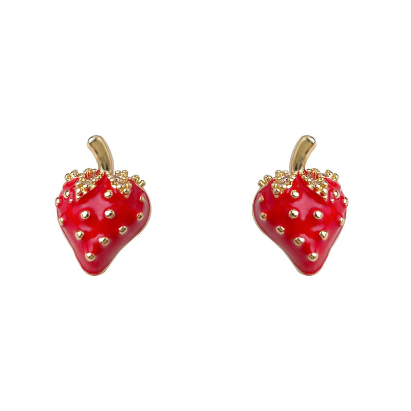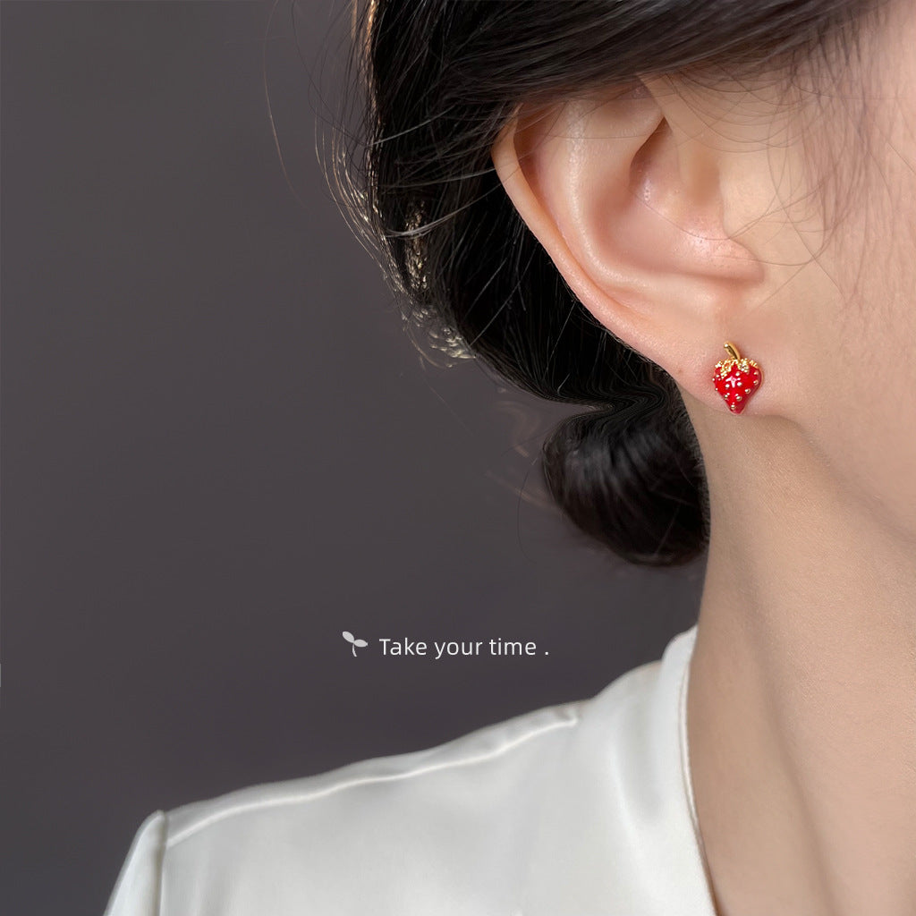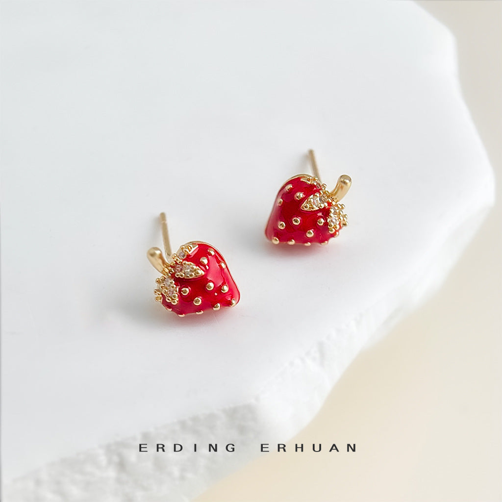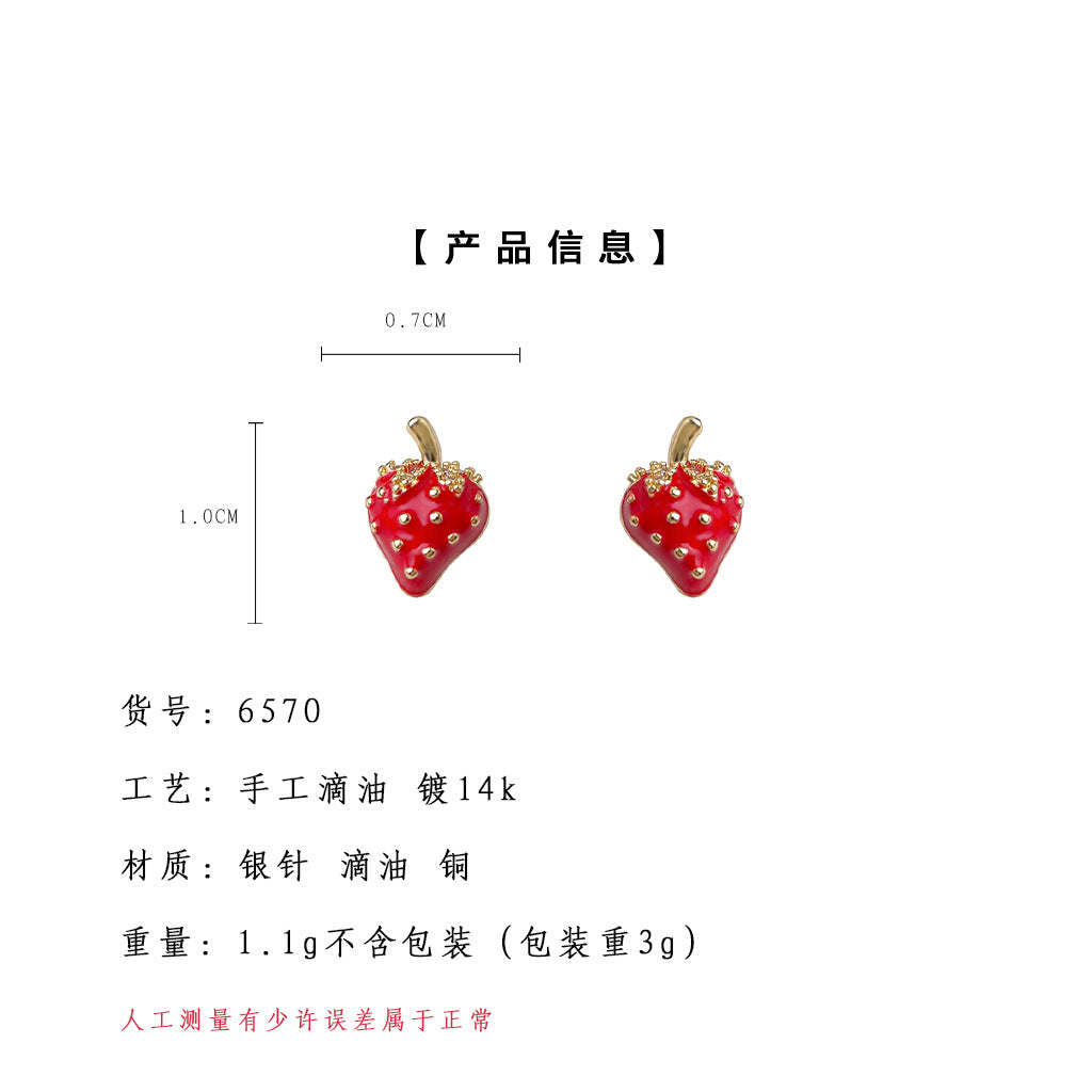 C廠【6570】清新甜美田園風925銀針琺瑯滴釉可愛鋯石小草莓耳環通勤耳飾 25.08-3