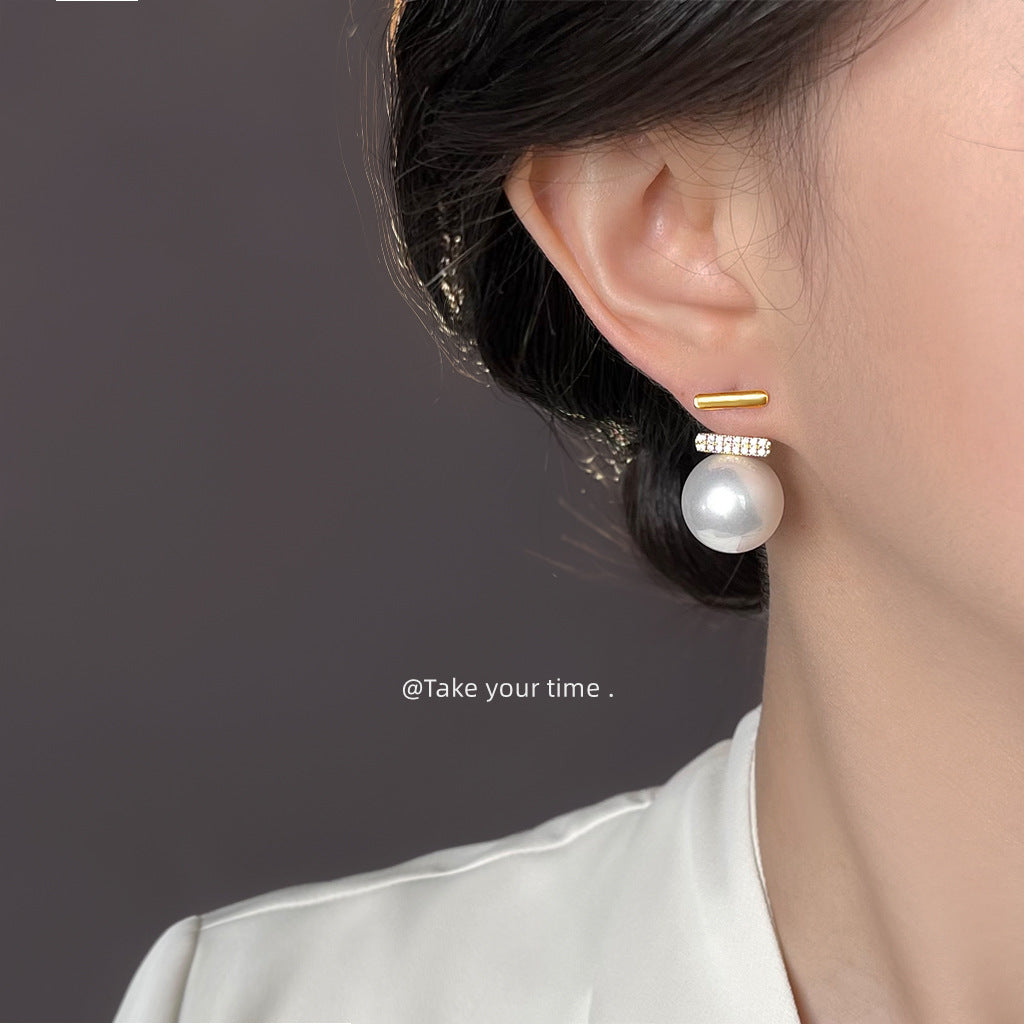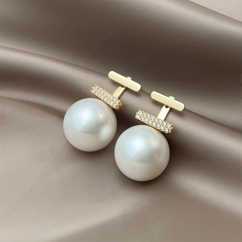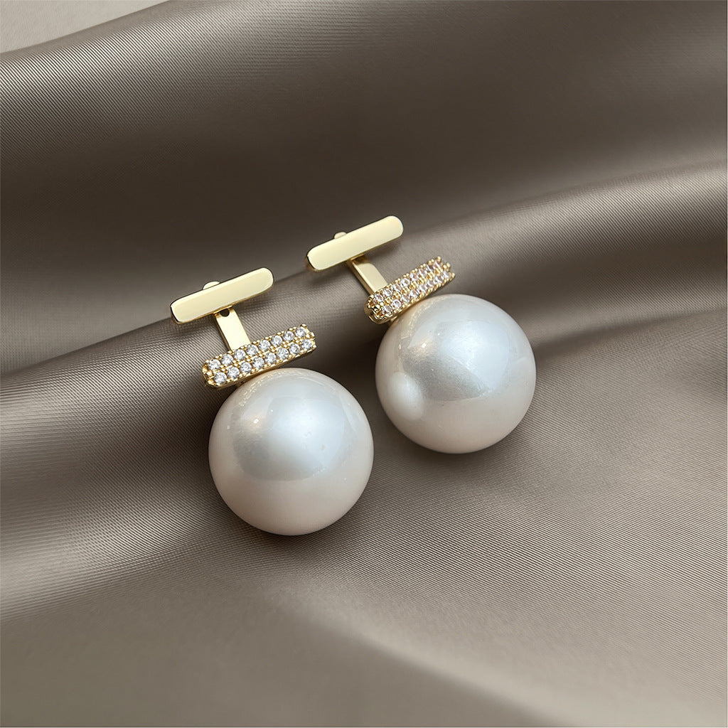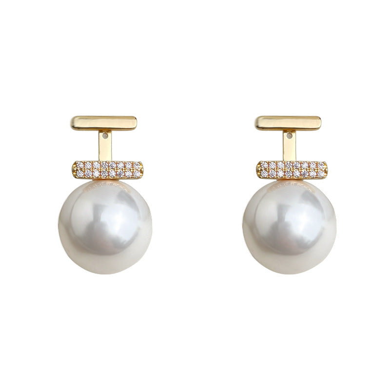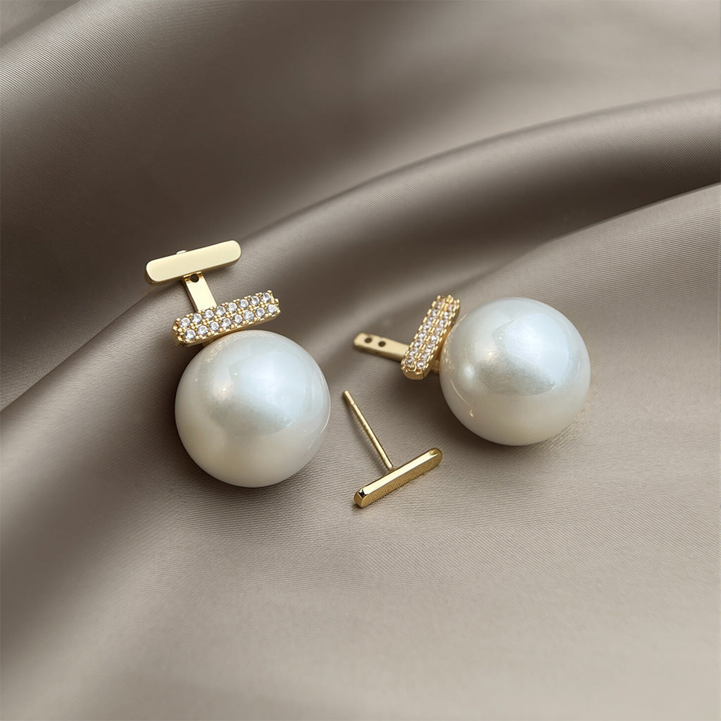 C廠【6571】兩戴時尚高級感~微鑲鋯石925銀針保色電鍍誇張氣質大珍珠耳飾耳環 25.08-5