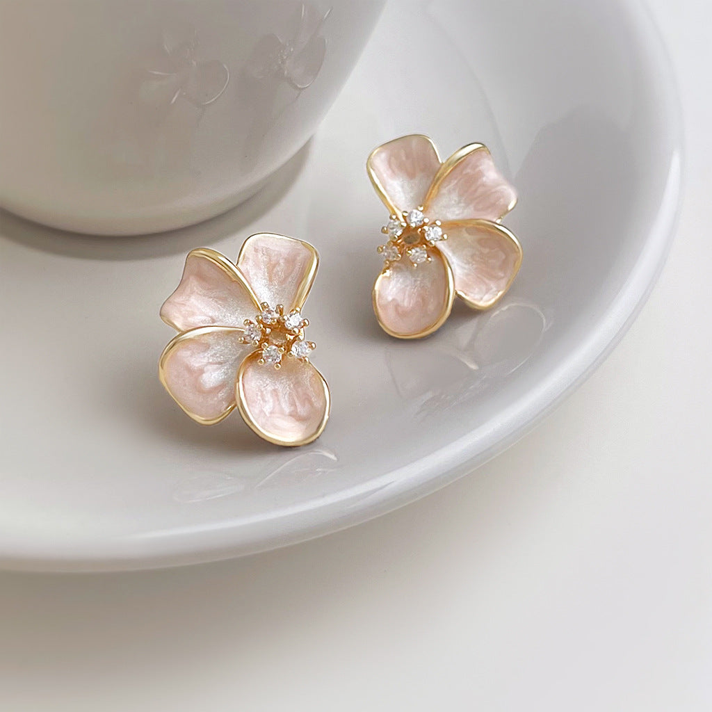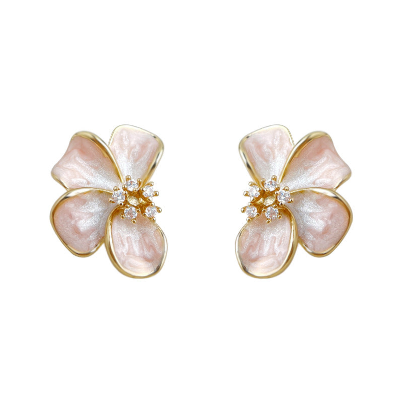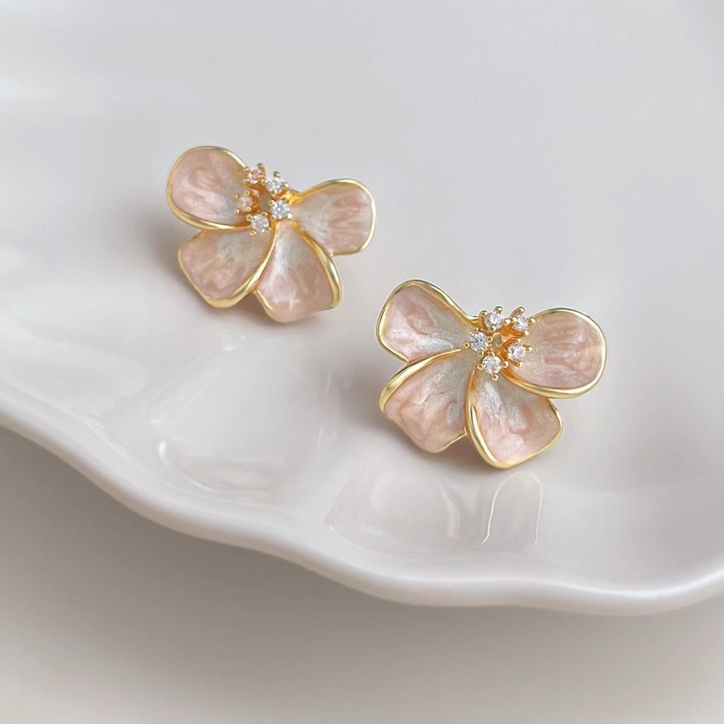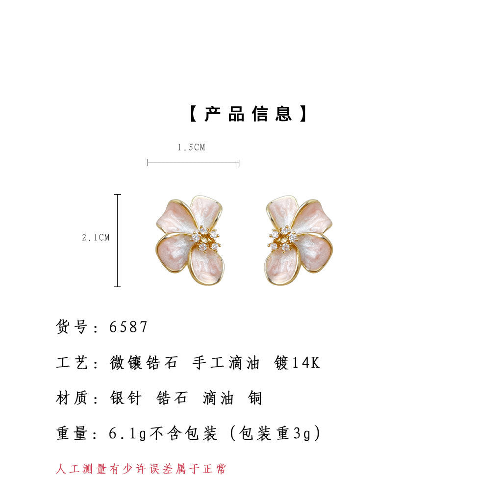 C廠【6587】清新甜美微鑲鋯石925銀針琺瑯滴釉漸變色花朵耳飾女 保色電鍍耳釘 25.08-5