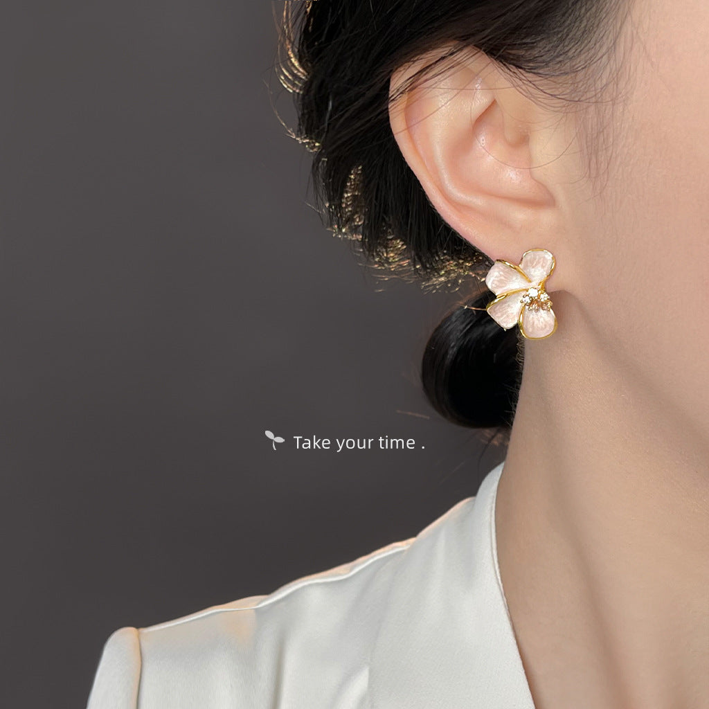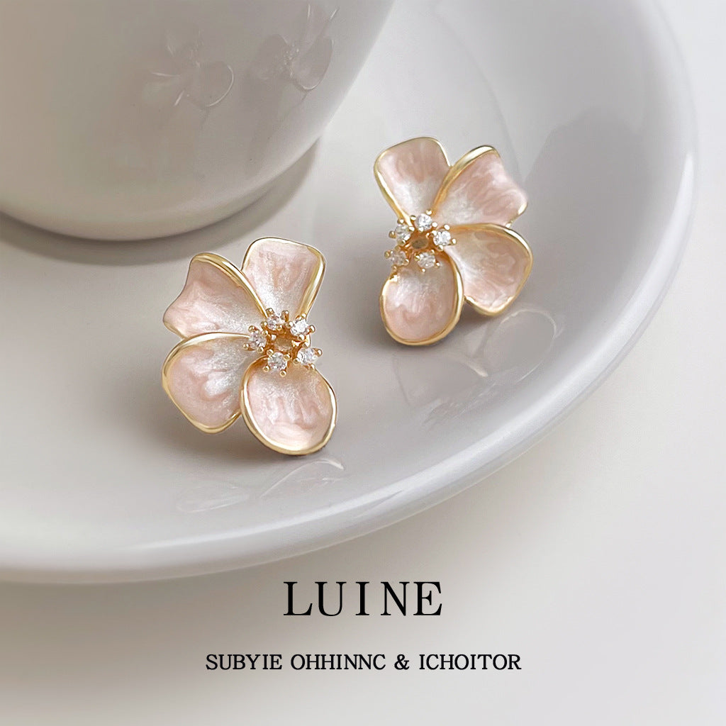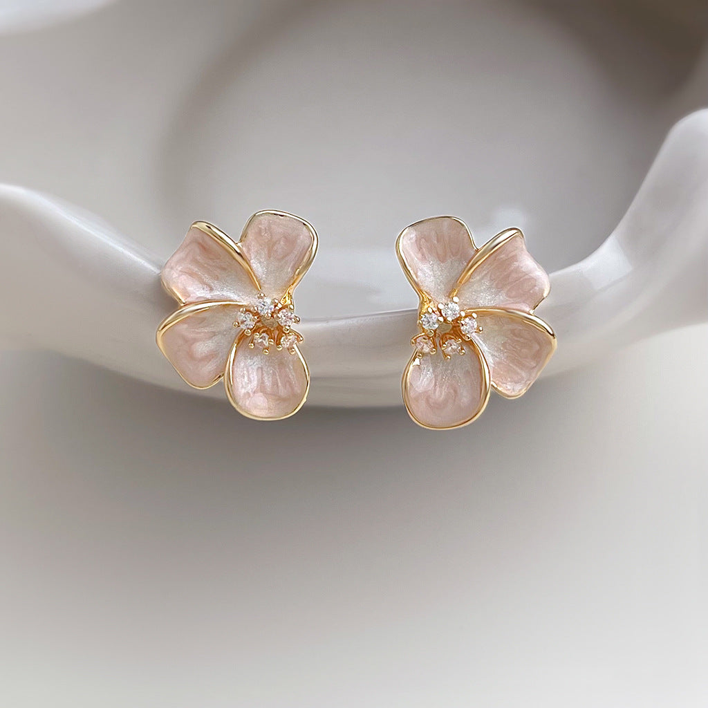 C廠【6587】清新甜美微鑲鋯石925銀針琺瑯滴釉漸變色花朵耳飾女 保色電鍍耳釘 25.08-5
