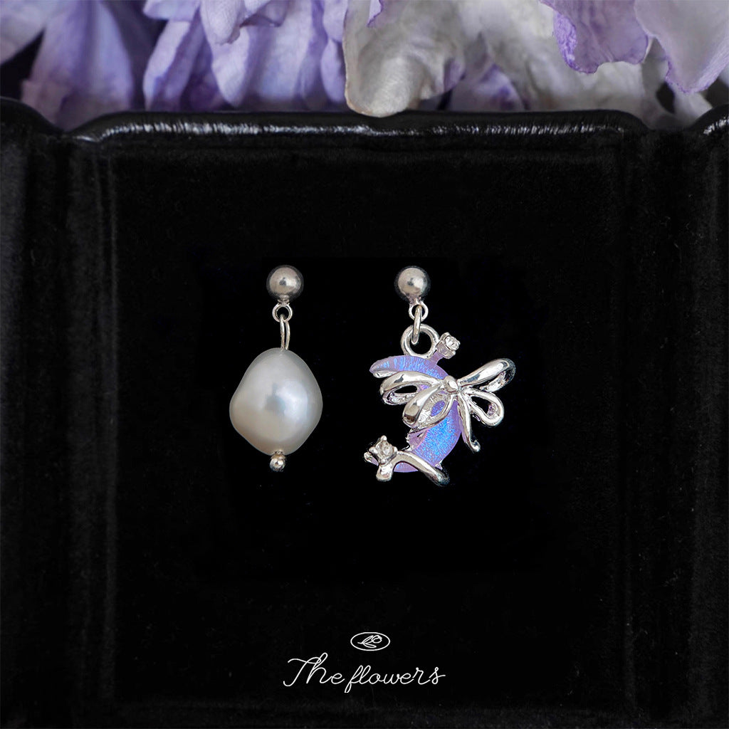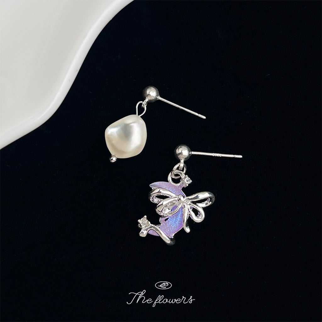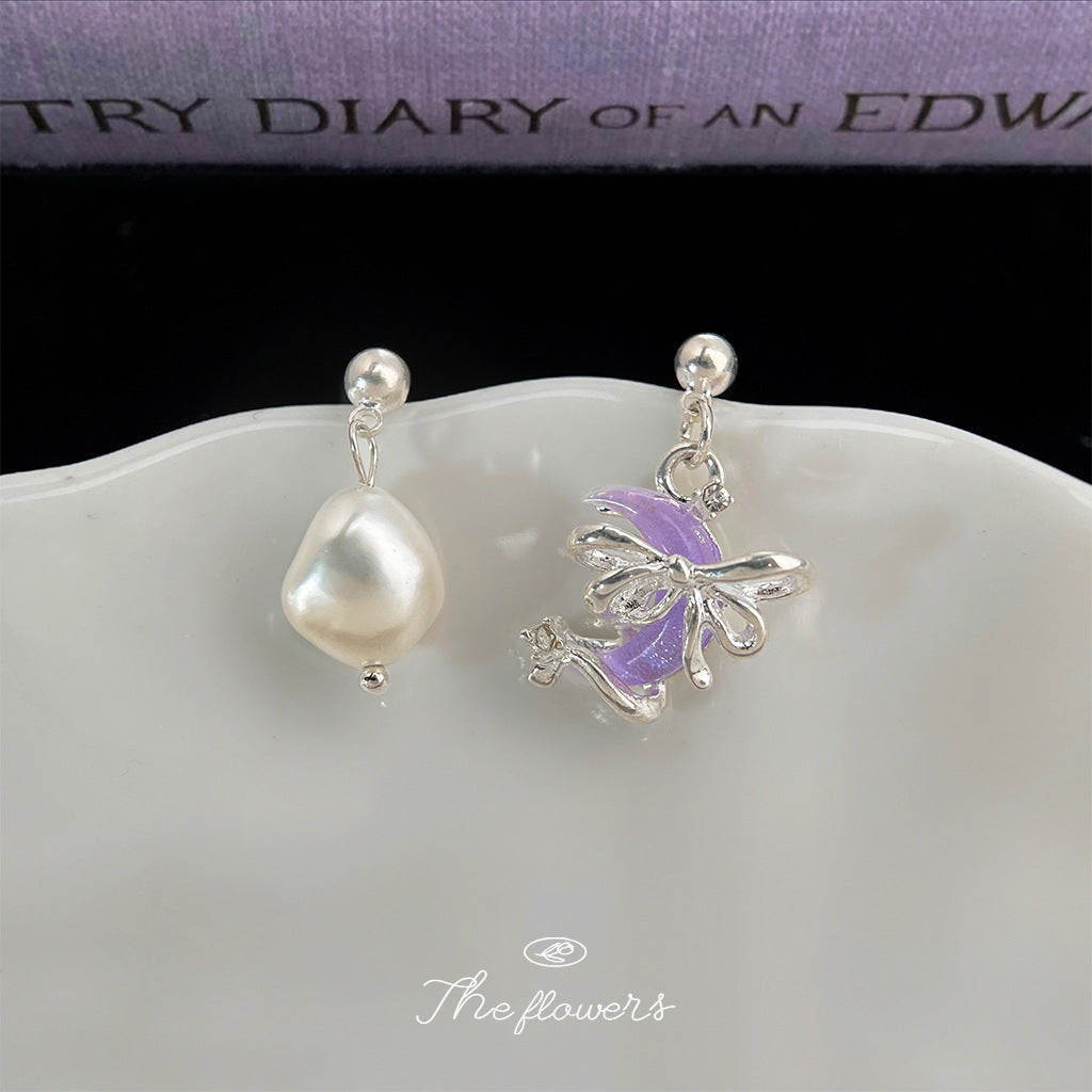 C廠【6597】異形淡水珍珠不對稱設計月亮少女心個性ins創意新款耳環 耳環 25.08-5