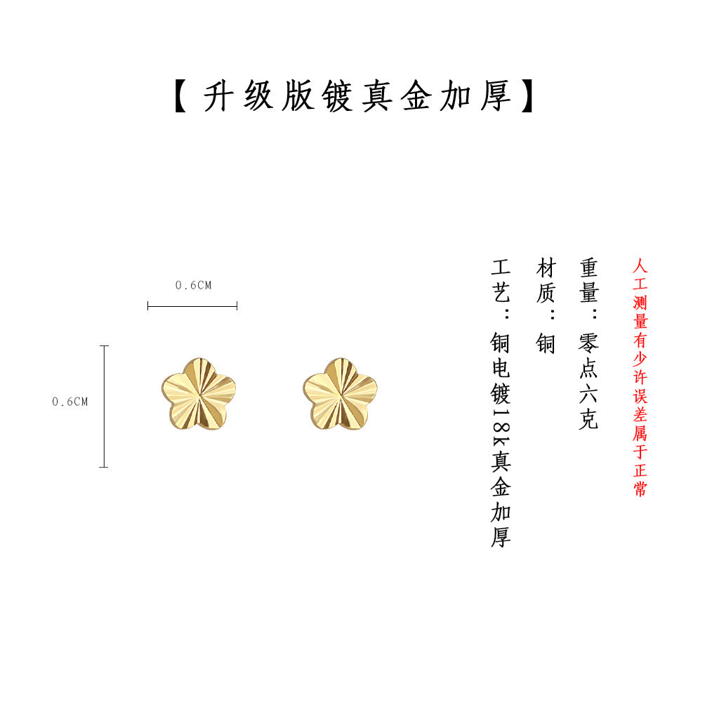 C廠【6649】車花工藝!厚鍍18K真金925銀針切面迷你小巧簡約輕奢風耳環耳飾女 25.08-5