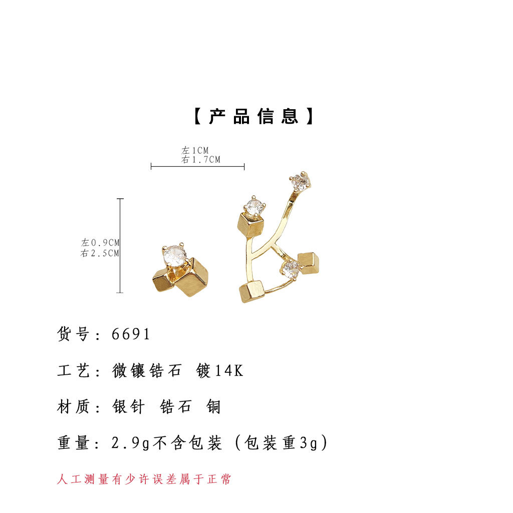 C廠【6691】【空間】原創設計微鑲鋯石925銀針幾何不對稱個性ins新款耳環耳環 25.09-2