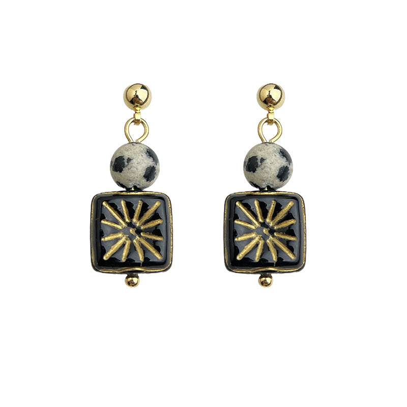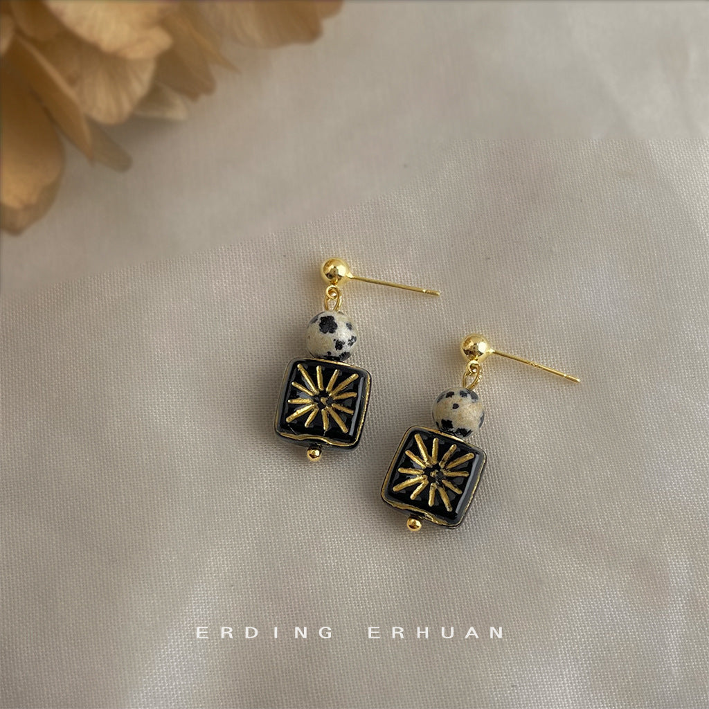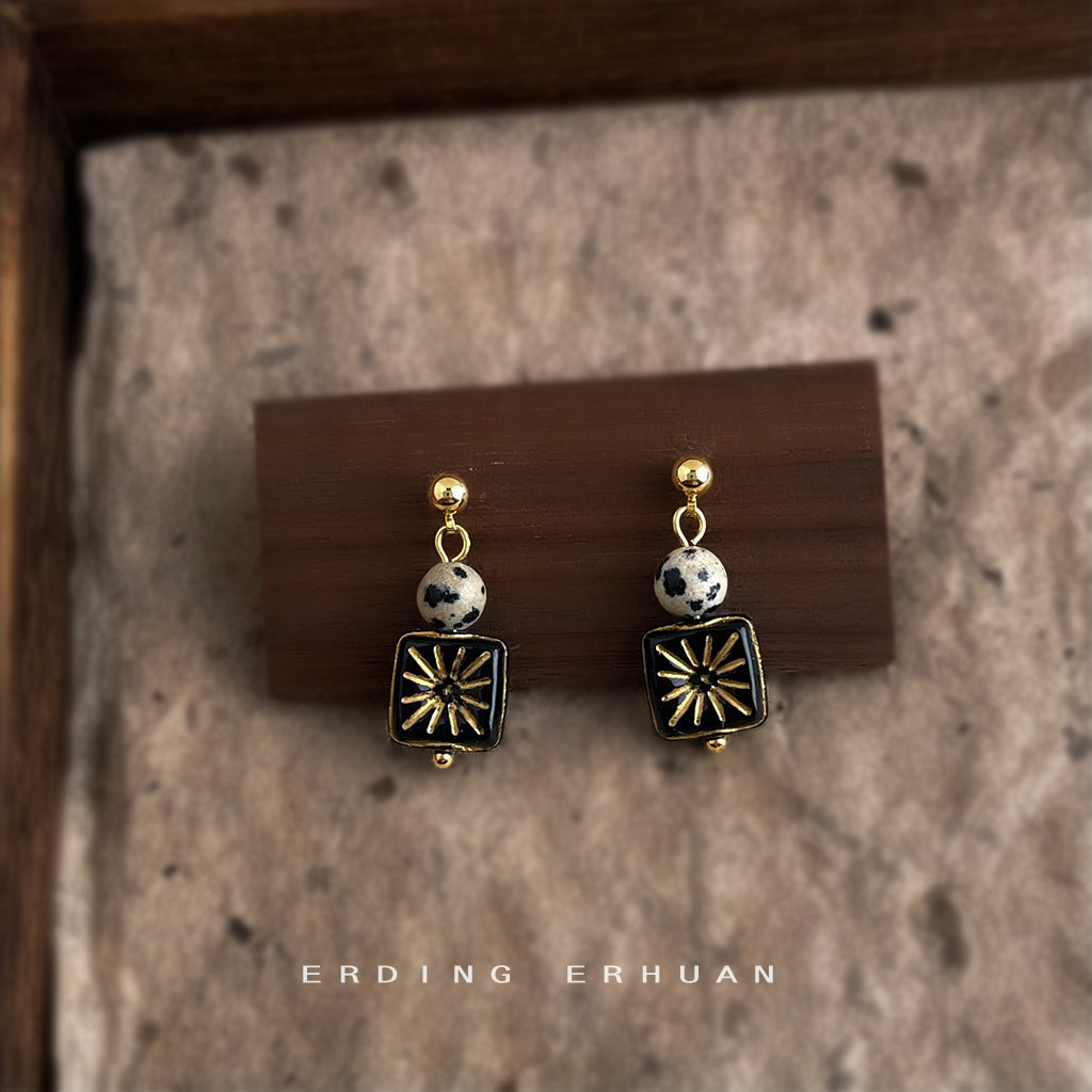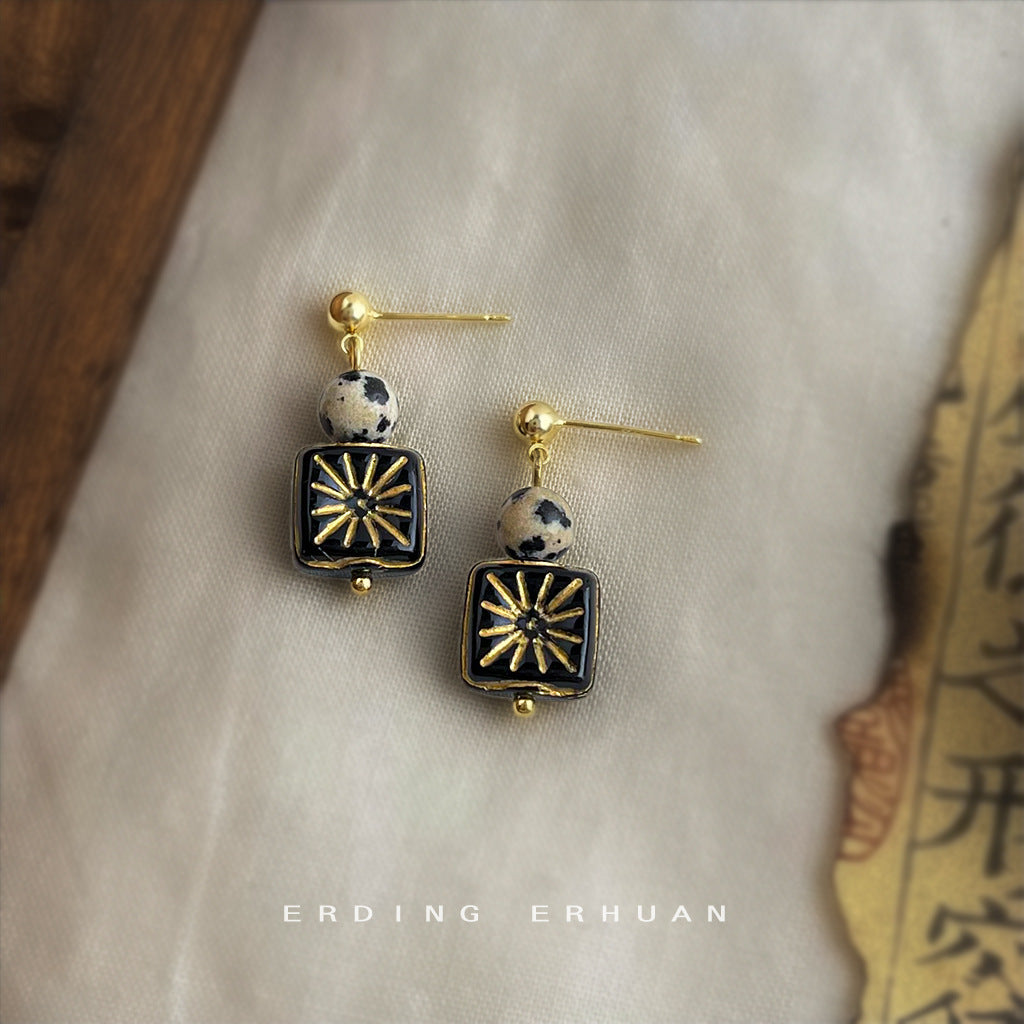 C廠【6701】文藝復古捷克琉璃幾何方形時尚高級感手工耳飾新款耳環女飾品 25.09-3