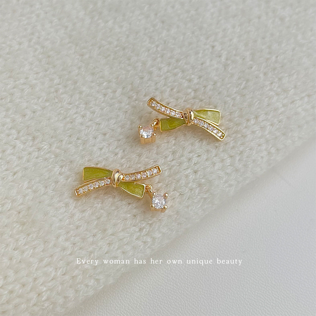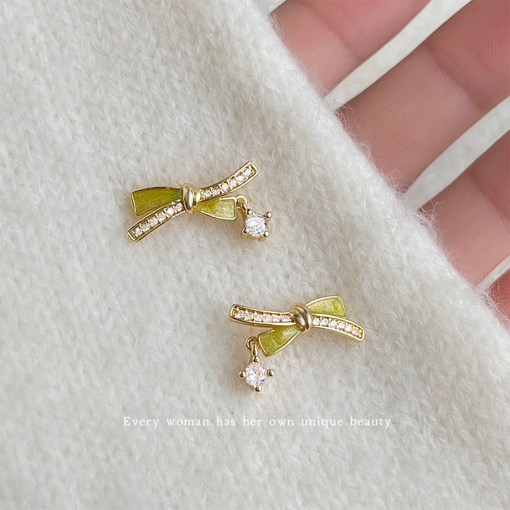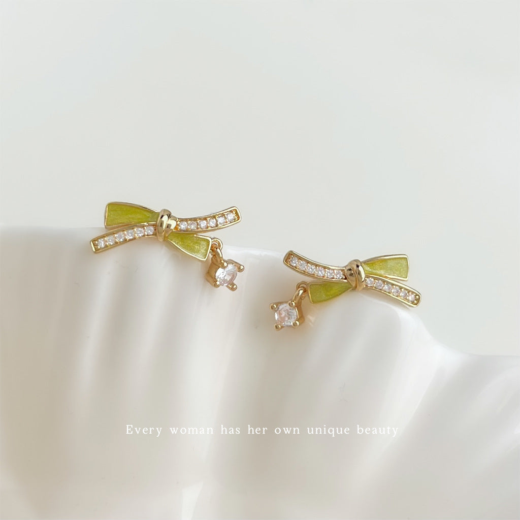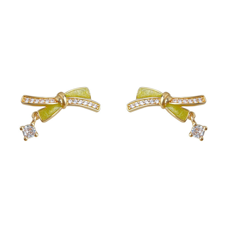 C廠【6719】原創設計師款微鑲鋯石蝴蝶結925銀針鍍14K琺瑯滴釉耳飾耳環女 25.09-3