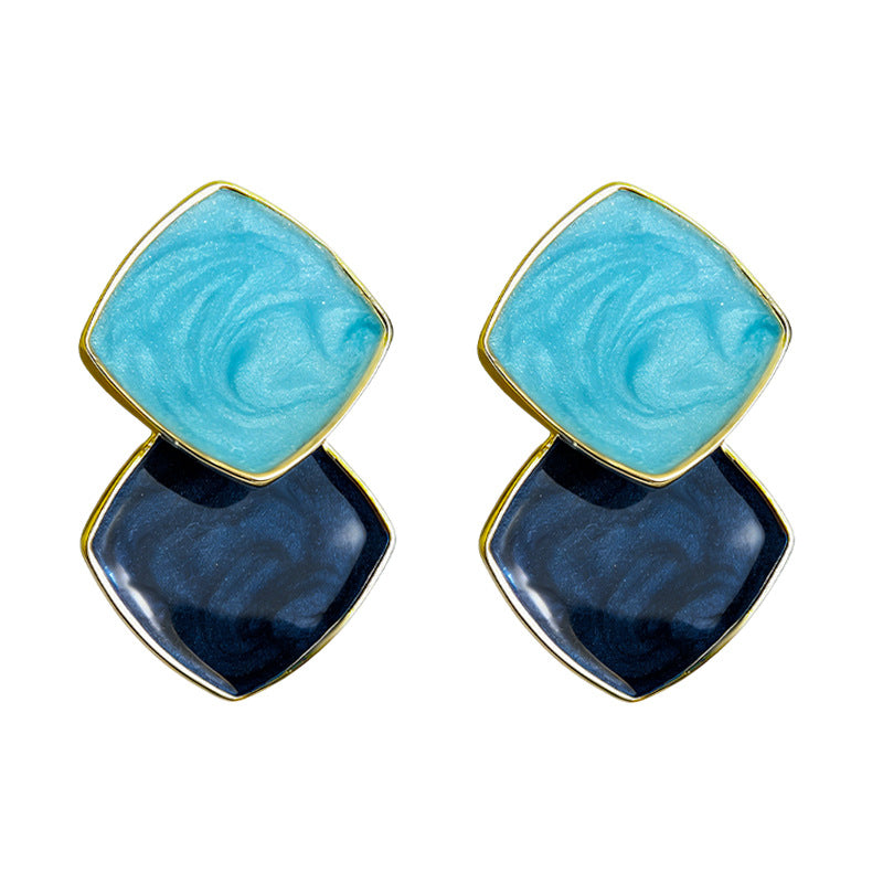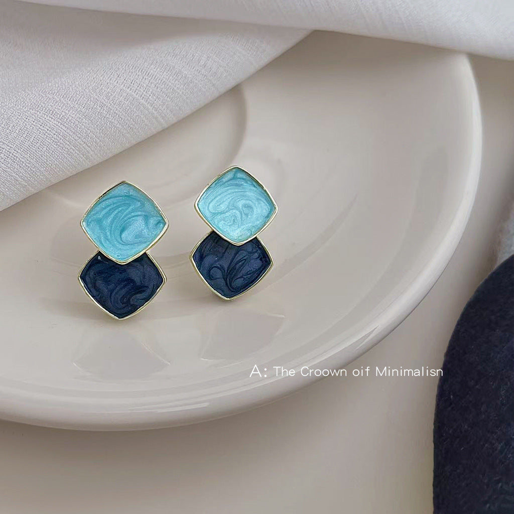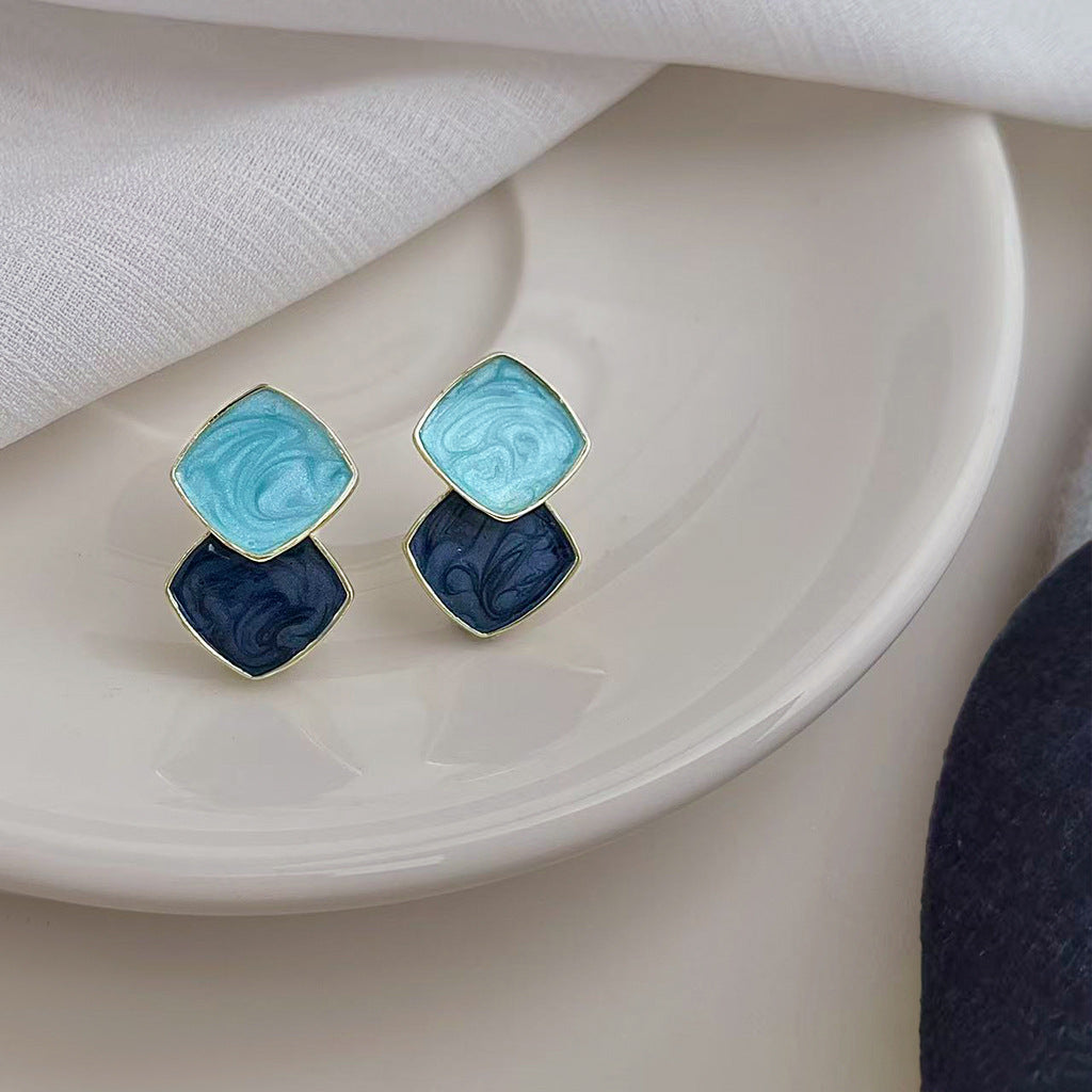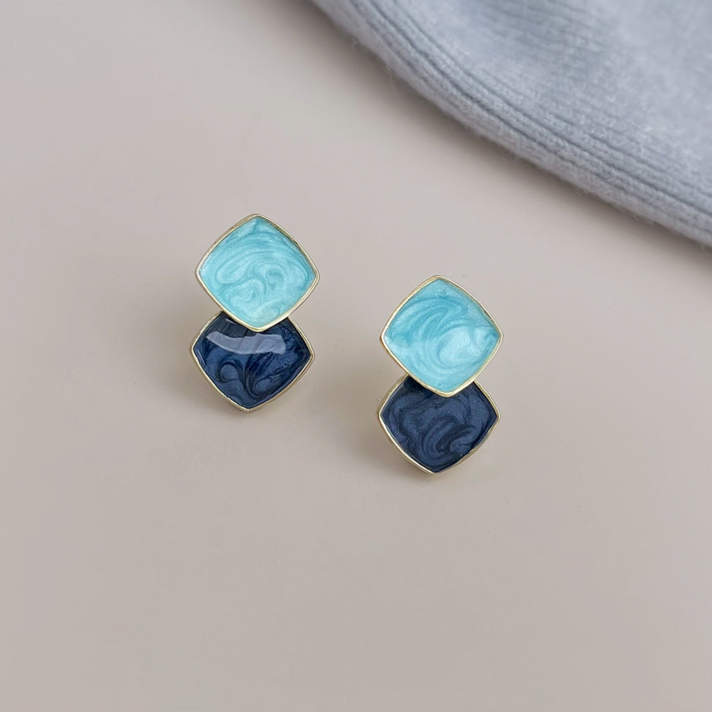 A廠【6767】清新甜美撞色海藍霧霾藍幾何方形立體耳飾新款義烏飾品耳環女 25.12-3