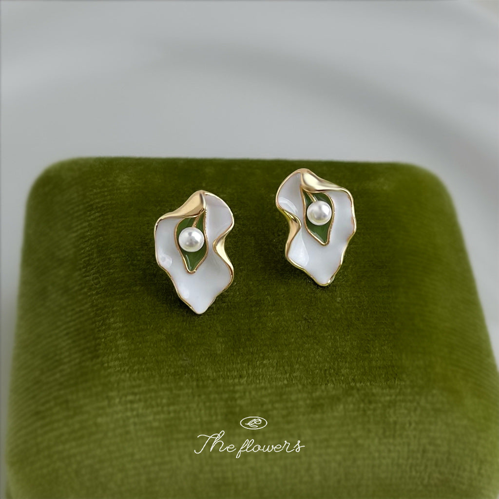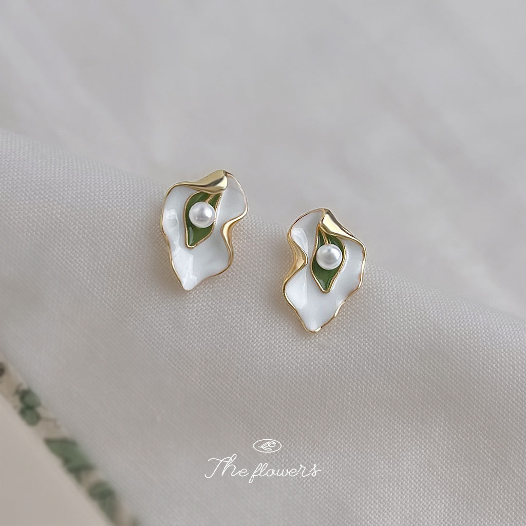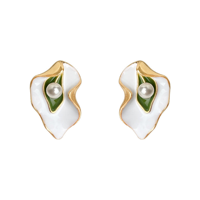 C廠【6780】原創高級感925銀針氣質簡約琺瑯滴釉樹葉立體耳環新耳飾女 25.09-4
