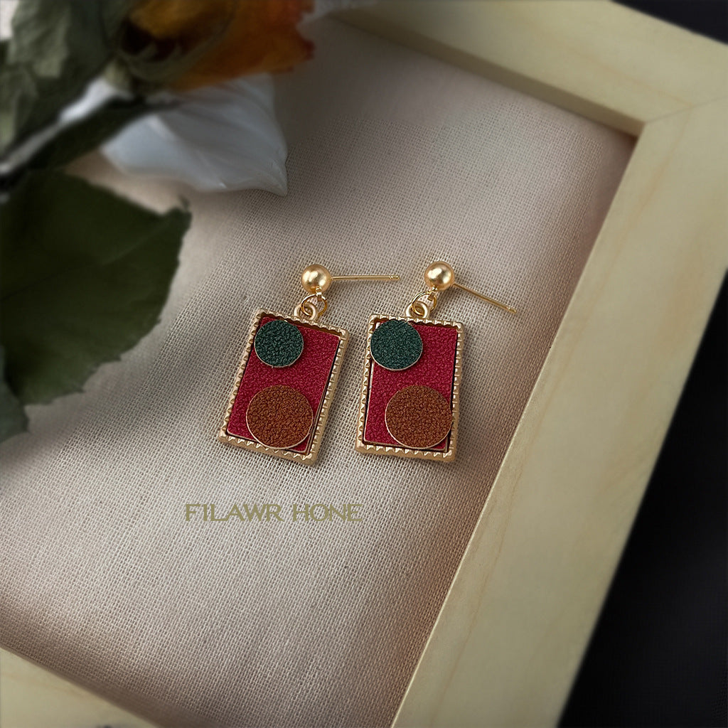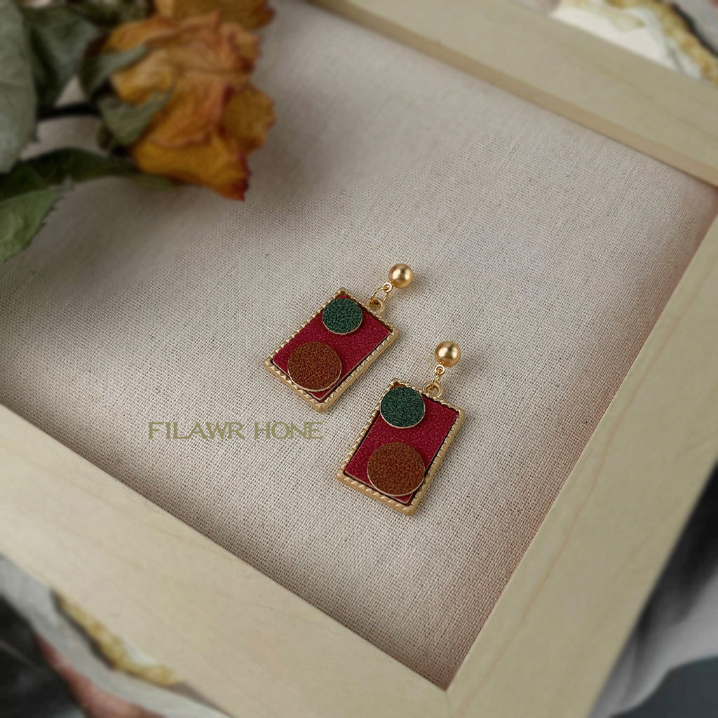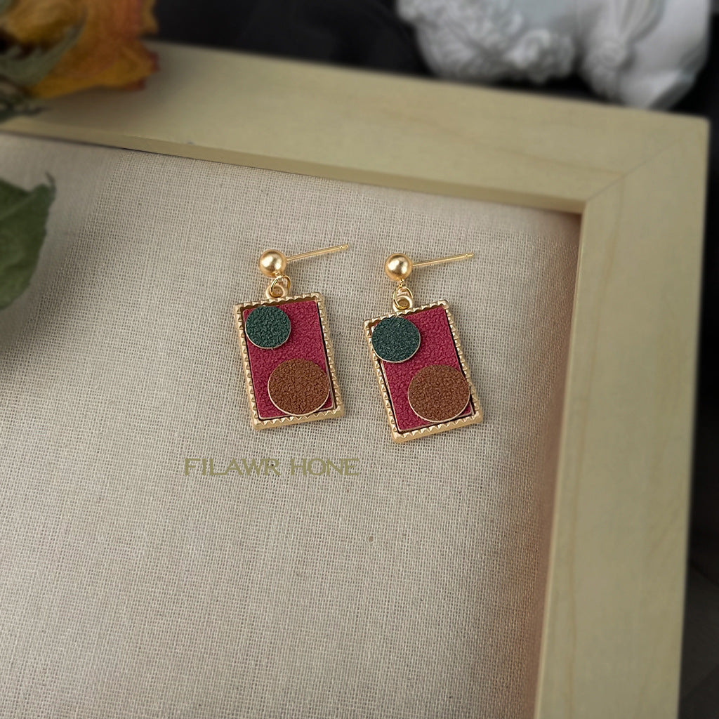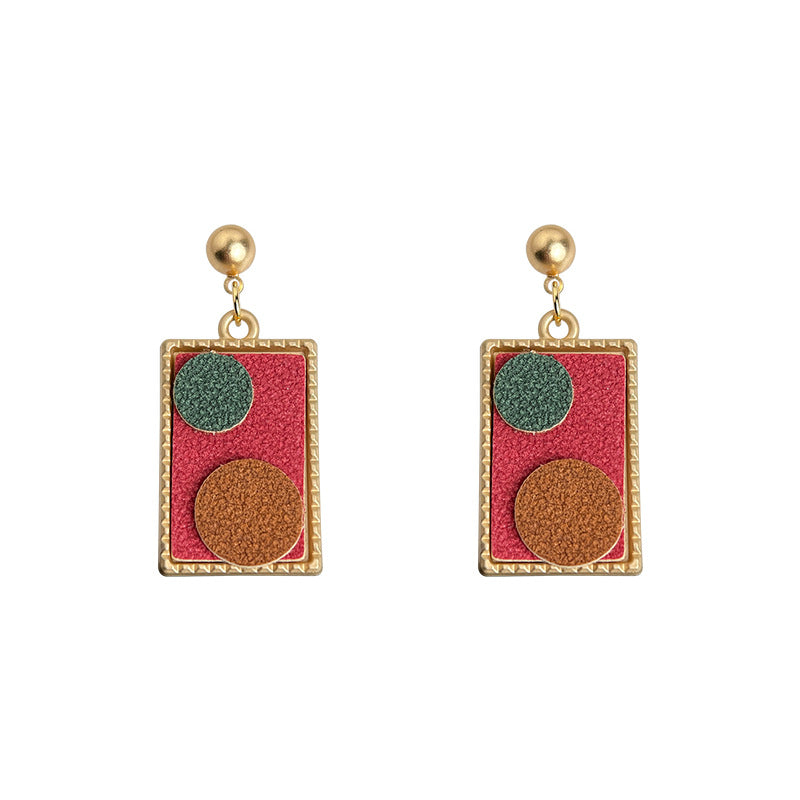 C廠【6783】文藝範復古布藝皮革長方霧面電鍍新款耳環氣質中古風耳飾 25.09-3