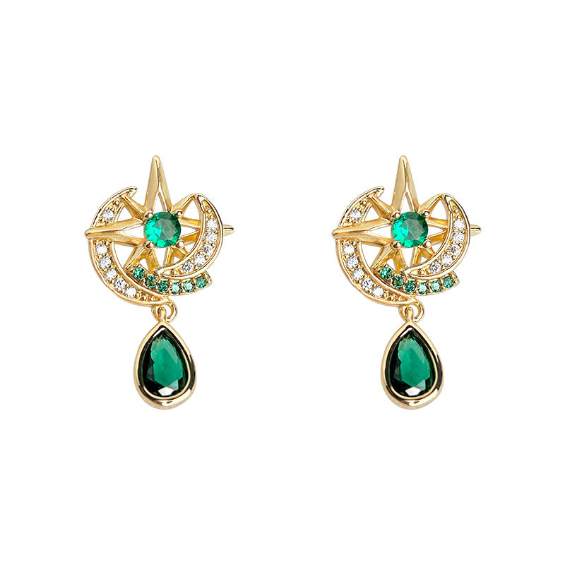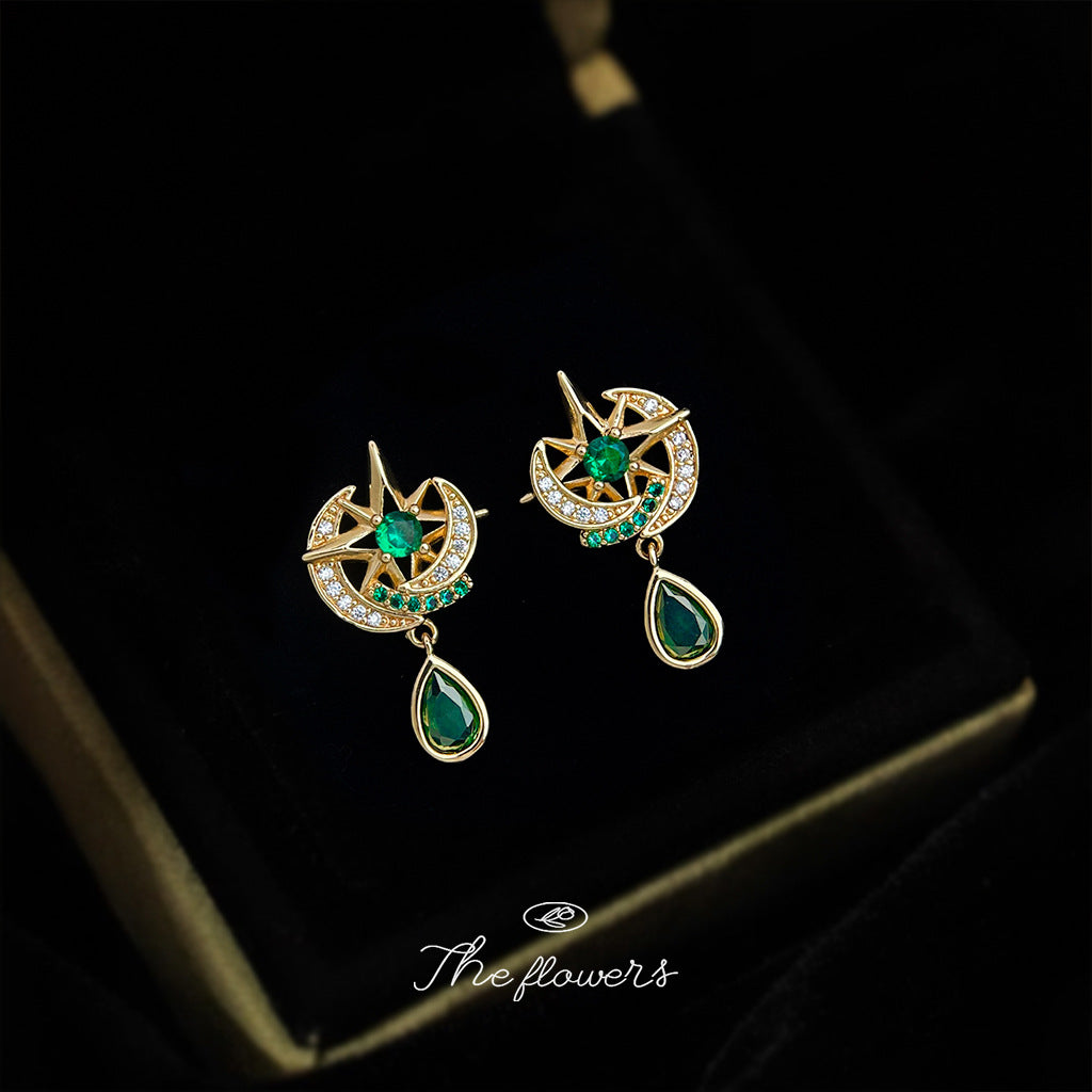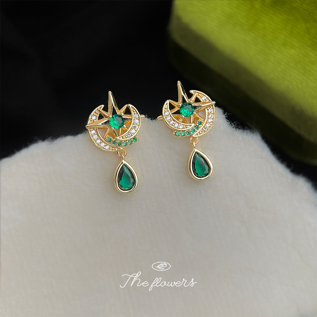 C廠【6792】芒星原創設計微鑲鋯石925銀針鍍14K月亮八芒星時尚高級感耳飾耳環 25.09-3