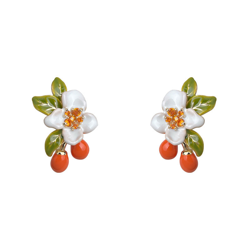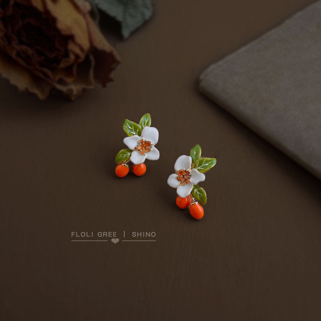 C廠【6798】原創琺瑯柿子田園風925銀針新款設計師花朵立體耳飾耳釘 25.09-3