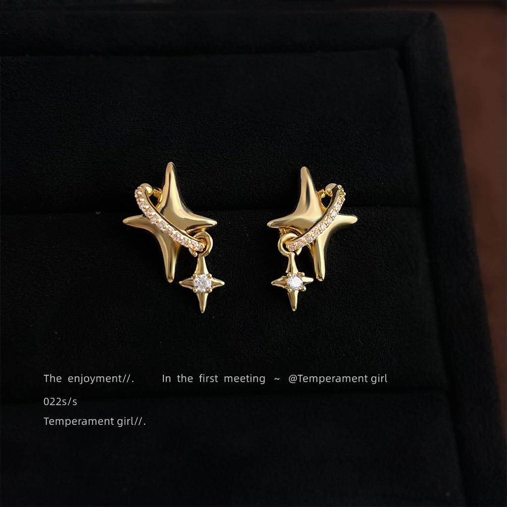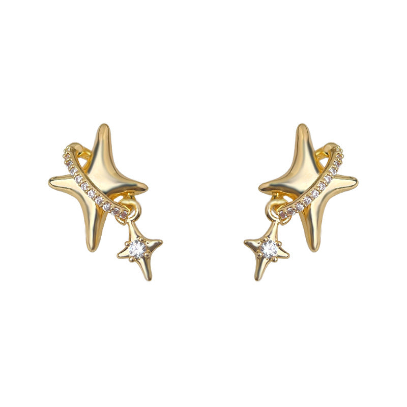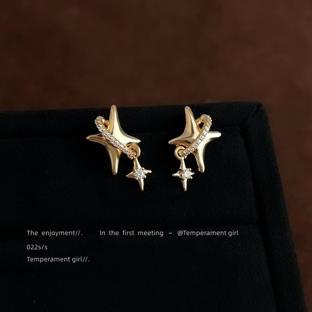 C廠【6801】芒星原創設計鑲鋯石925銀針鍍14K時尚個性簡約通勤高級感耳飾耳環 25.09-3