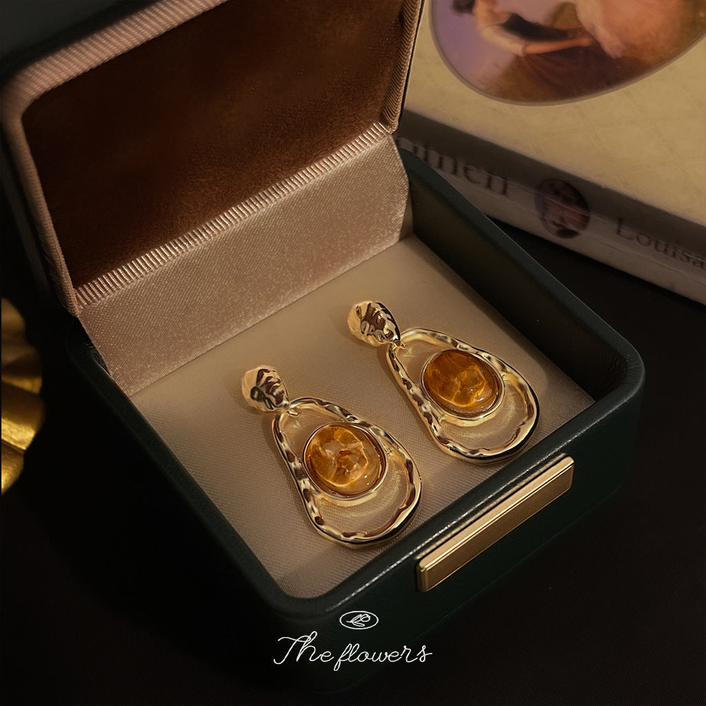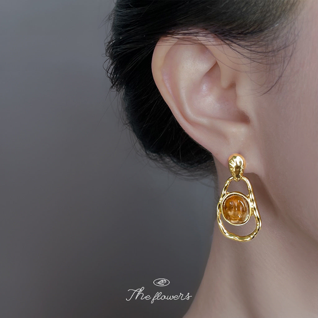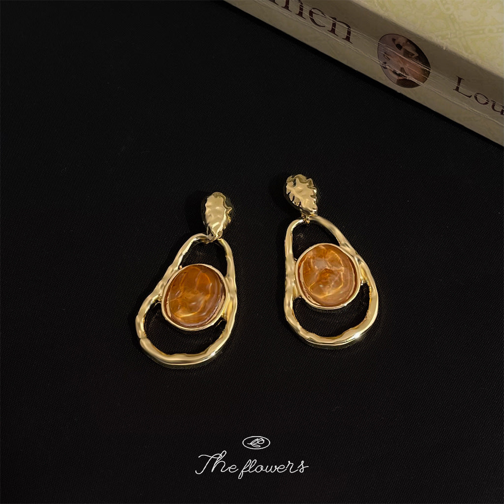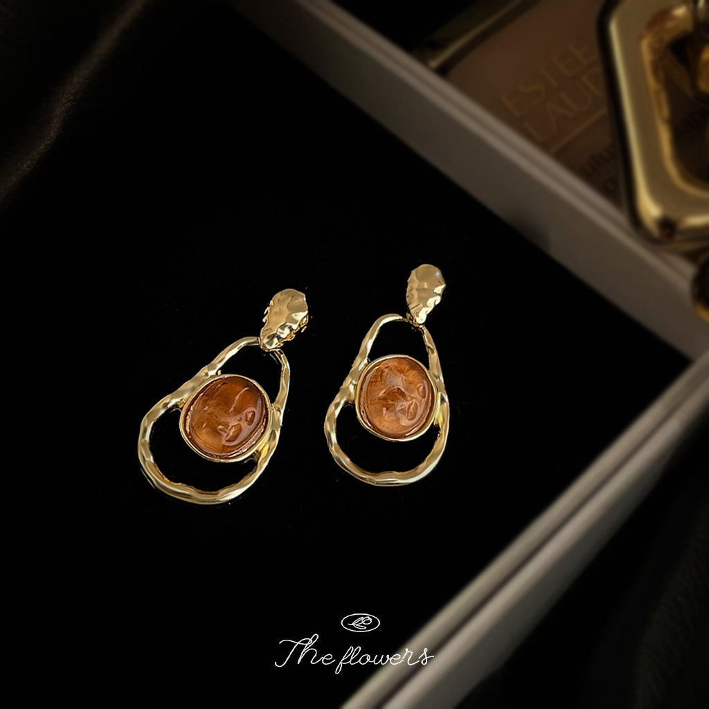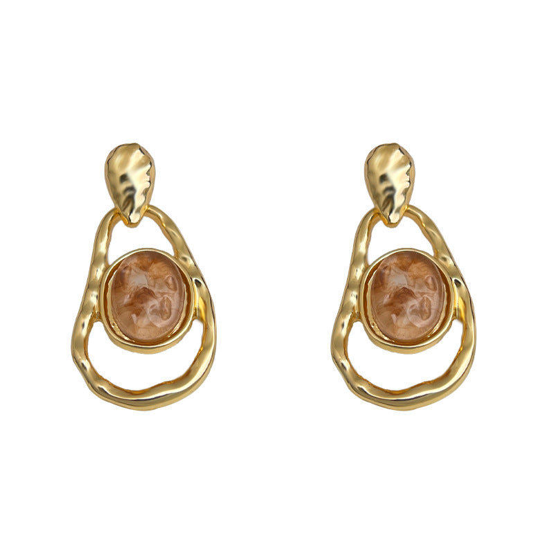 C廠【6803】法式復古美拉德風時尚高級感幾何鏤空不規則淺咖色耳環耳環女 25.09-3