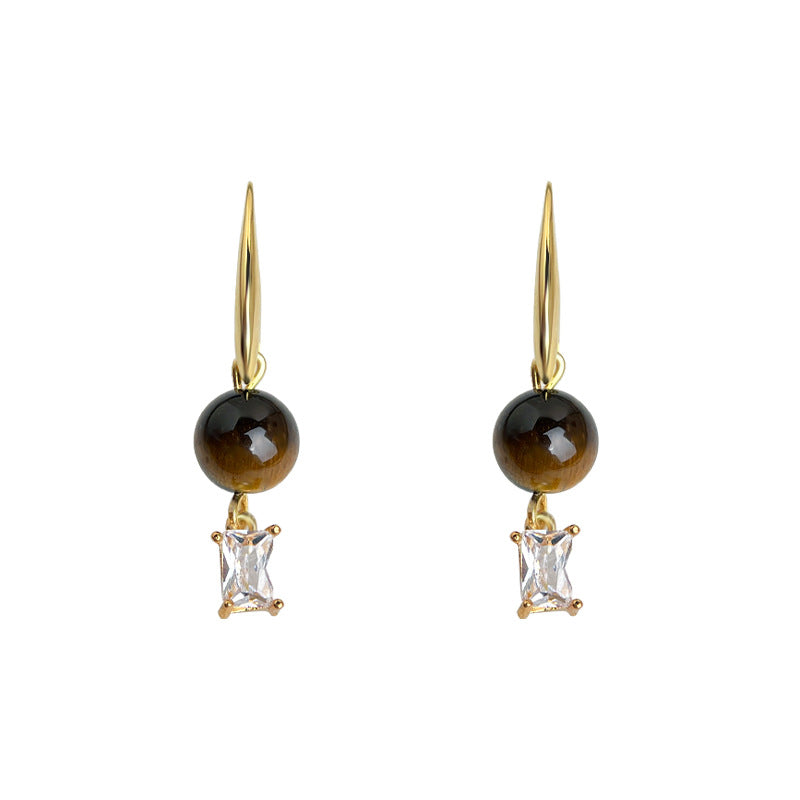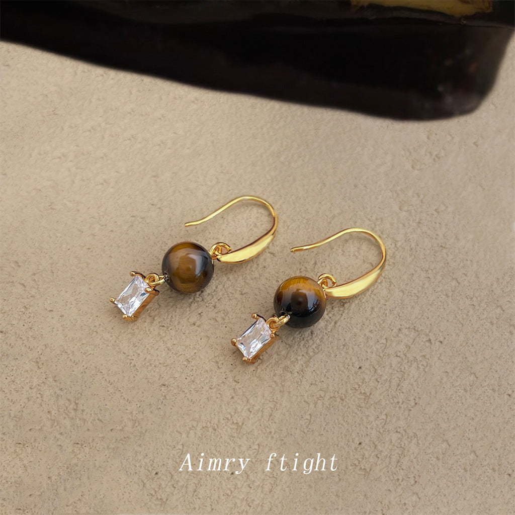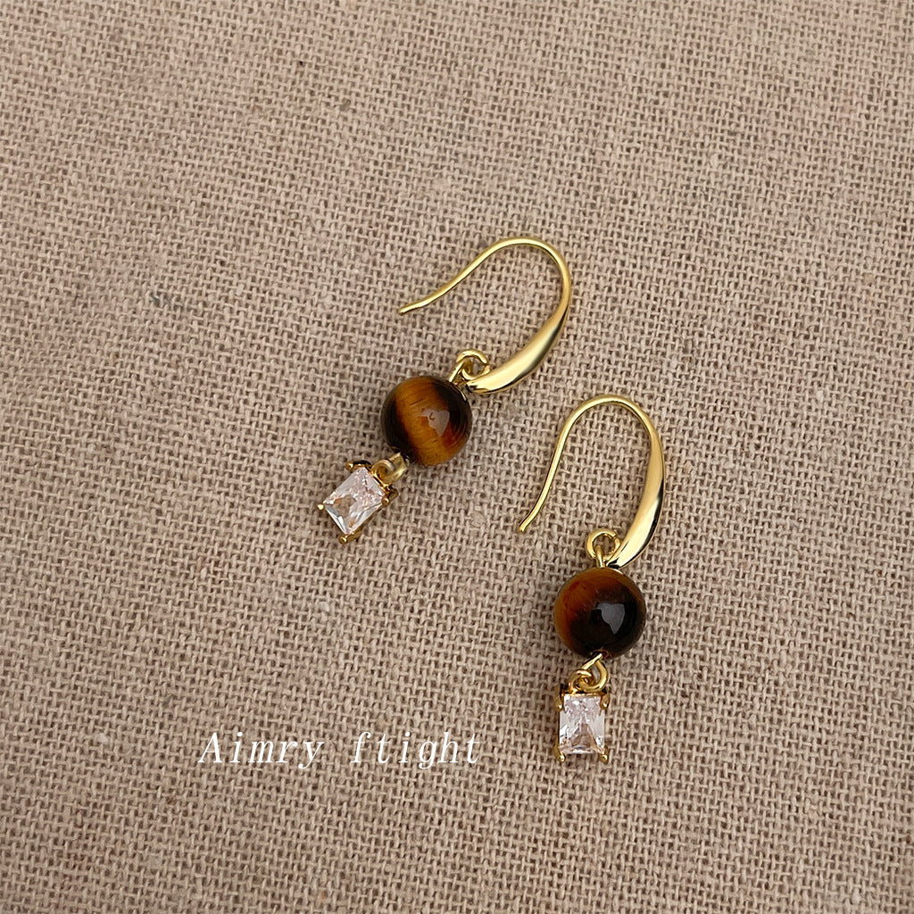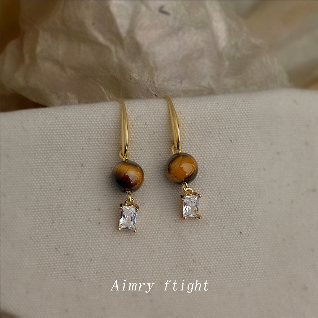 C廠【6804】美拉德風時尚高級感天然石虎眼石幾何新款耳環文藝復古耳環女 25.09-3