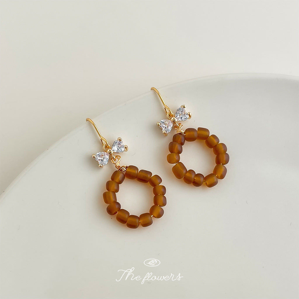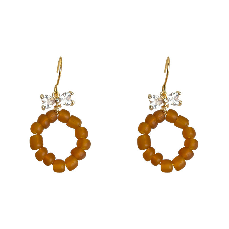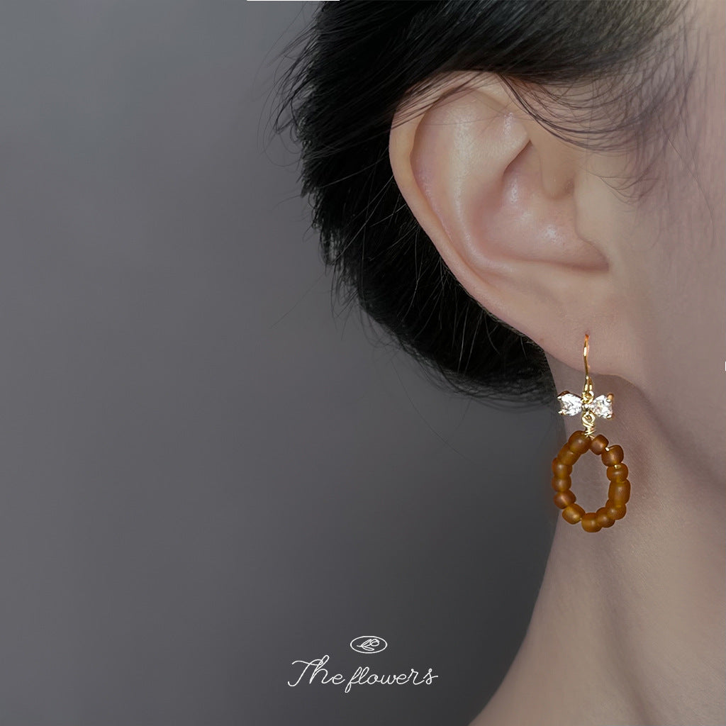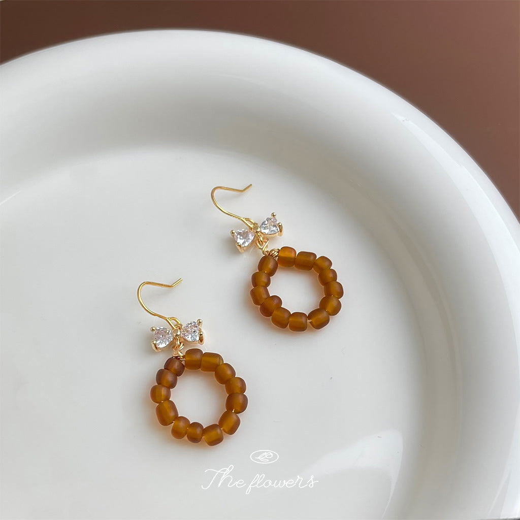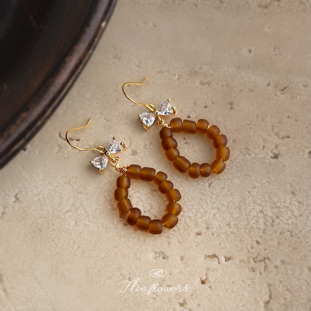 C廠【6805】美拉德色系秋冬新款手工藝設計鋯石蝴蝶結幾何新款耳環文藝復古耳環 25.09-3